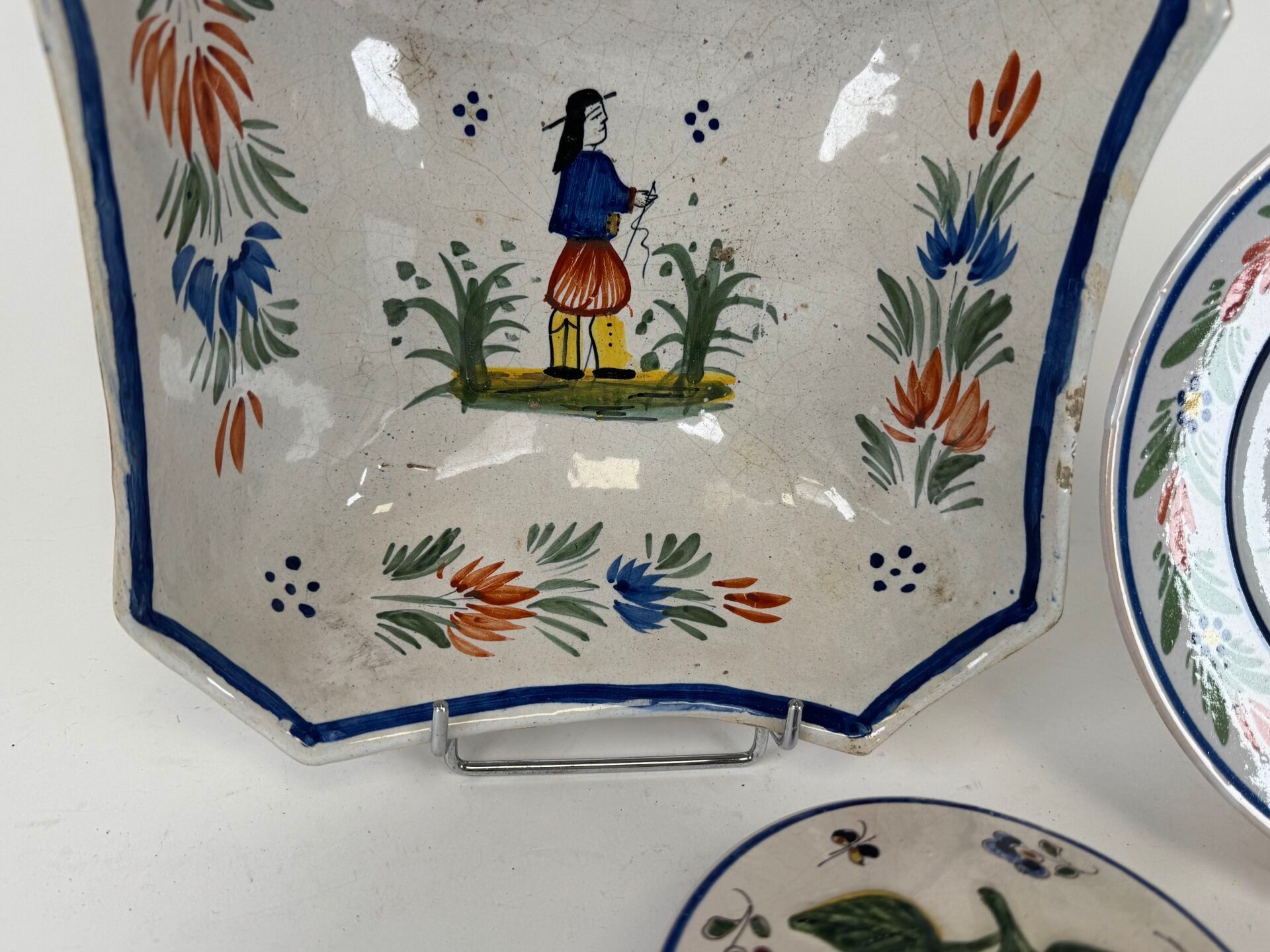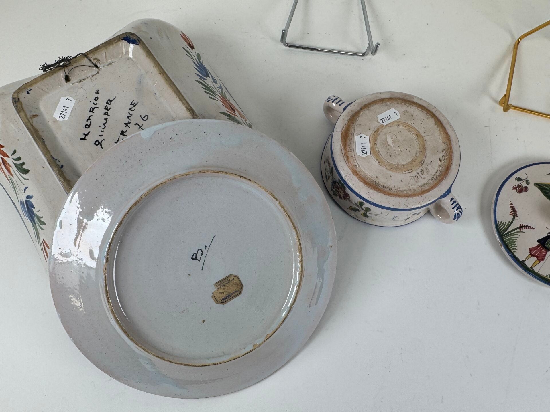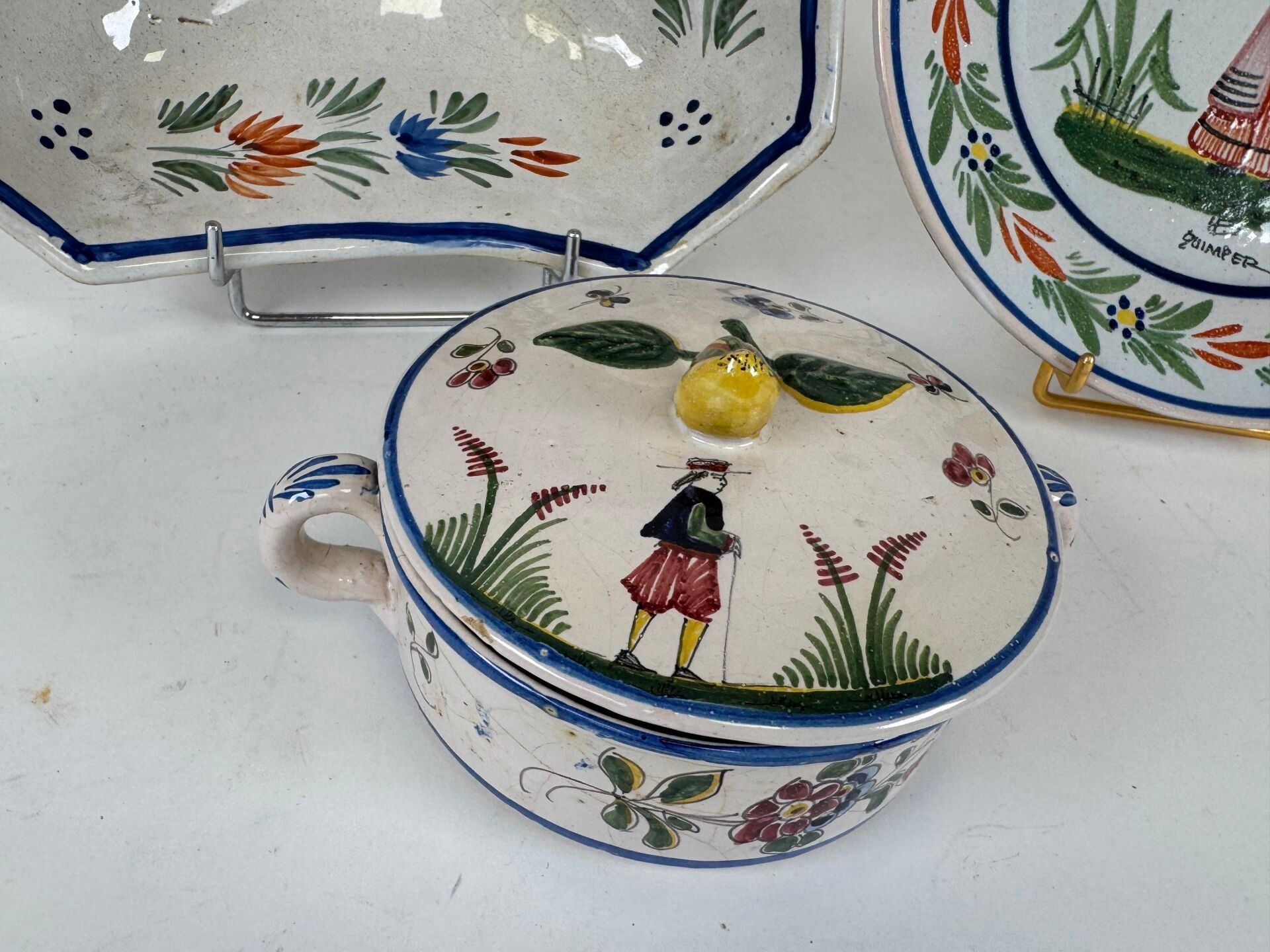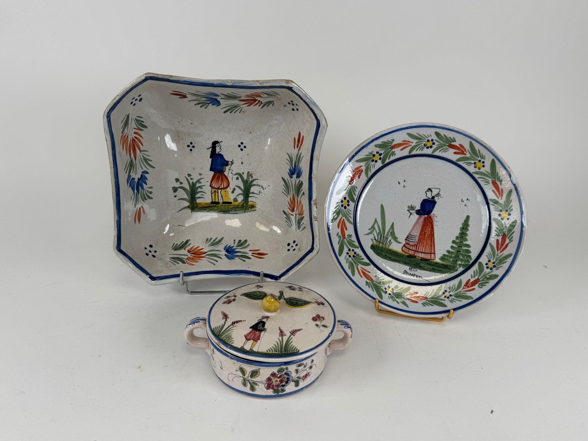 QUIMPER, 20th century. Salad bowl, plate and cup decorated w…