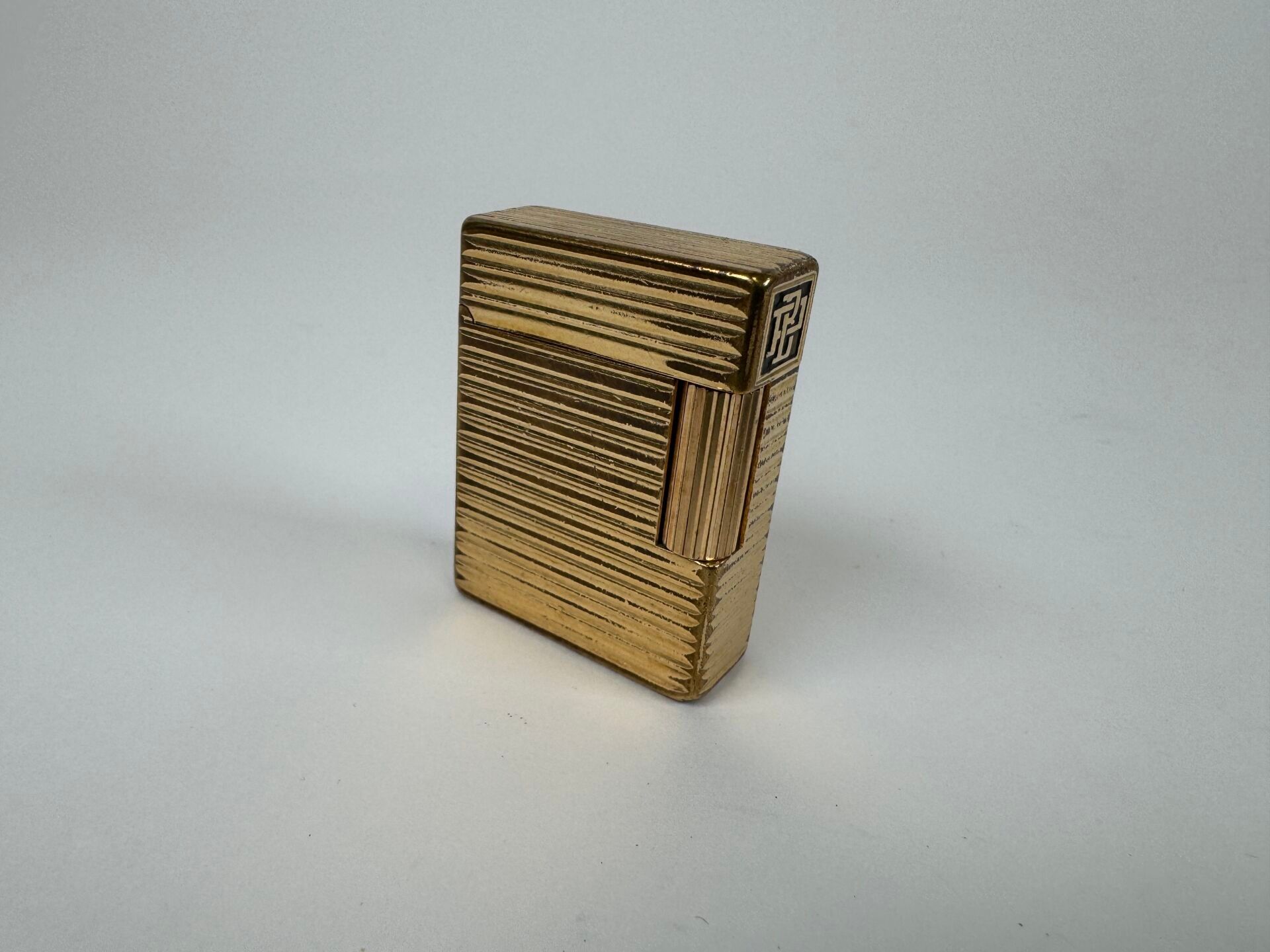 Gilt metal lighter with fillet decoration, monnogrammed.