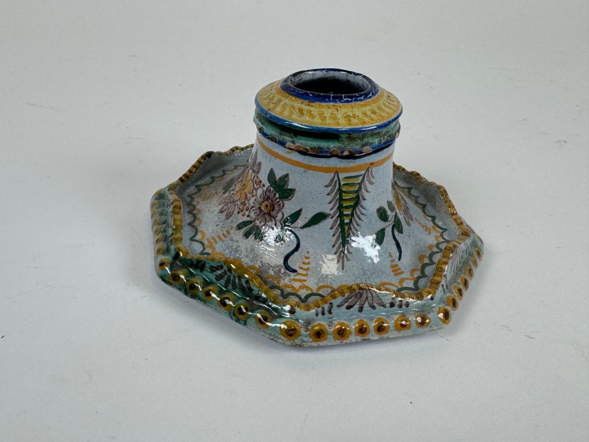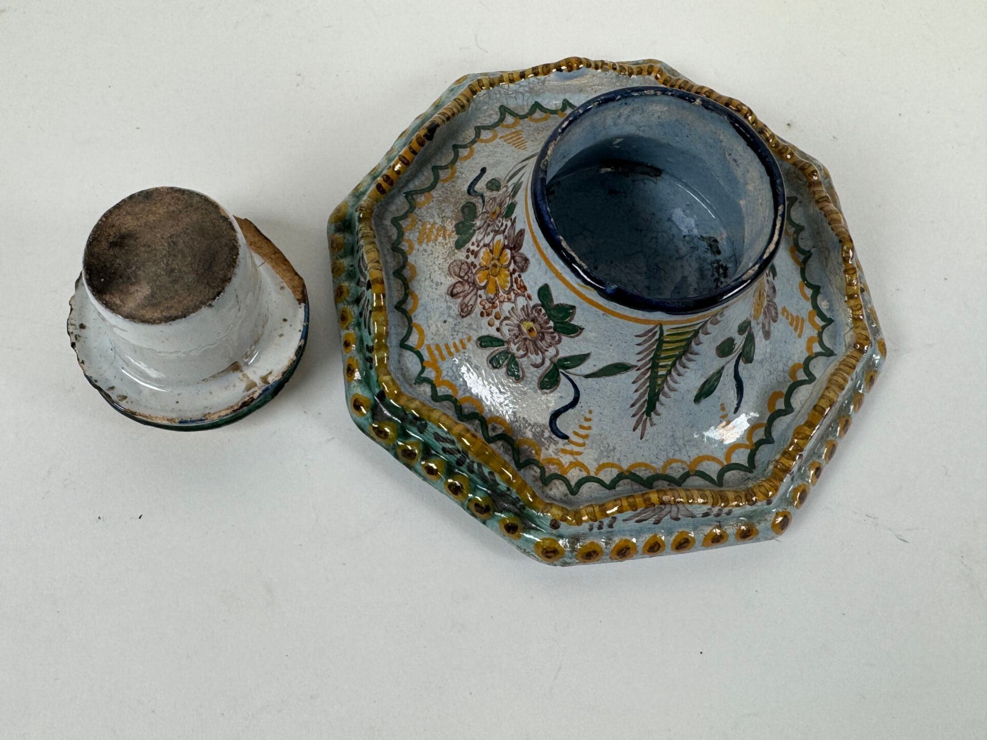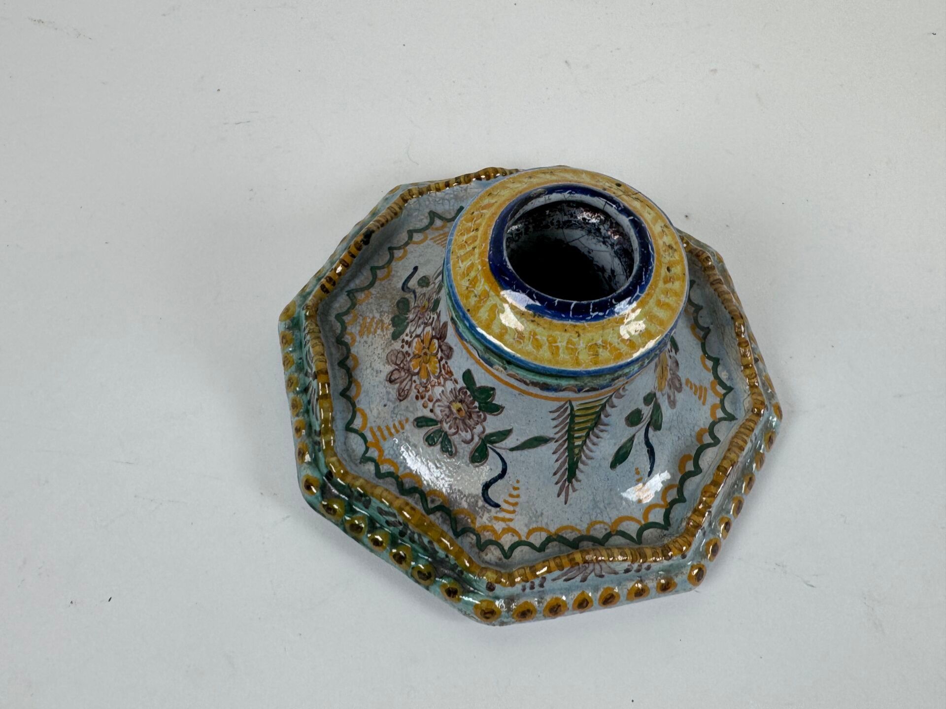 NEVERS, MONTAGNON. Polychrome earthenware octagonal inkwell …