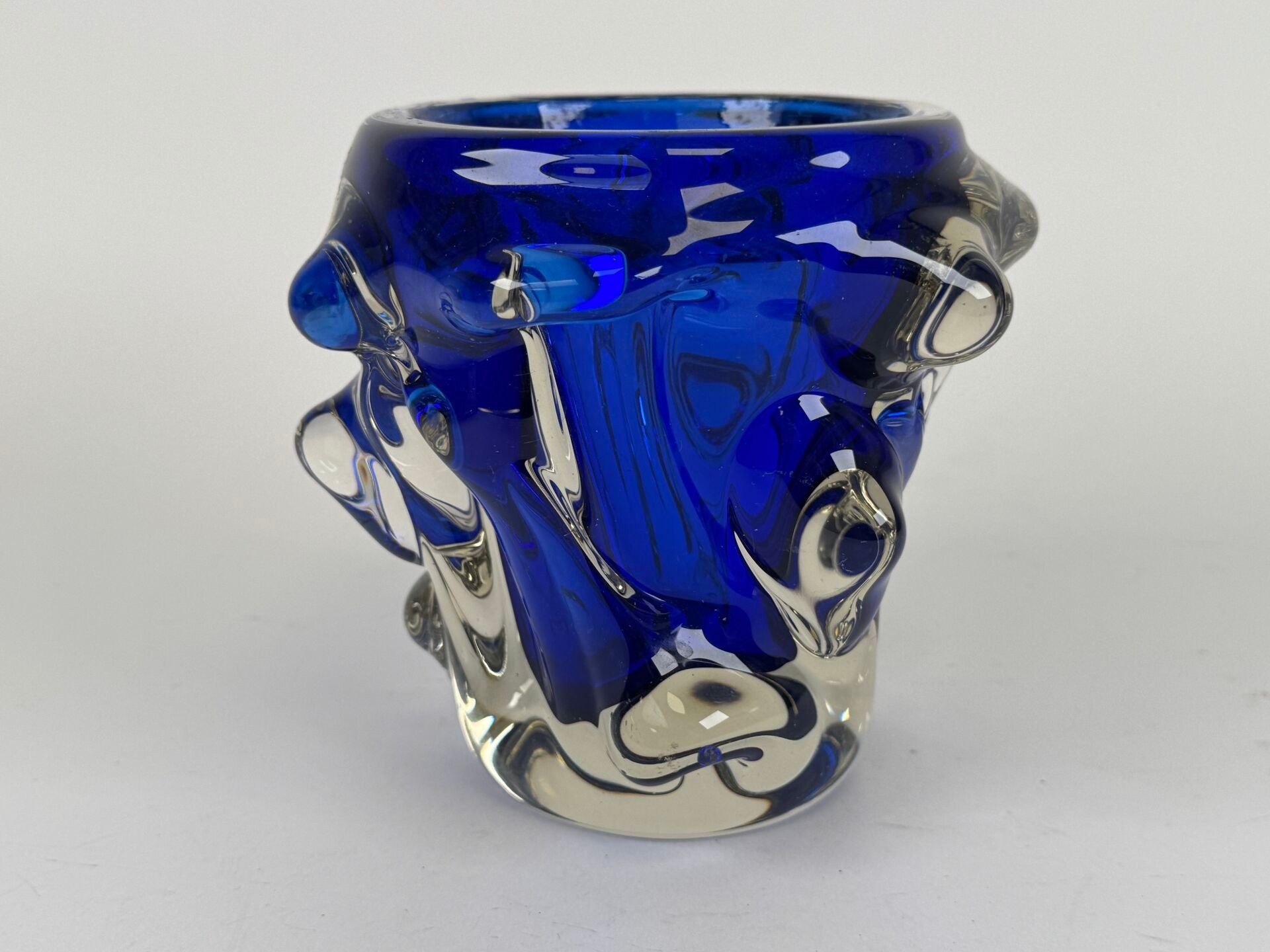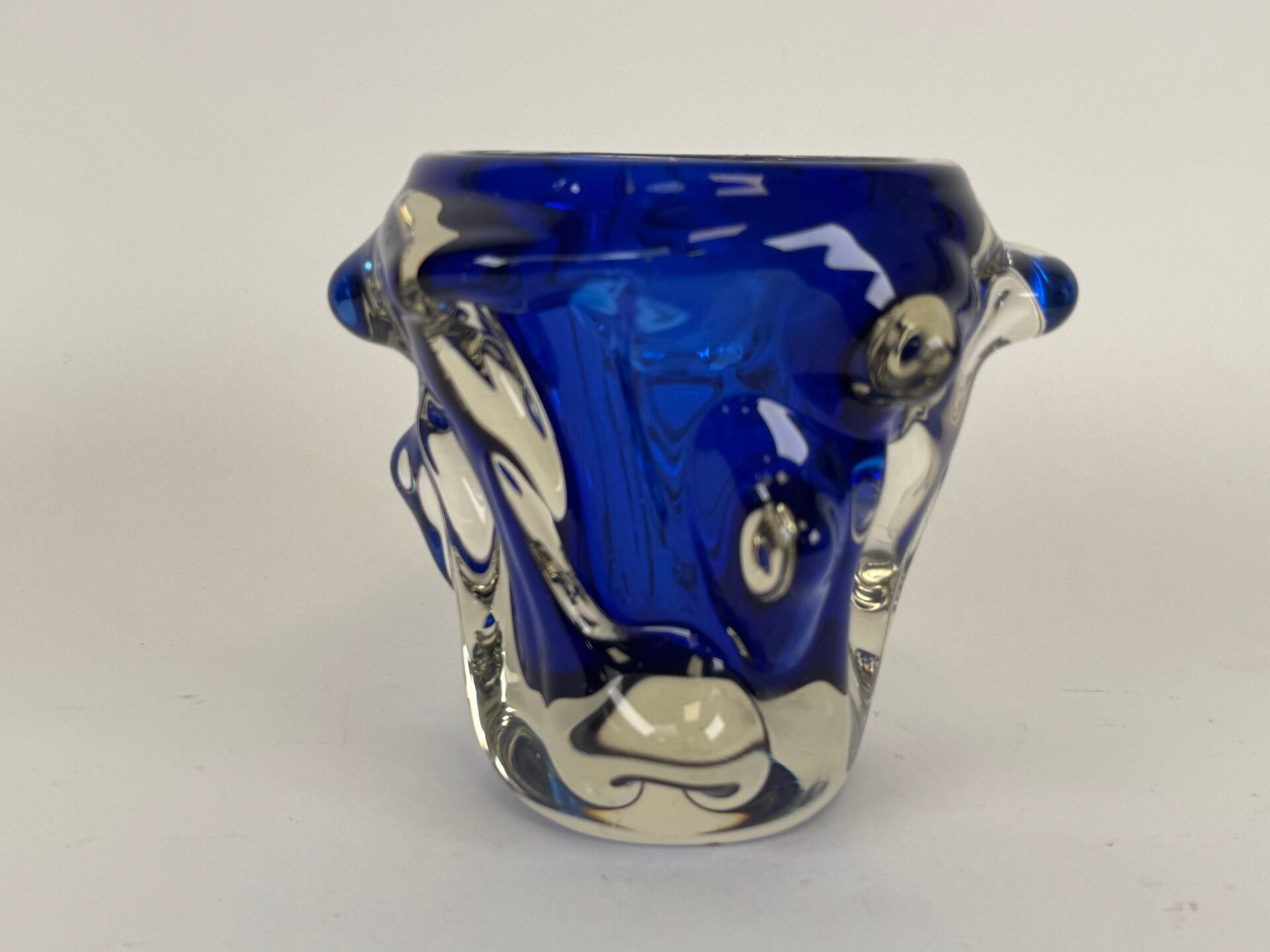 Vase in moulded and pressed crystal with relief decoration of stylised motifs.