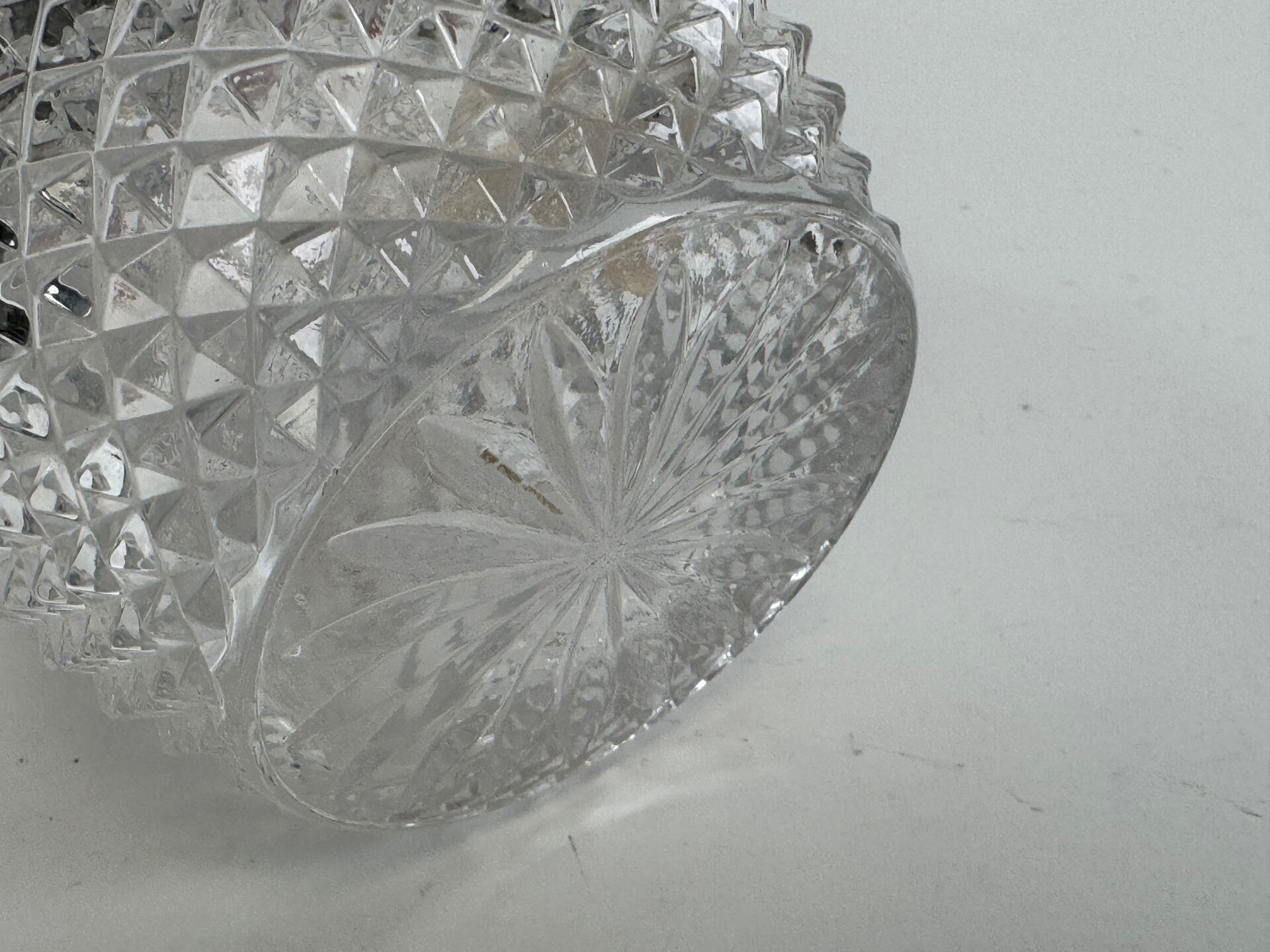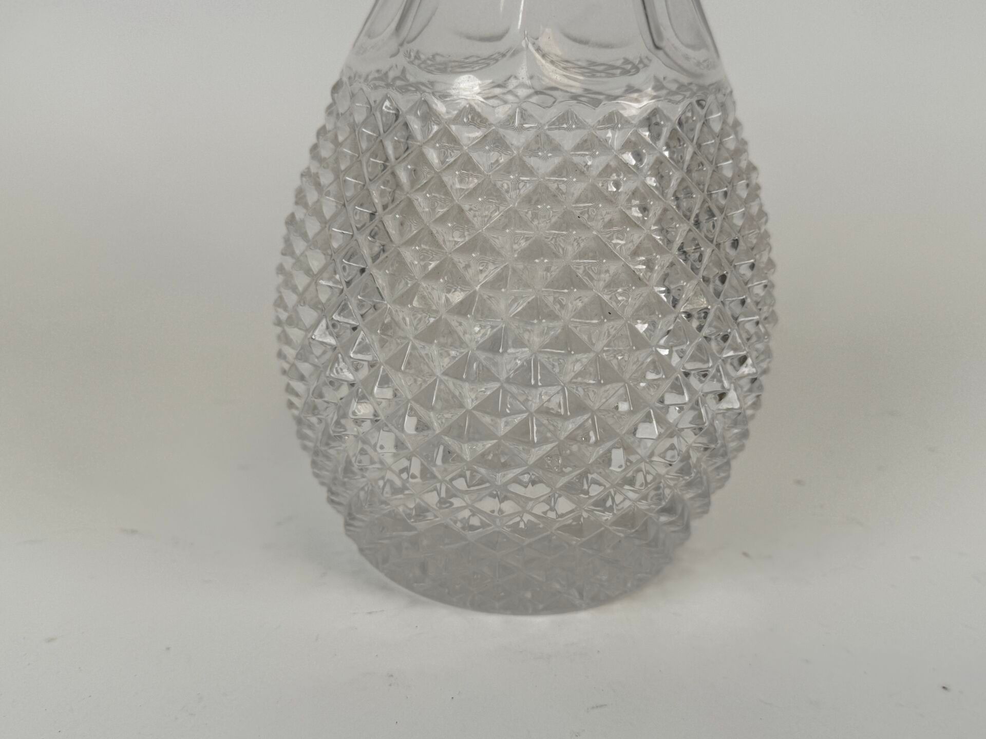 Moulded and pressed crystal decanter with diamond decoration.