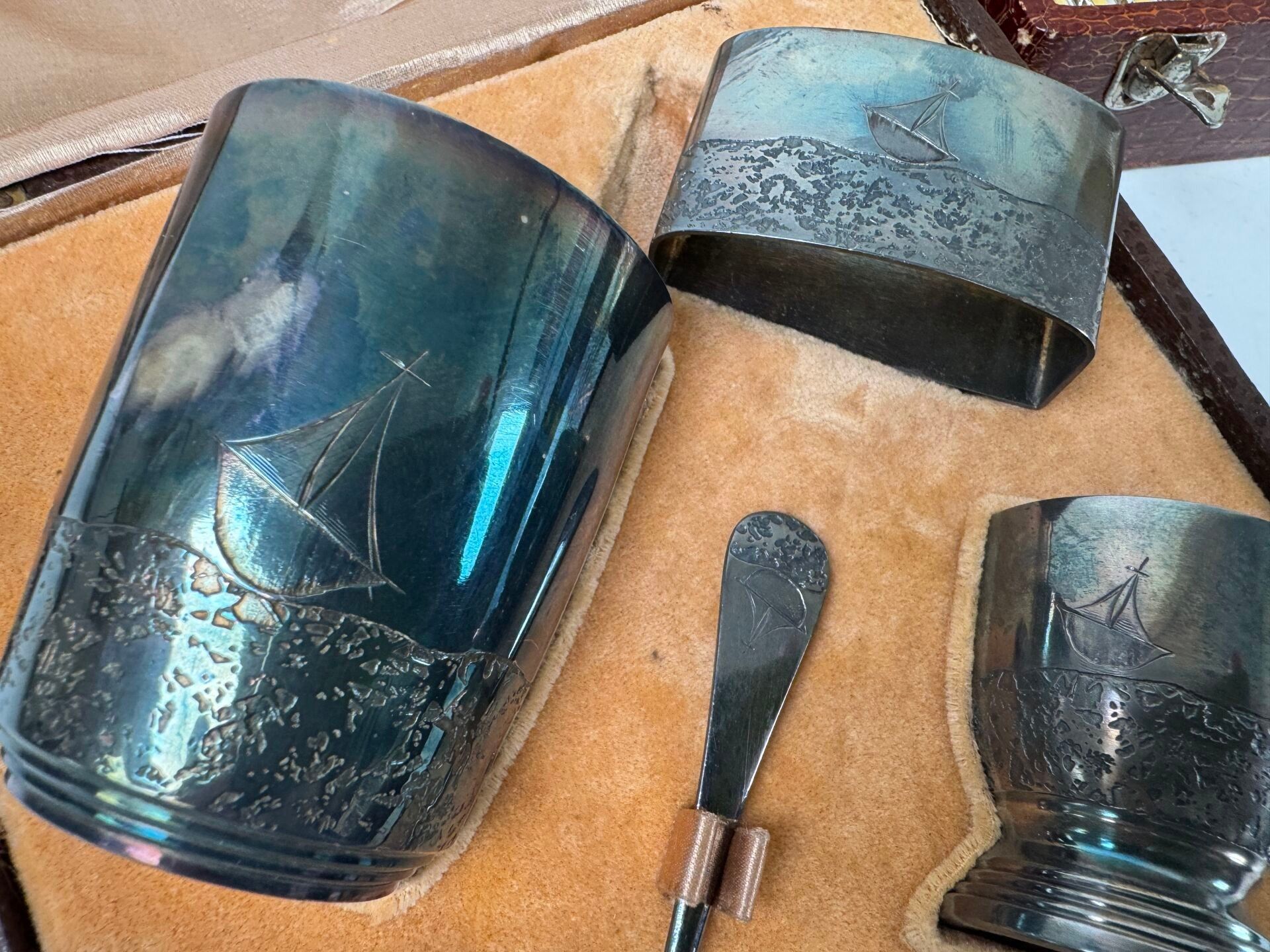 - a christening set including a tumbler, an egg cup, a napkin ring and a teaspoon.