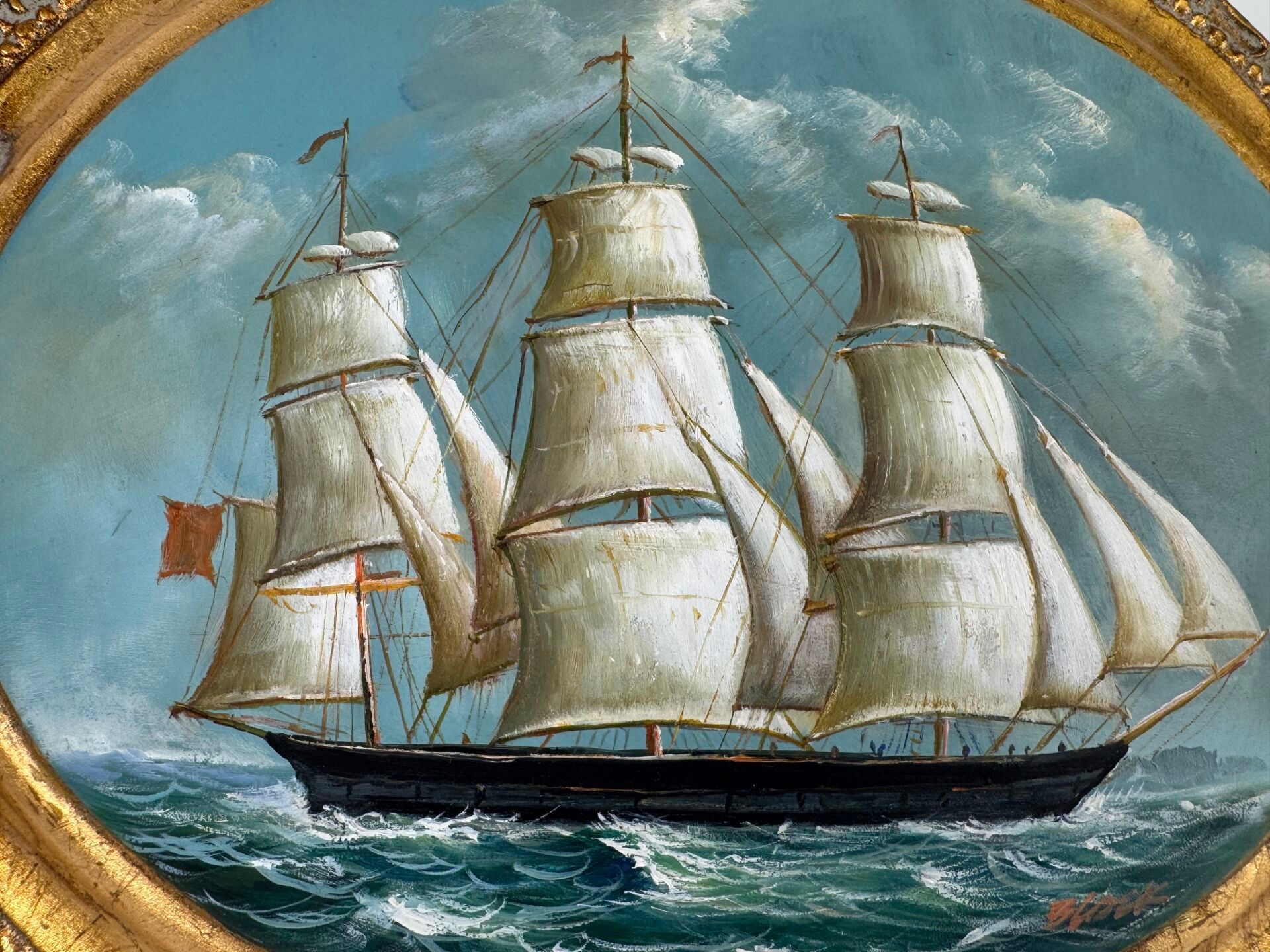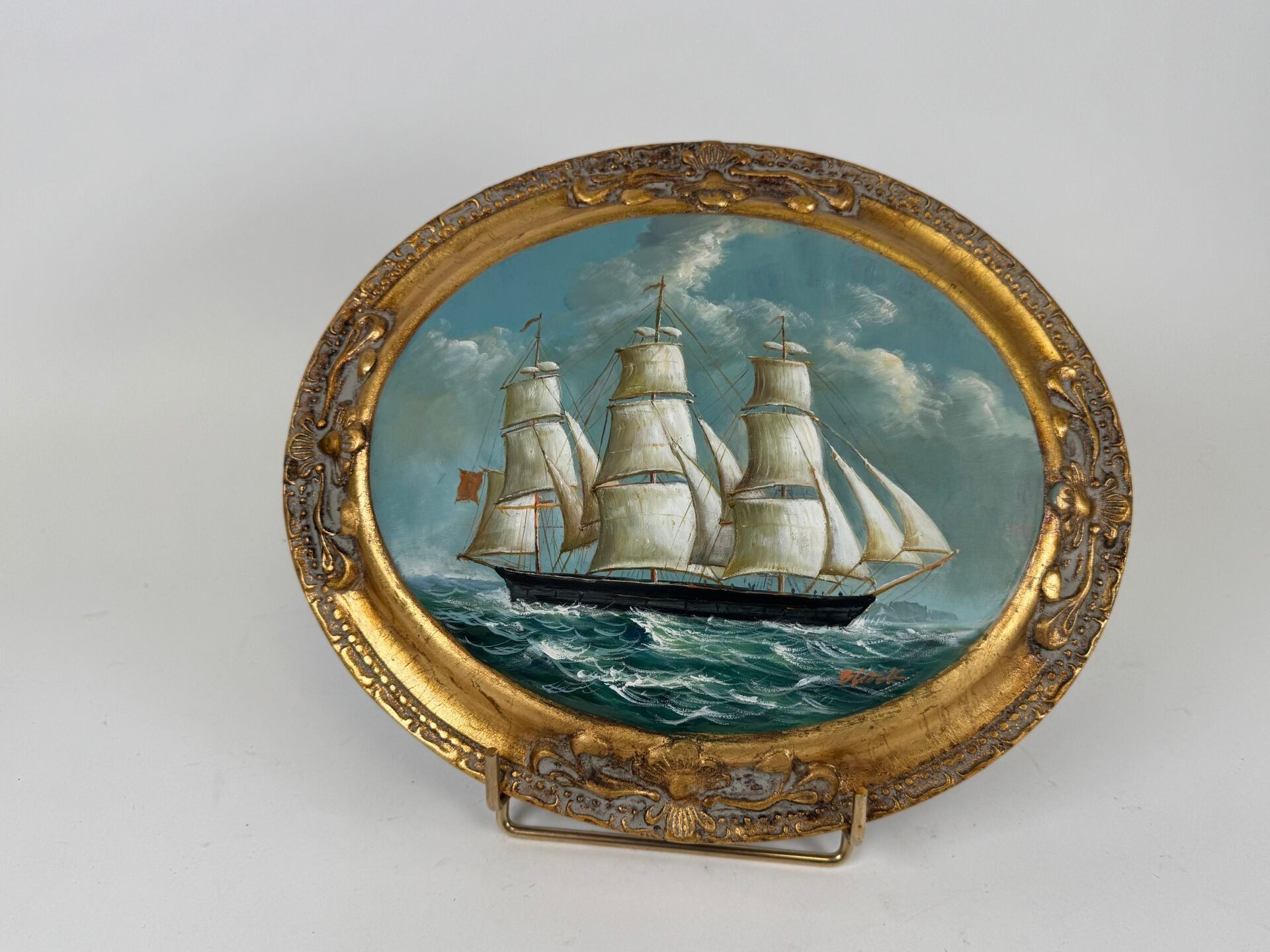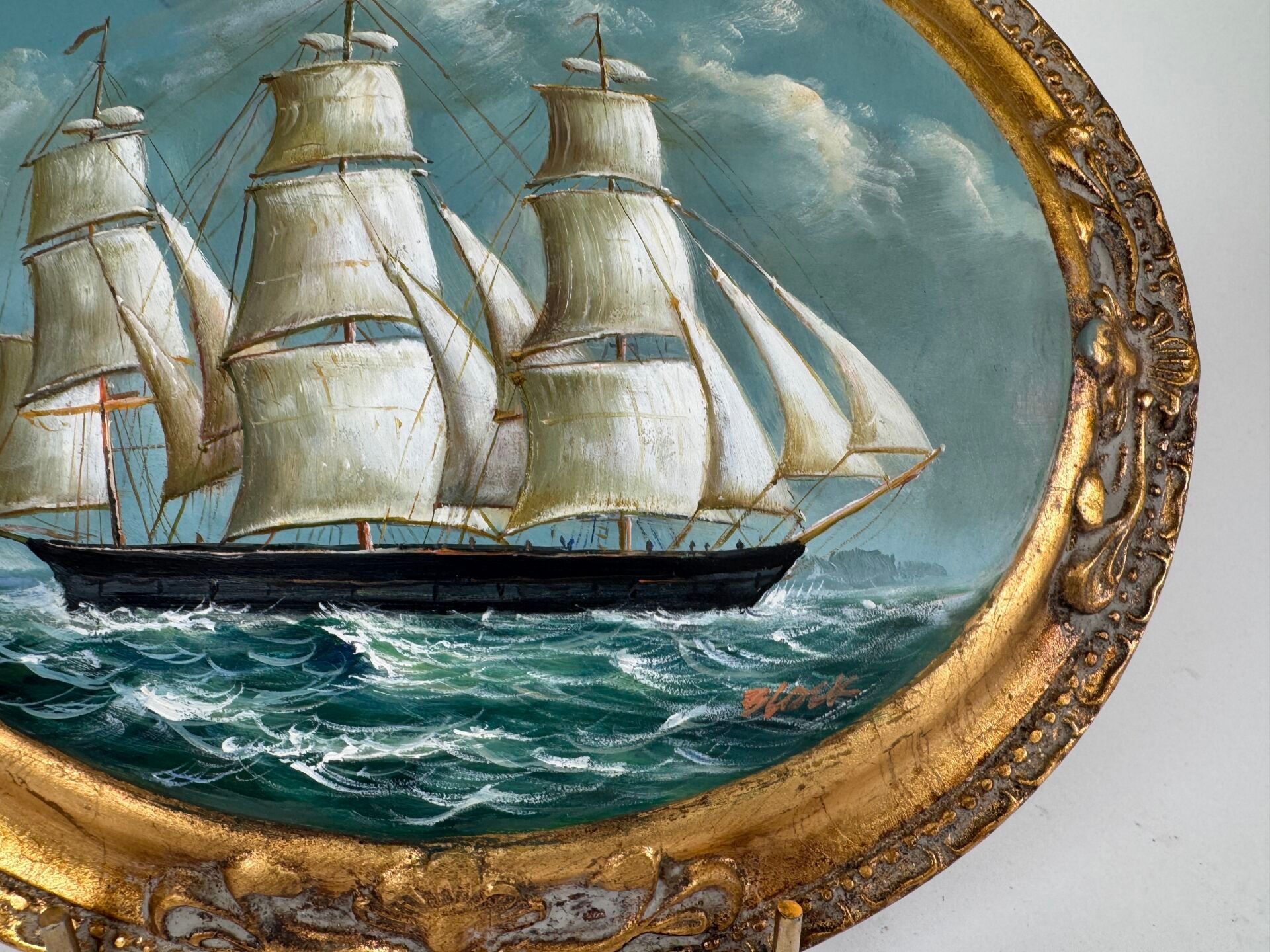 Oval medallion in resin.