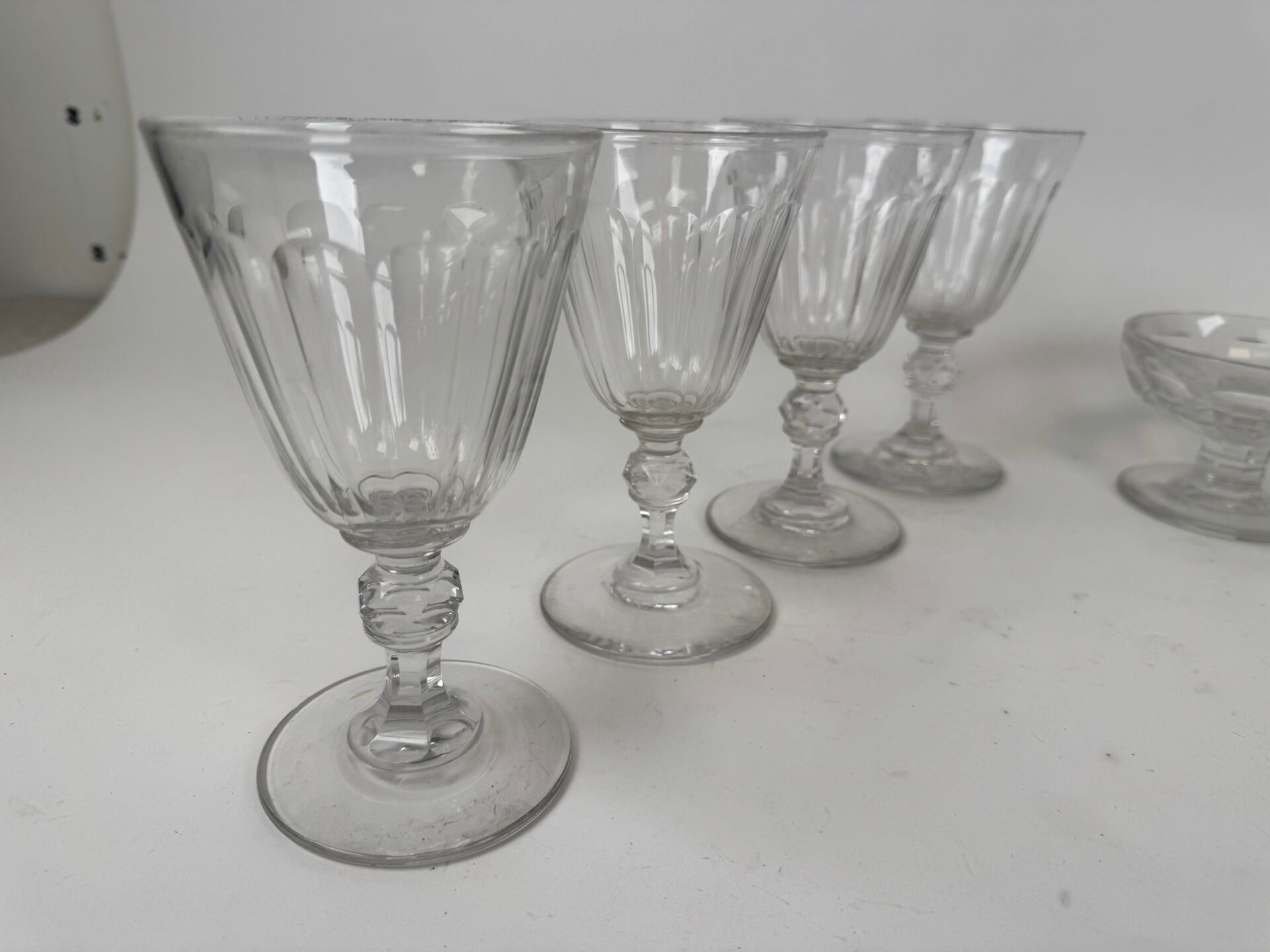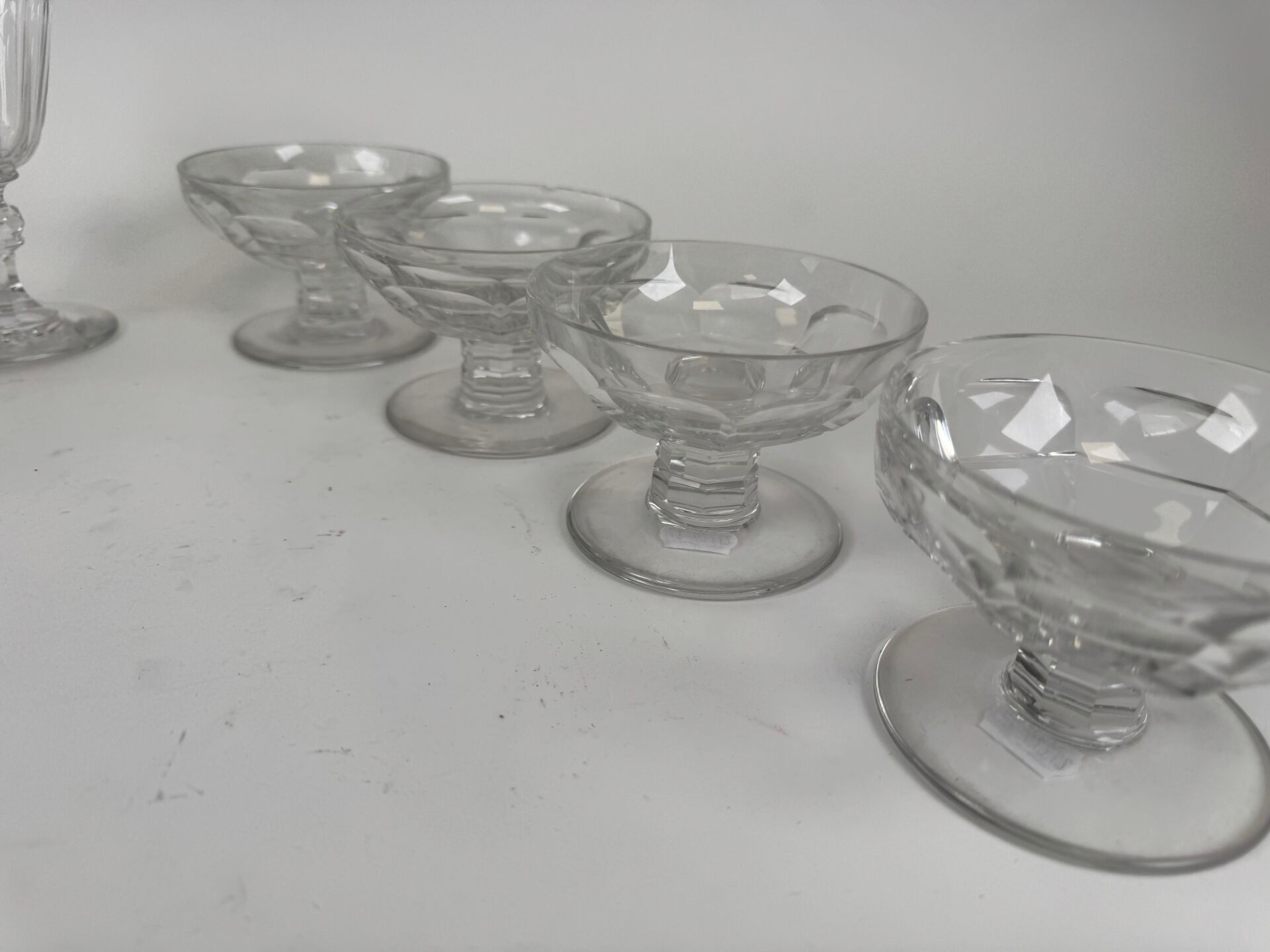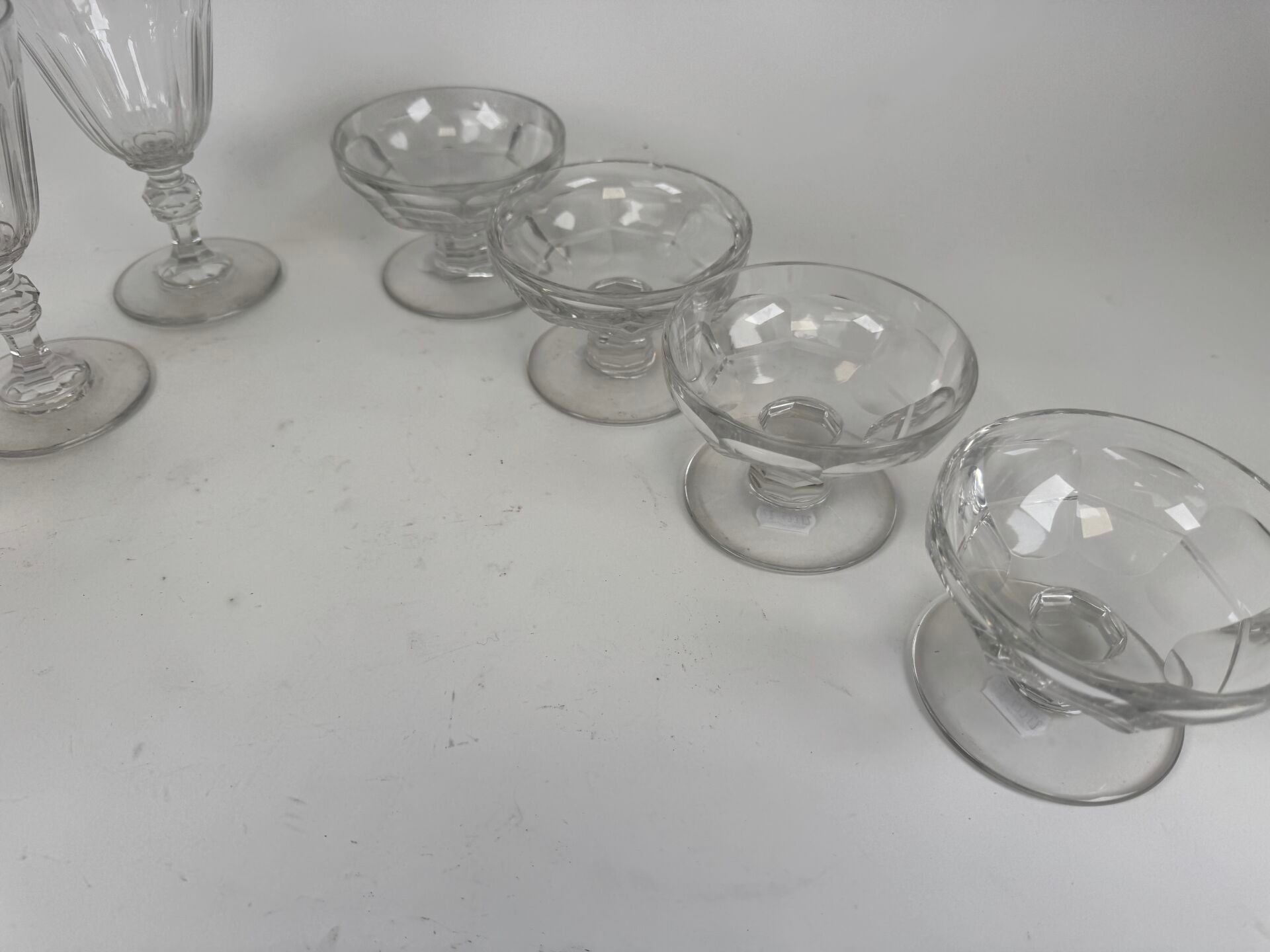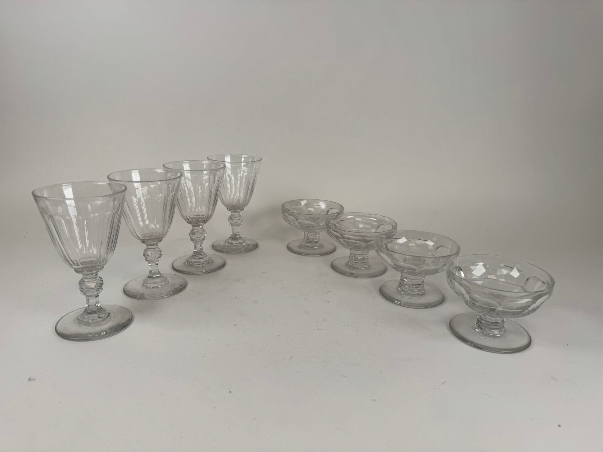 Set of four cut crystal goblets and four water glasses.