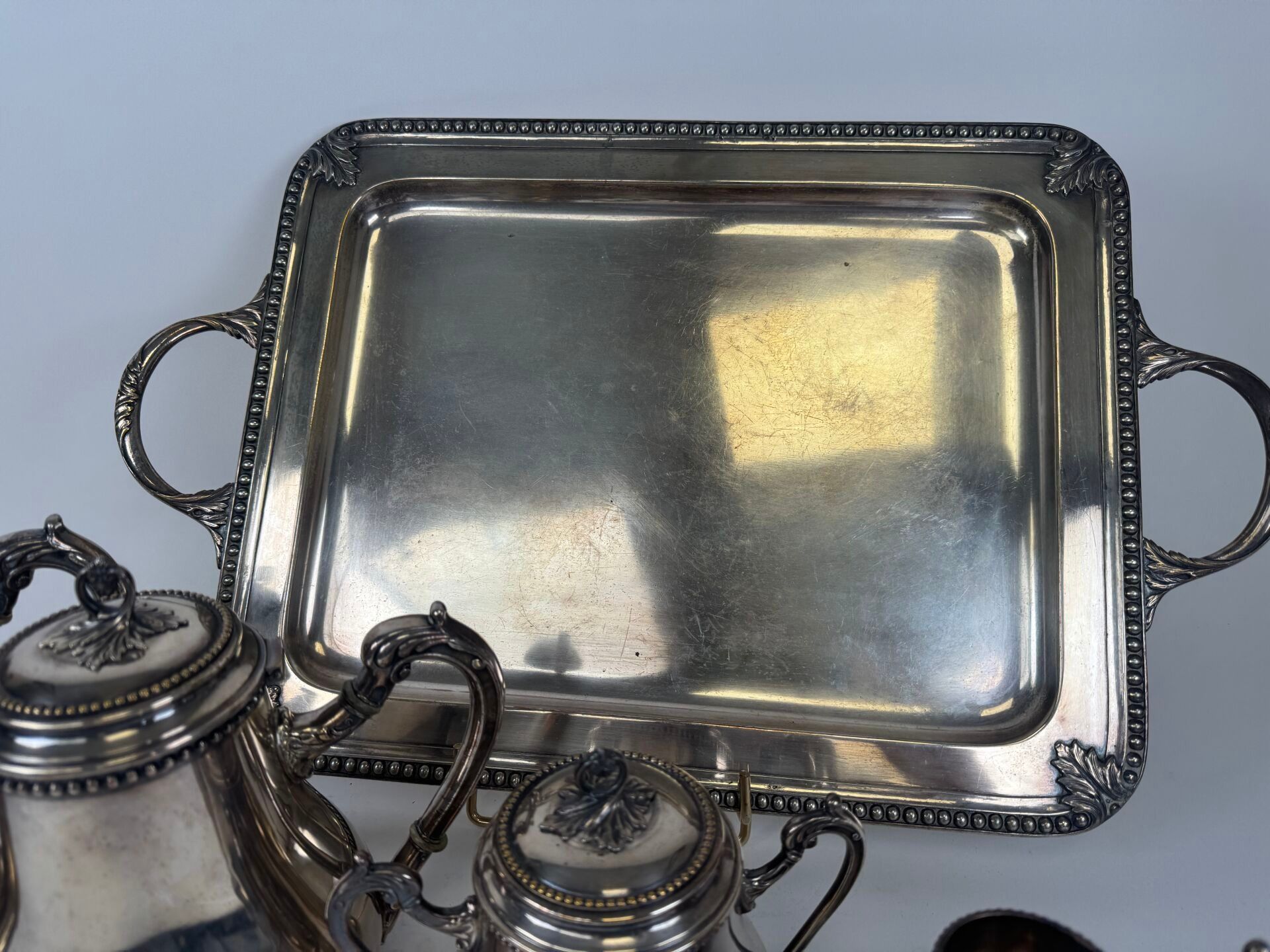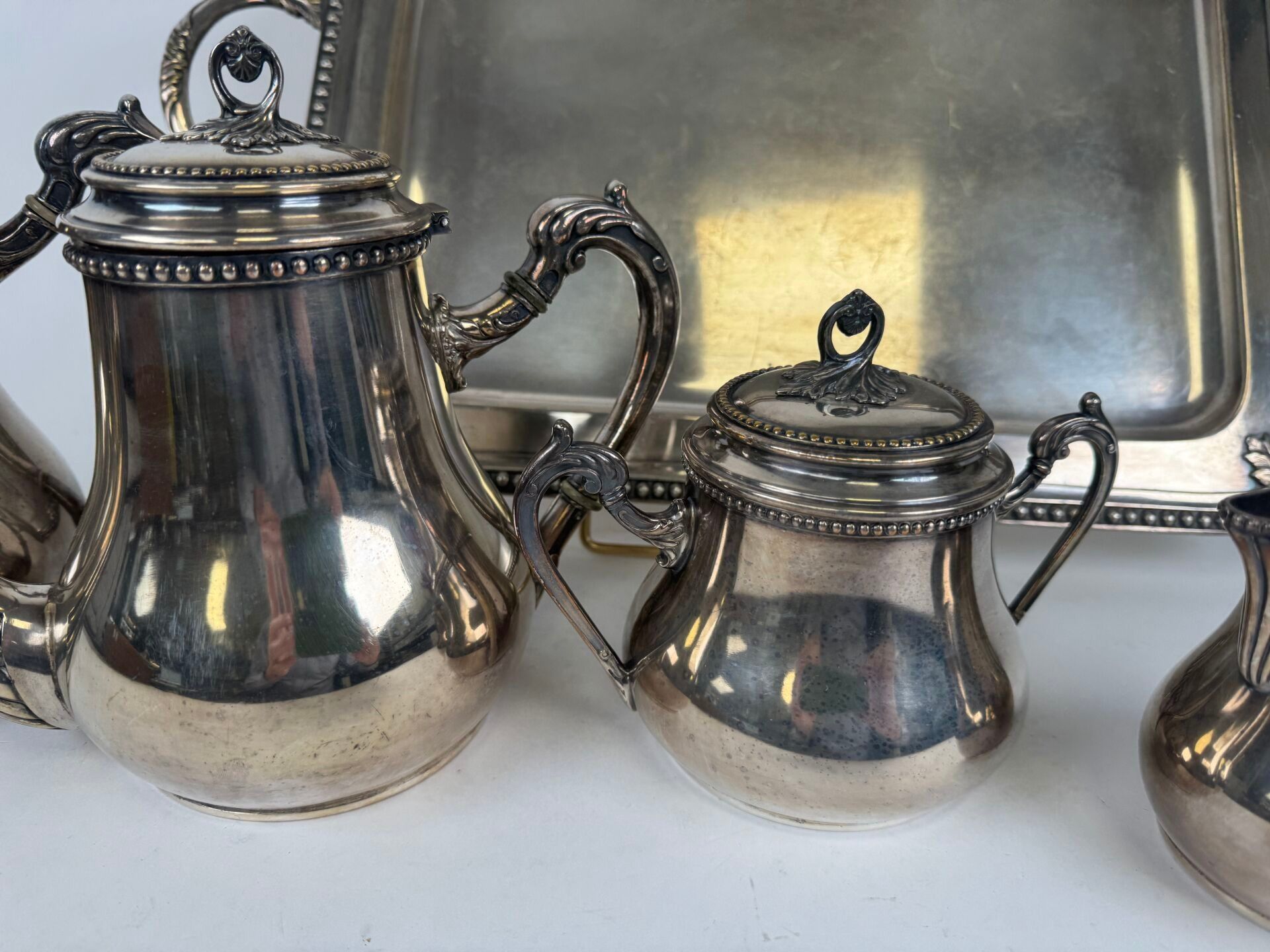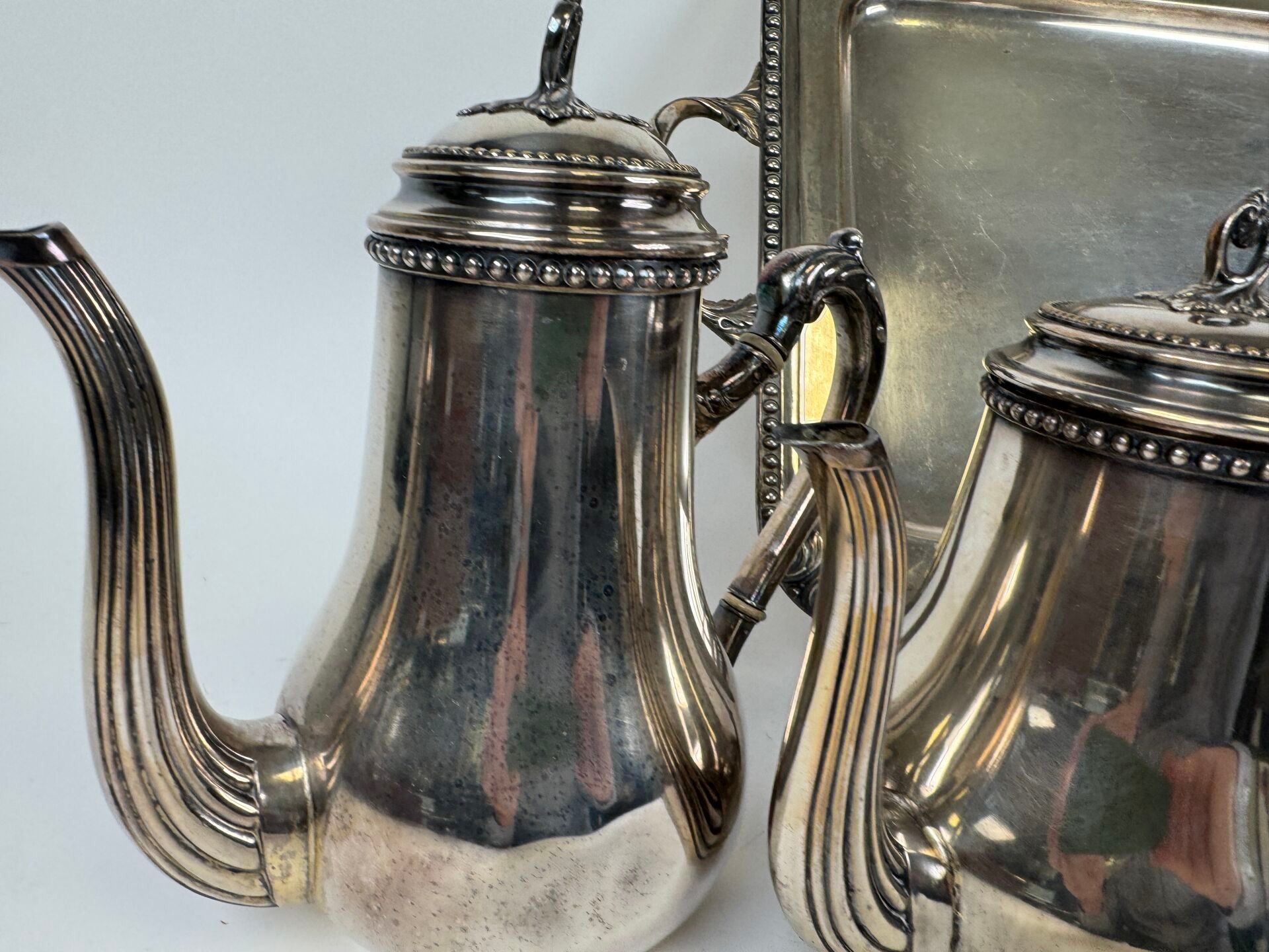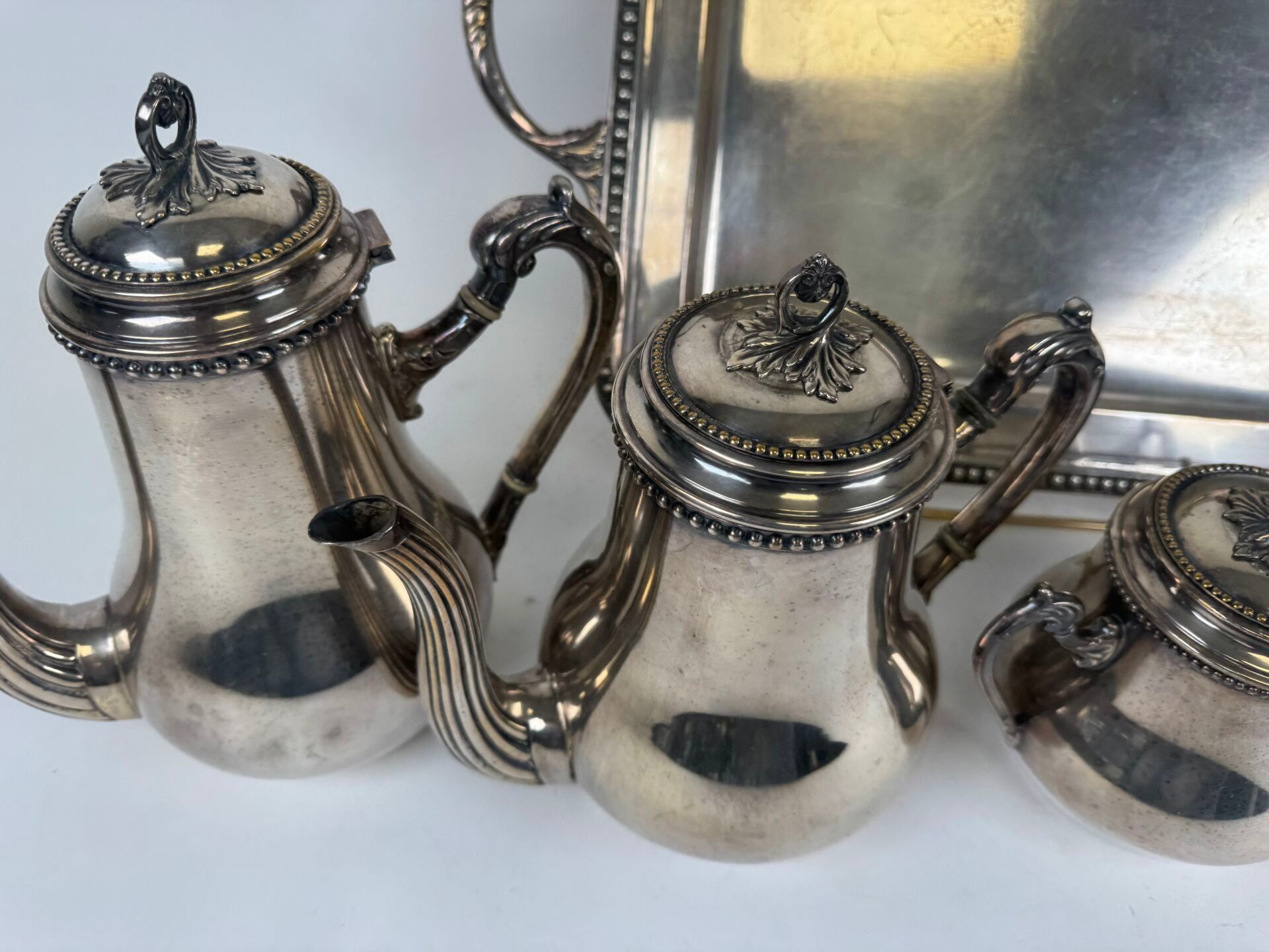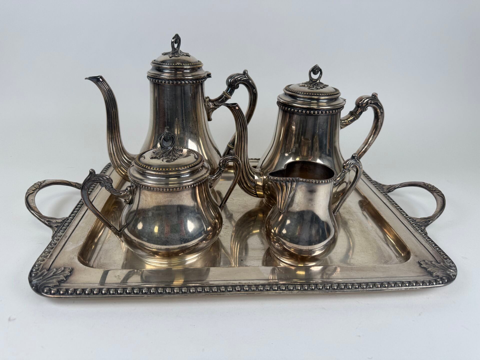 A silver-plated coffee and tea service with rows of pearls and foliate handles, comprising :