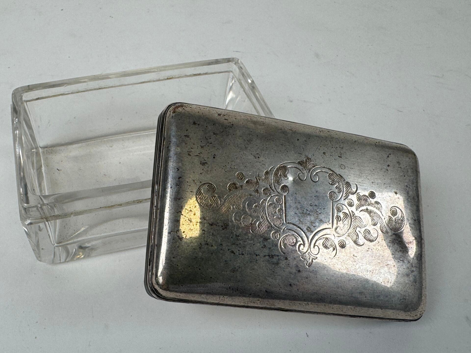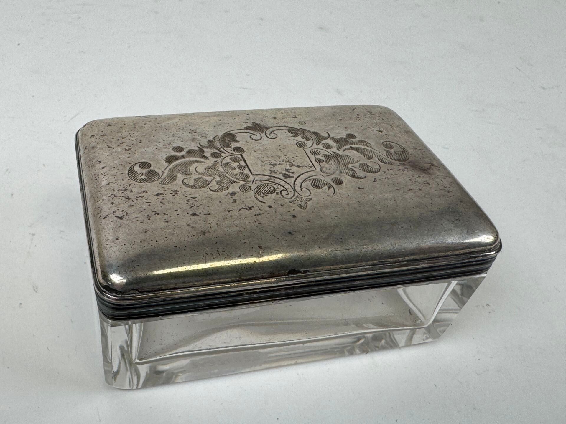 Small rectangular crystal box, the lid probably in silver wi…