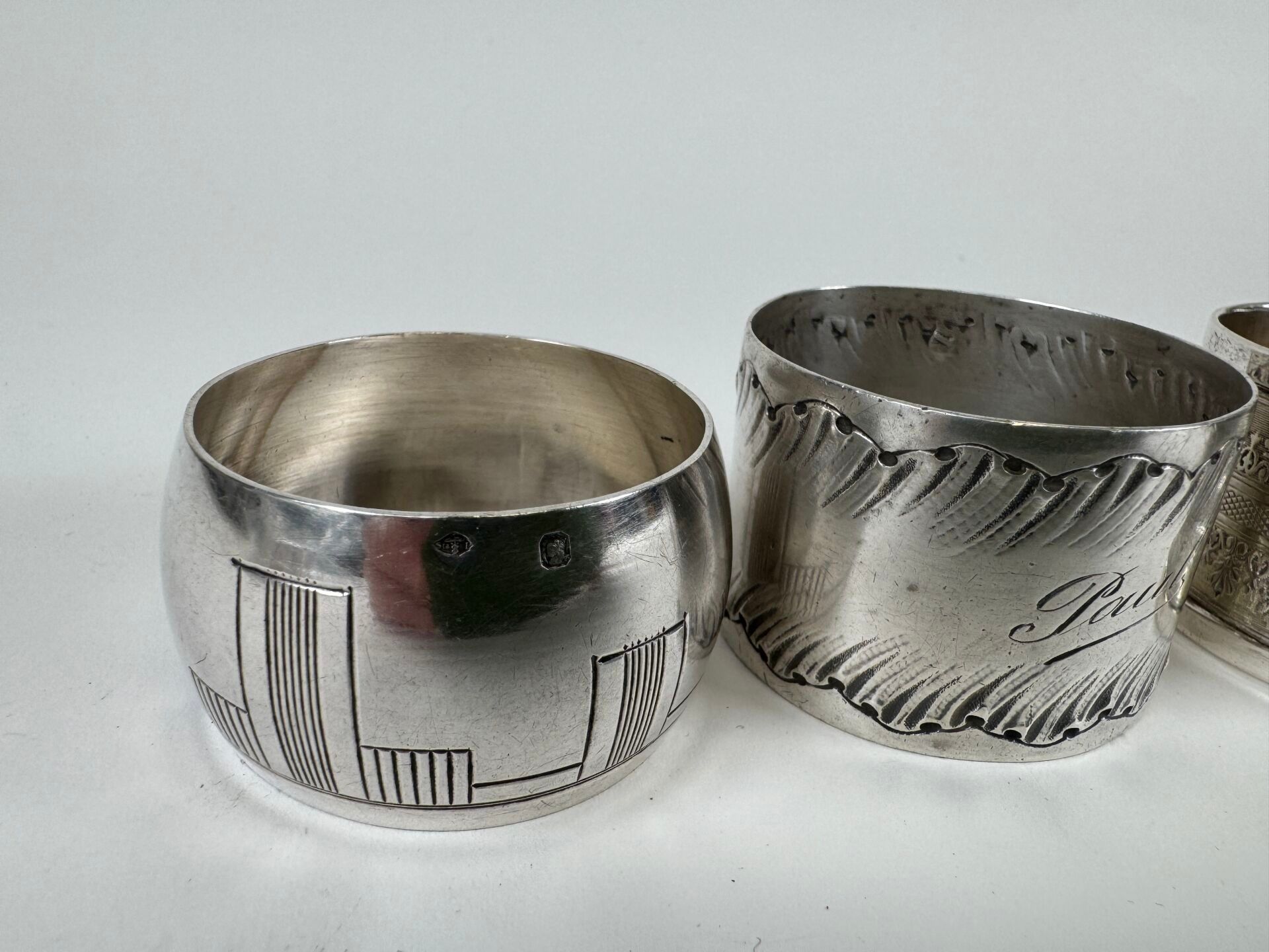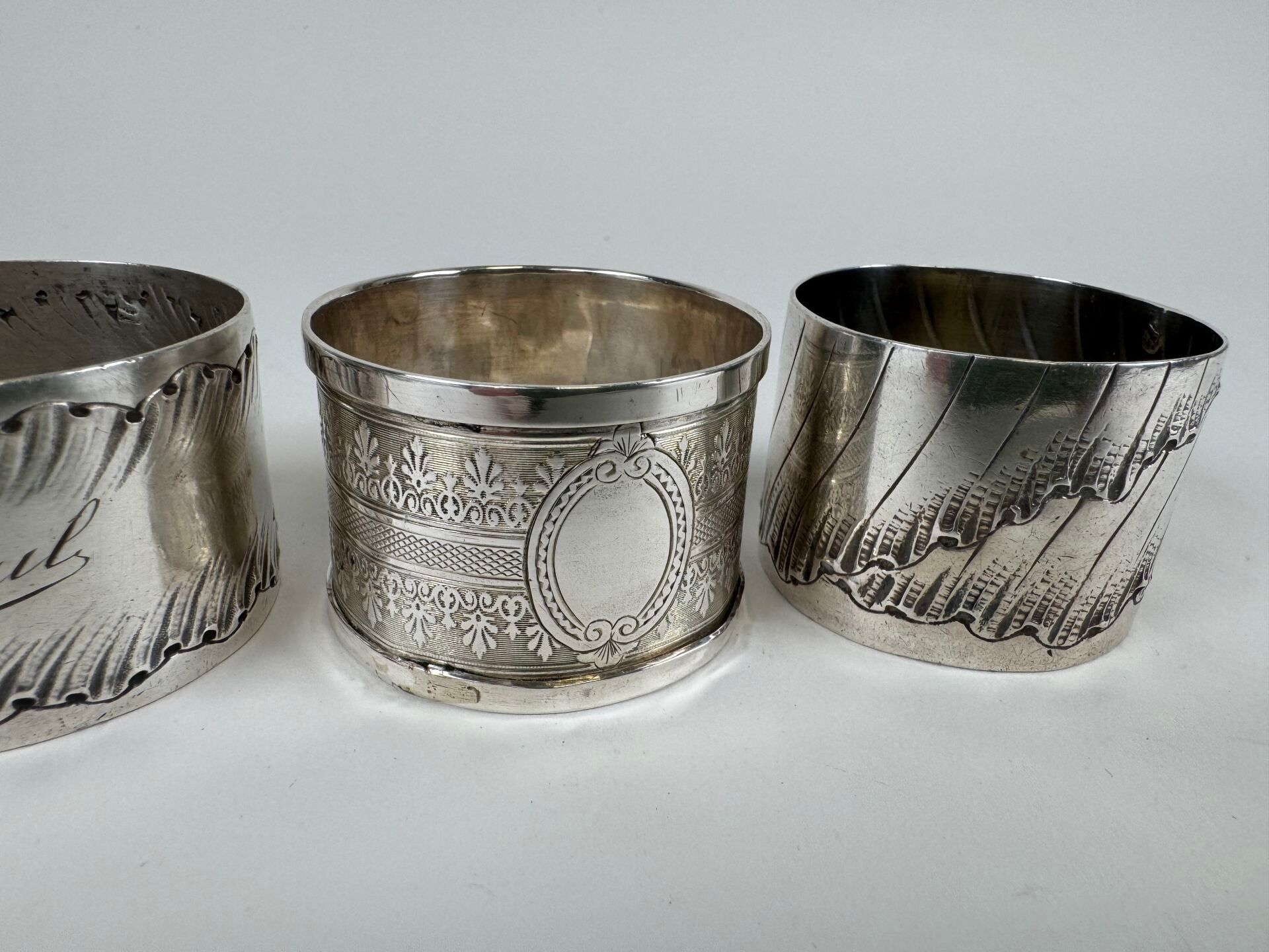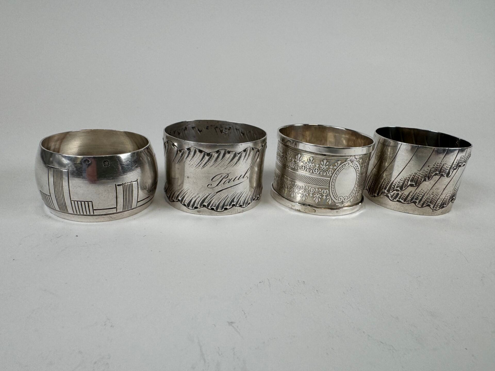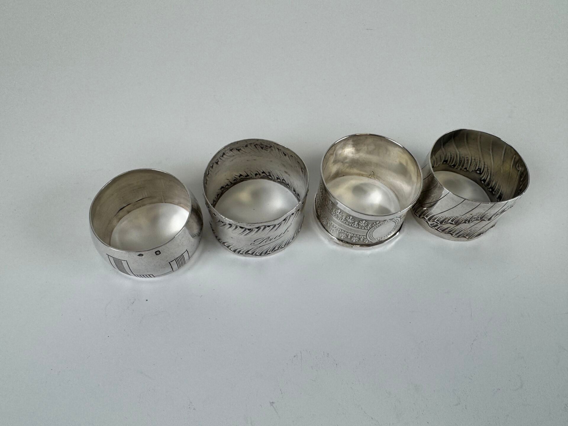 Set of 4 silver napkin rings, 950/1000, chased and guilloché.