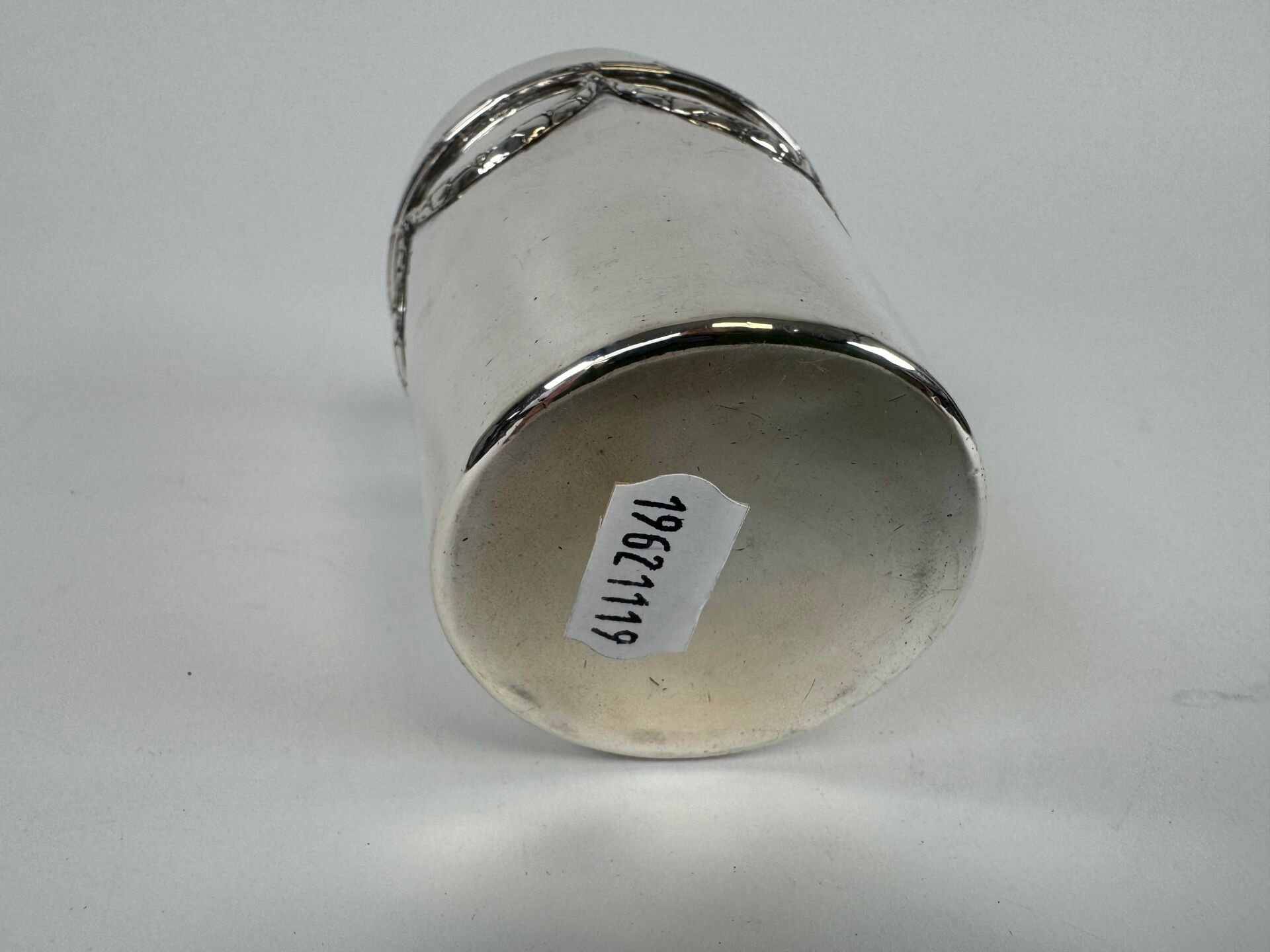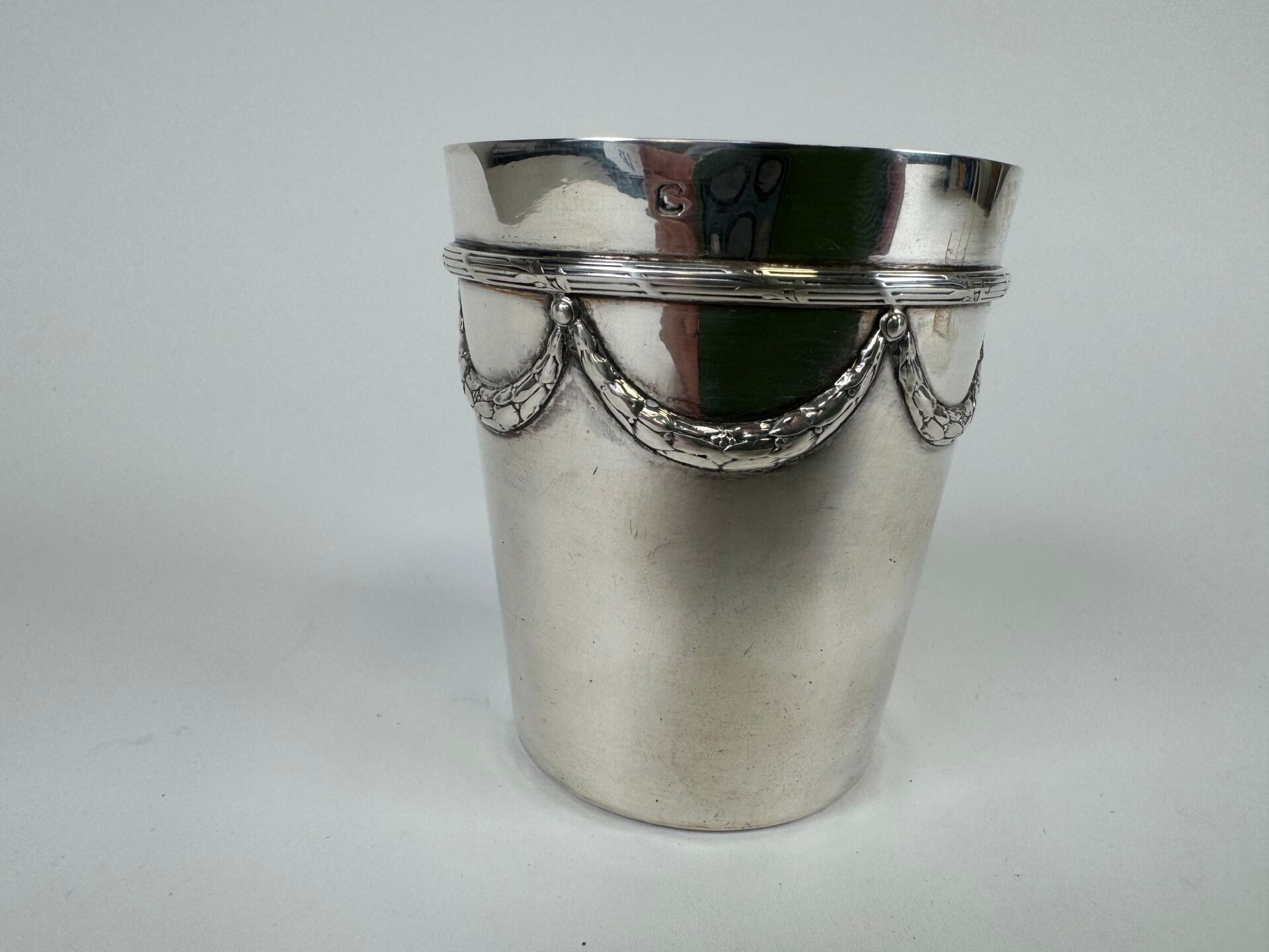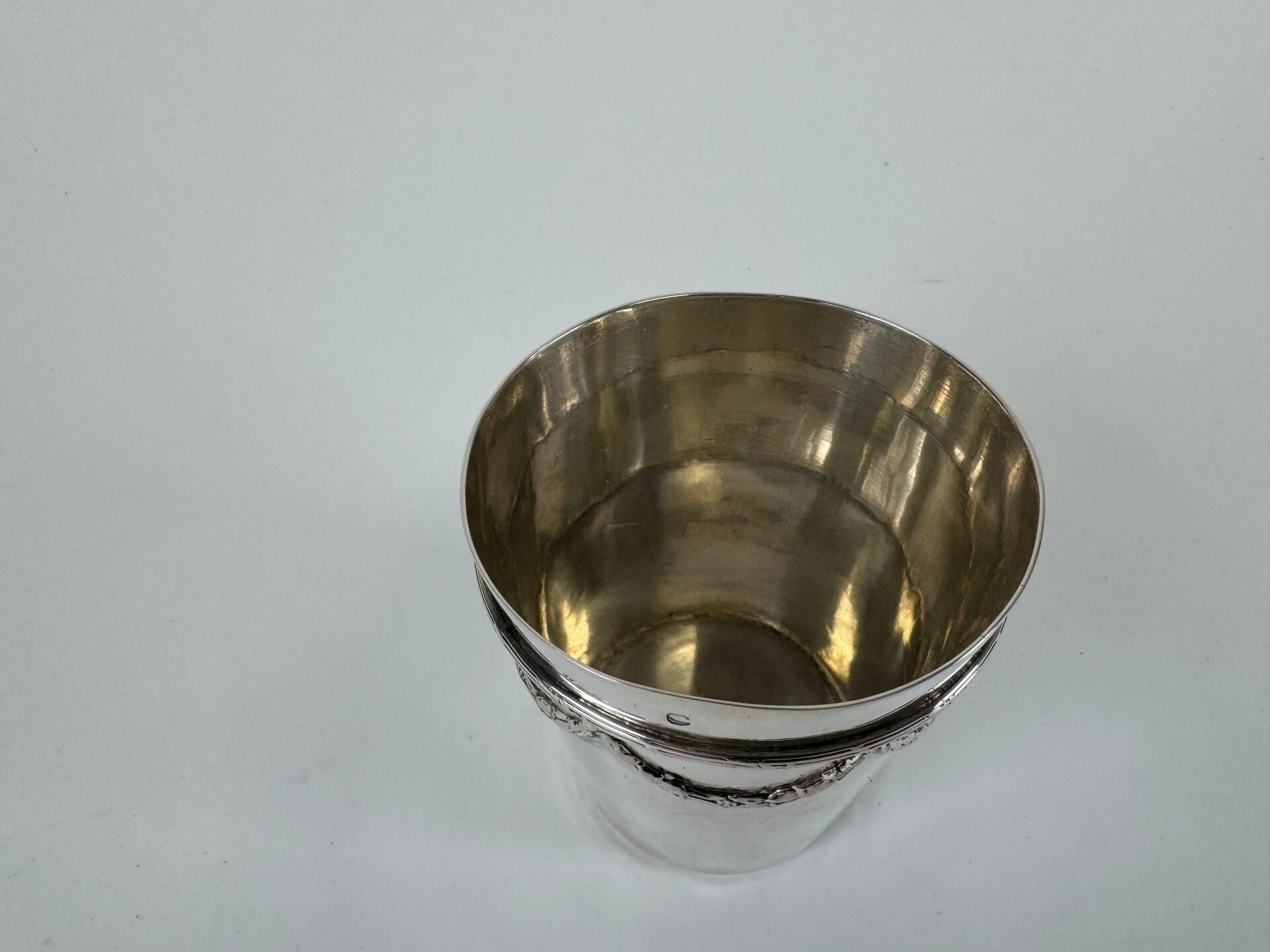 Timbale in silver 950/1000, with gold die of leafy garlands and ribboned filets.