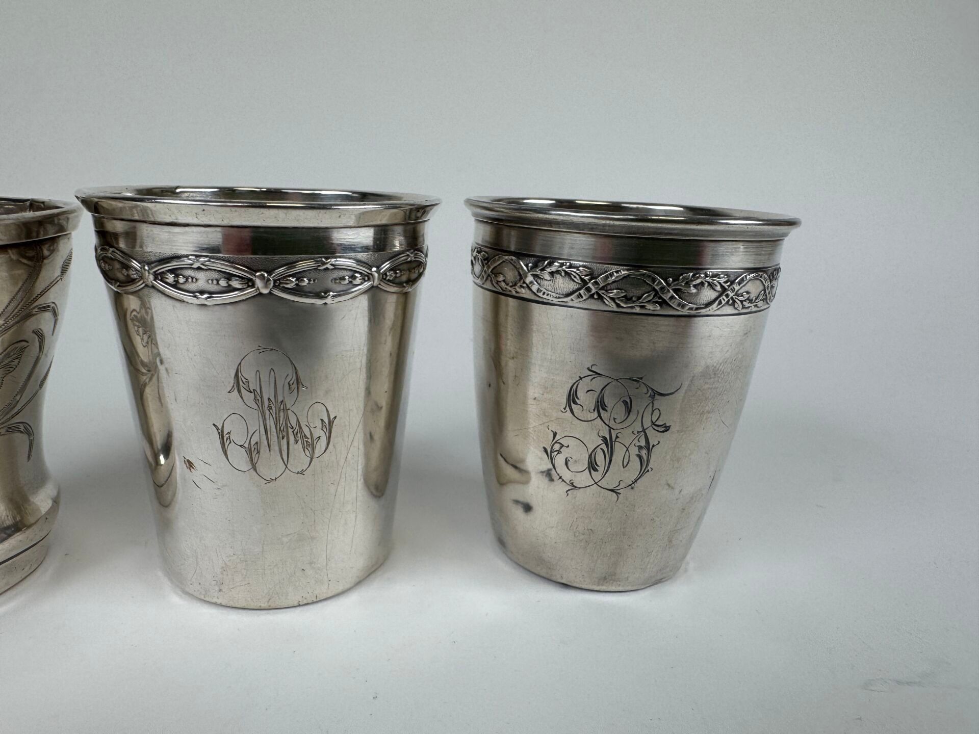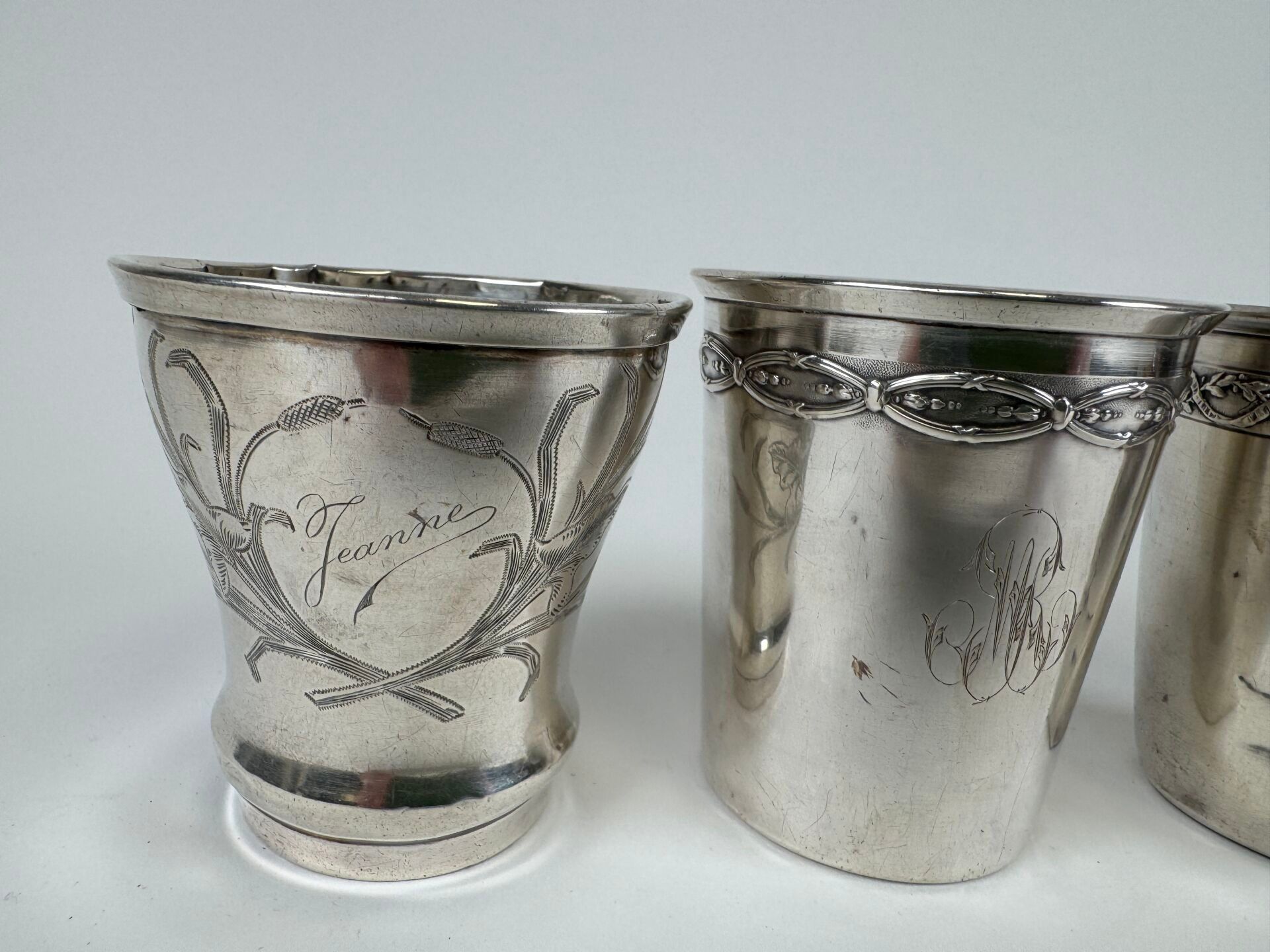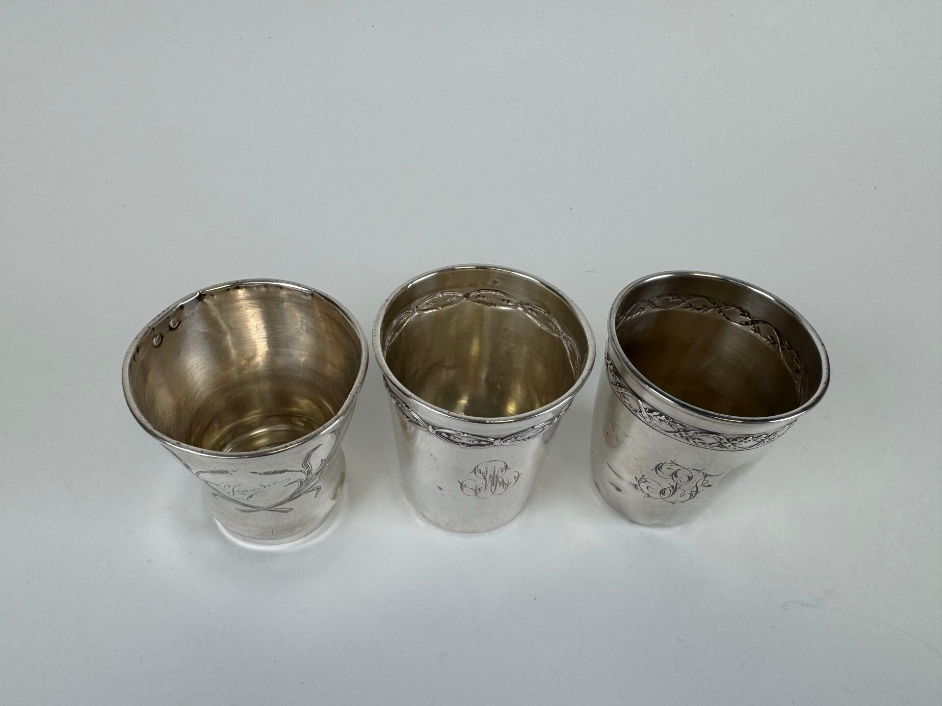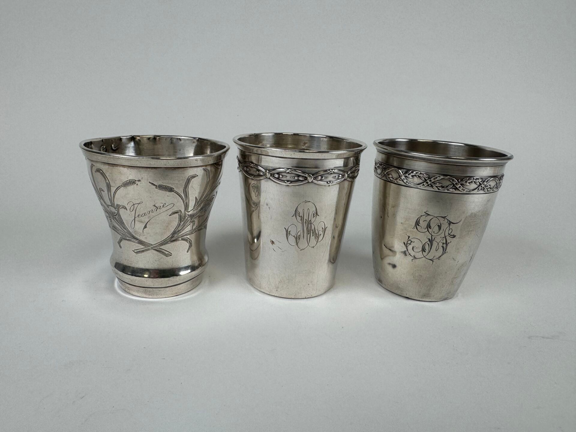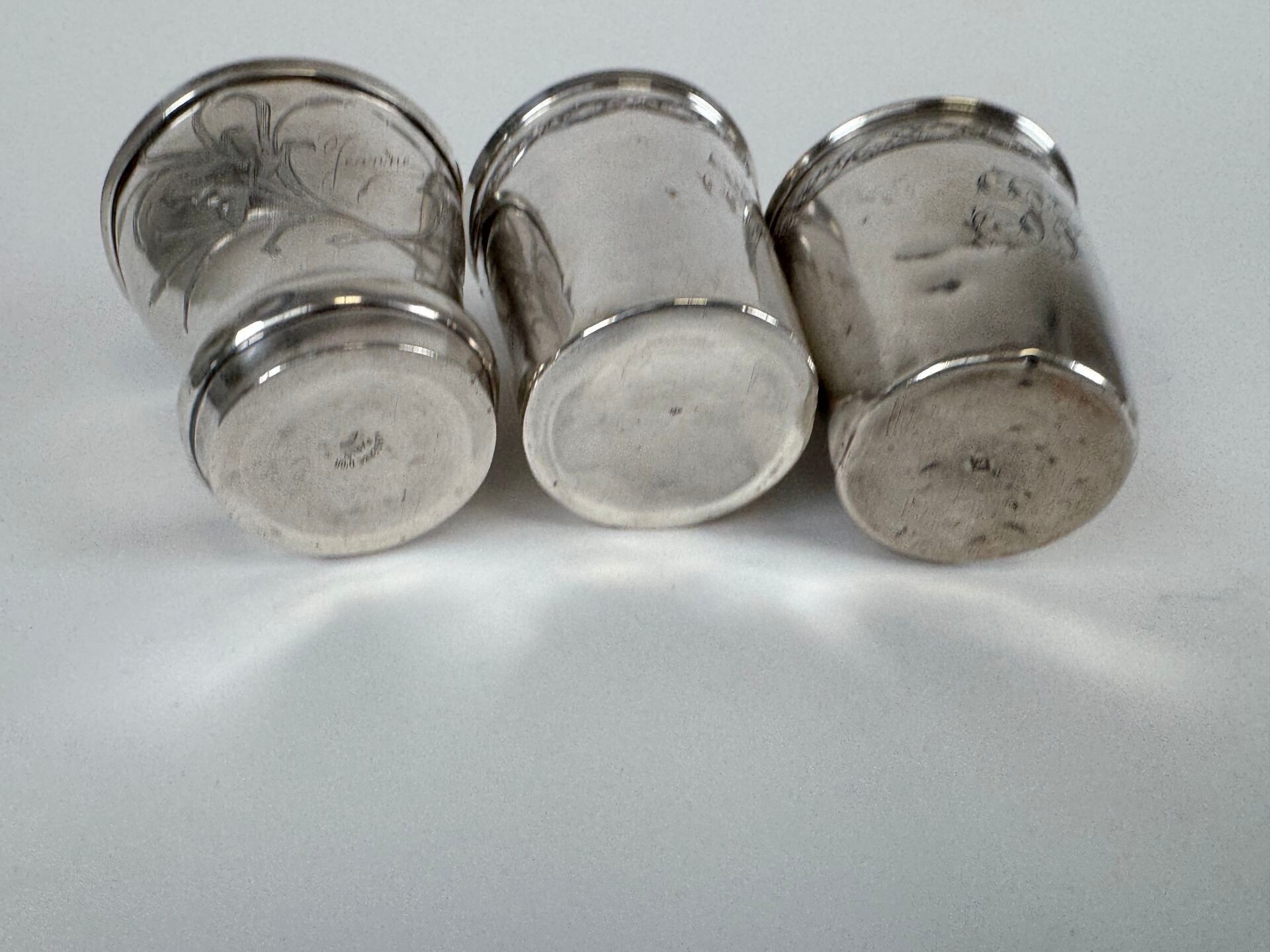 Set of three 950/1000 silver kettledrums with chased foliate decoration, two engraved and one marked Jeanne.