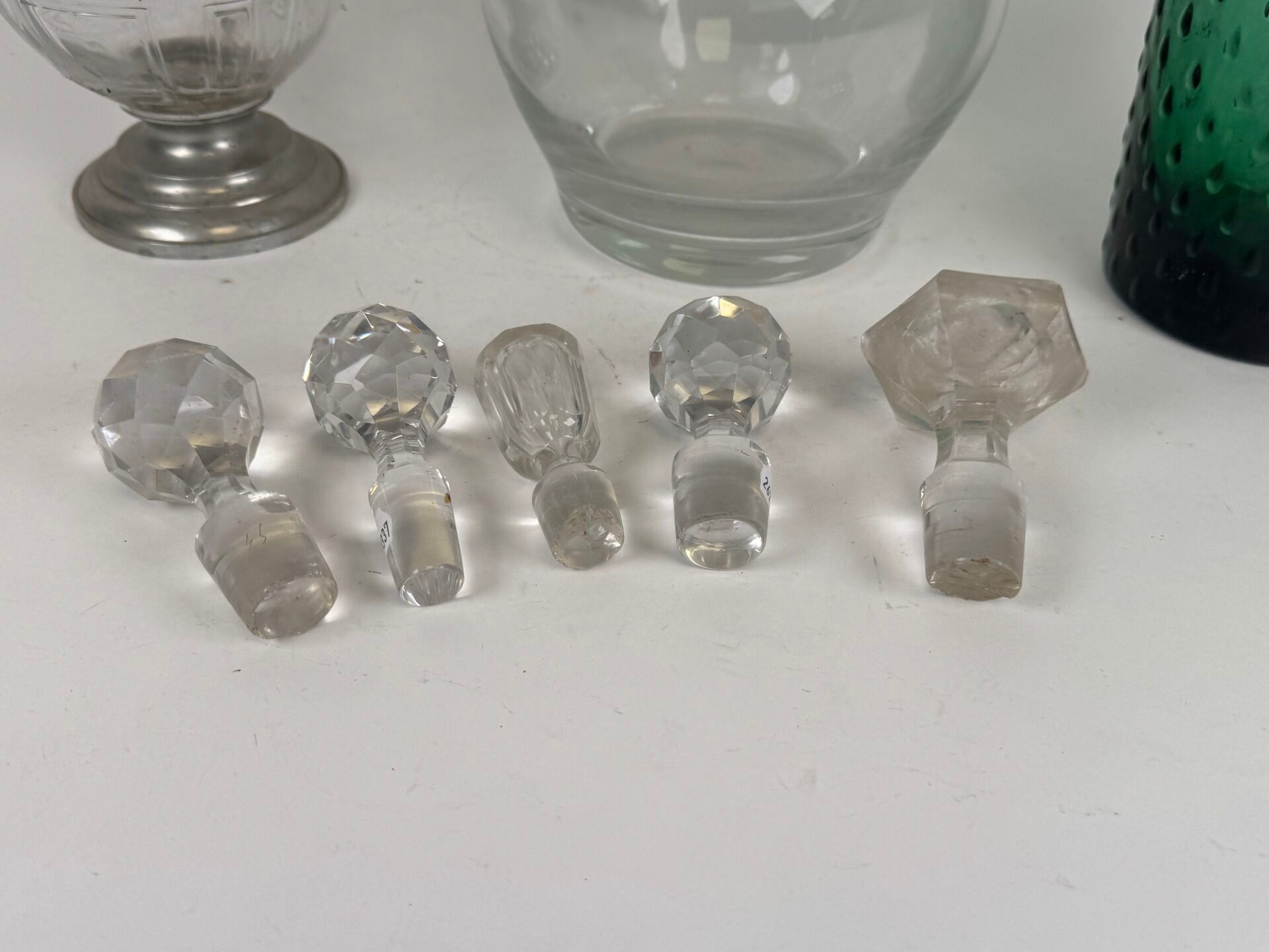 - five glass or crystal stoppers.