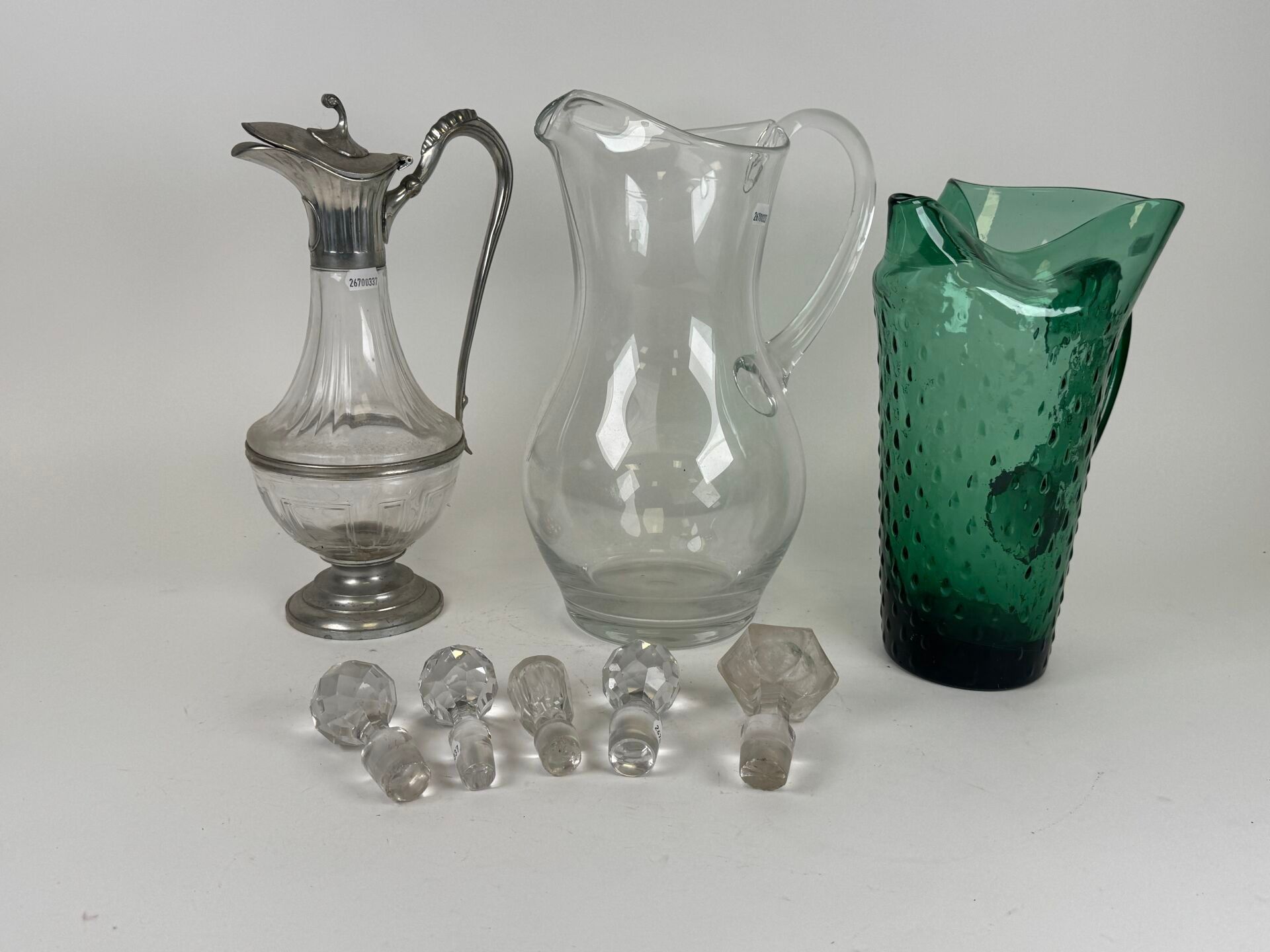 Glass lot comprising : - two carafes, one coloured green wit…