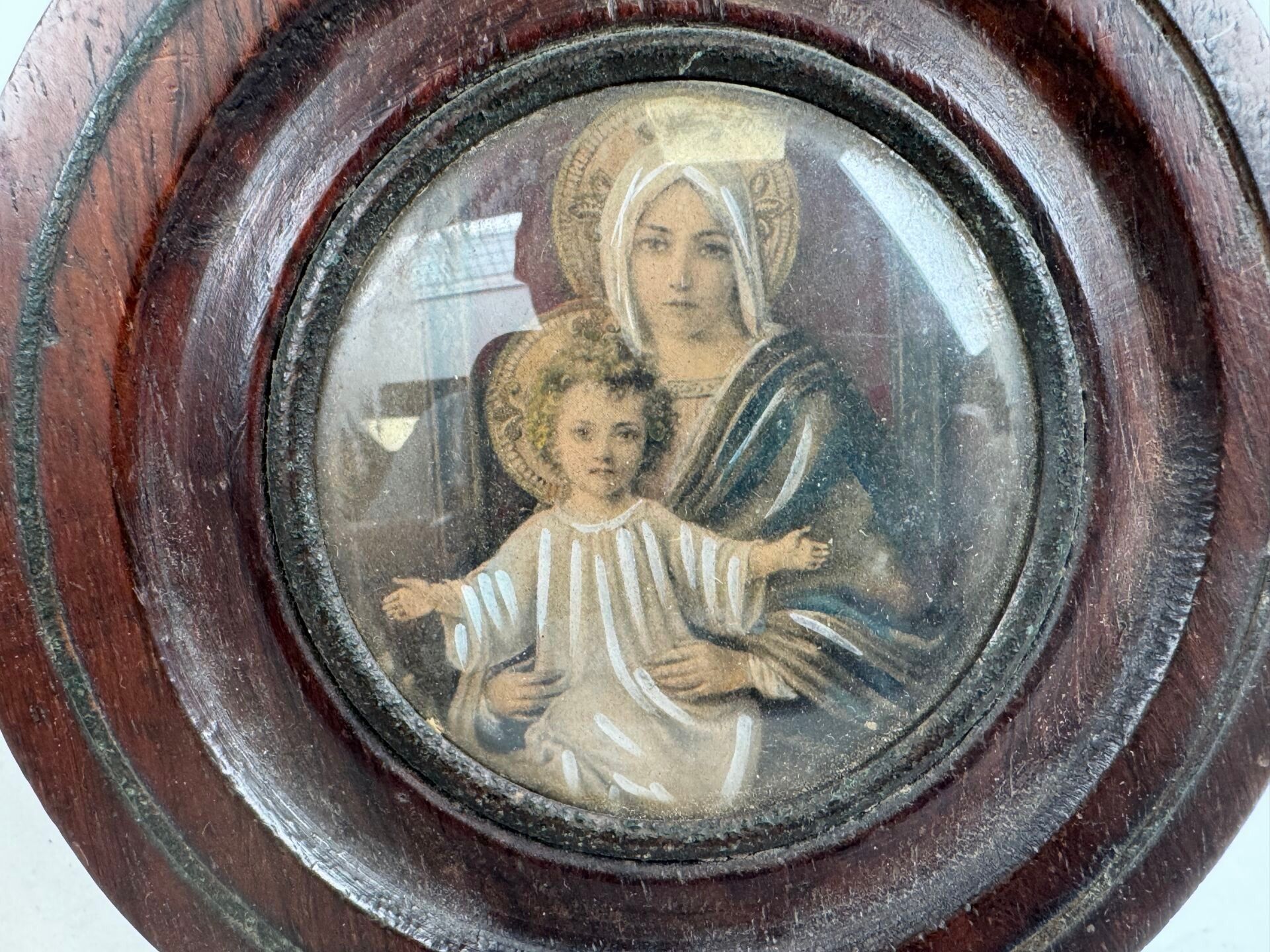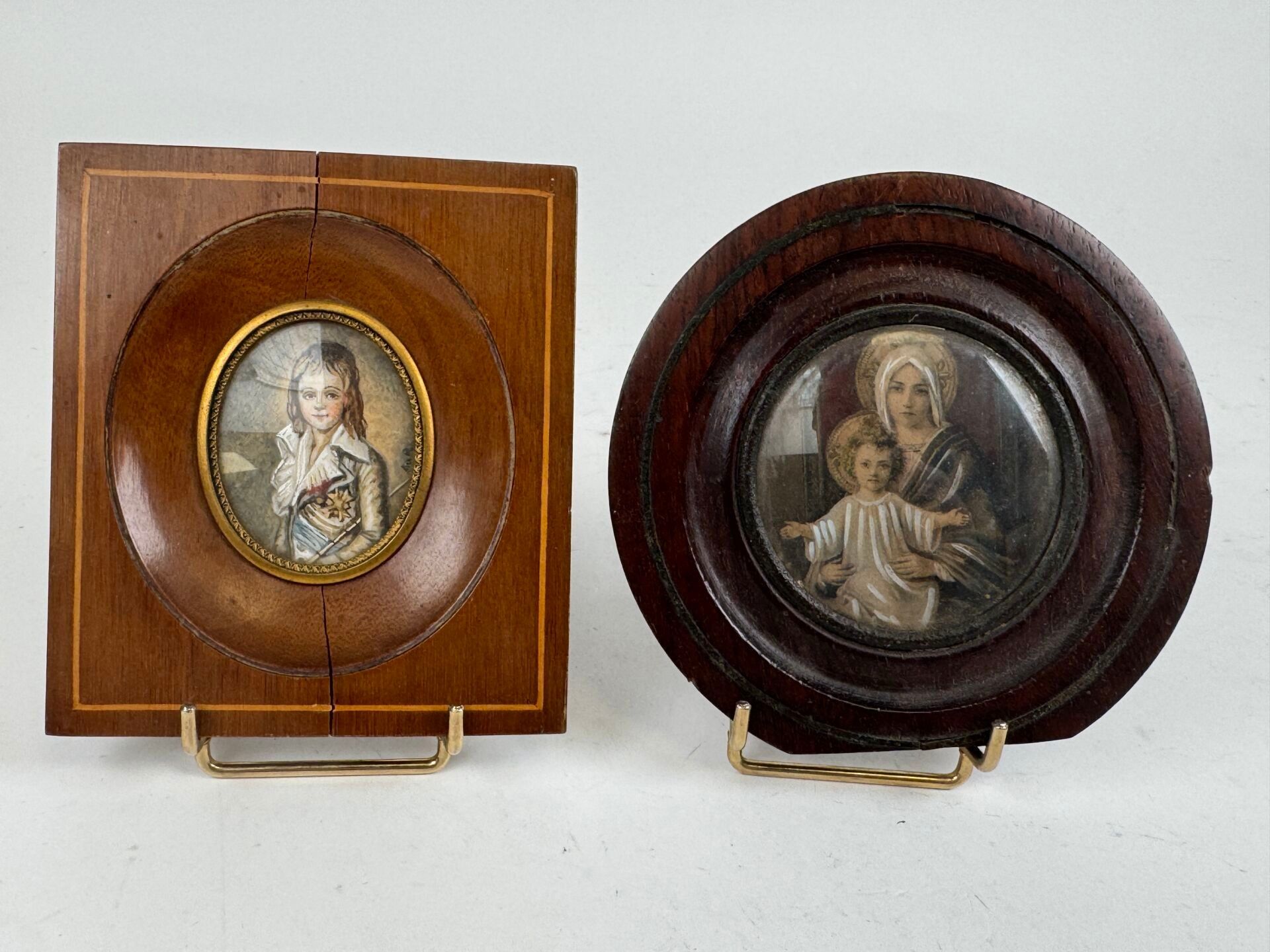 A miniature with a circular view depicting a Virgin and Child, heightened engraving.