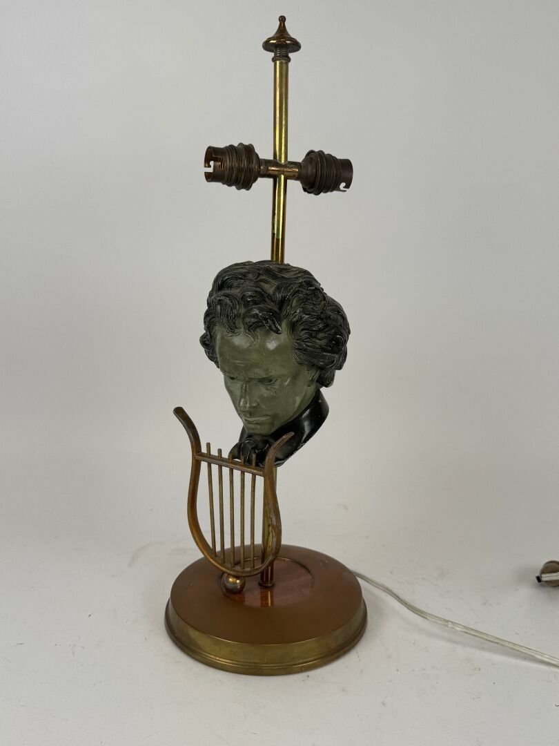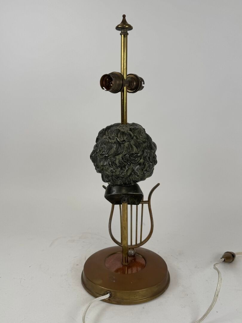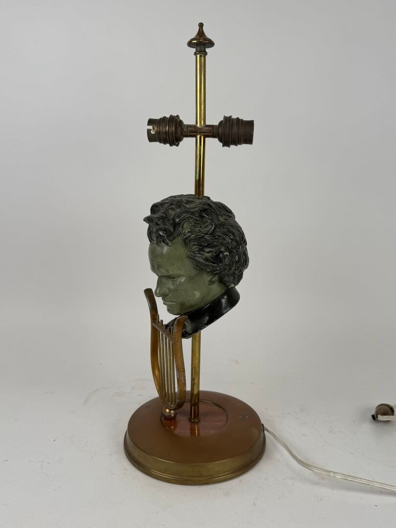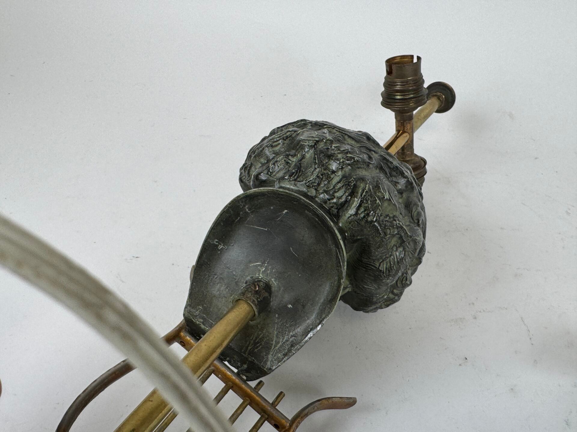 Desk lamp in gilt metal with green patina depicting a male bust.