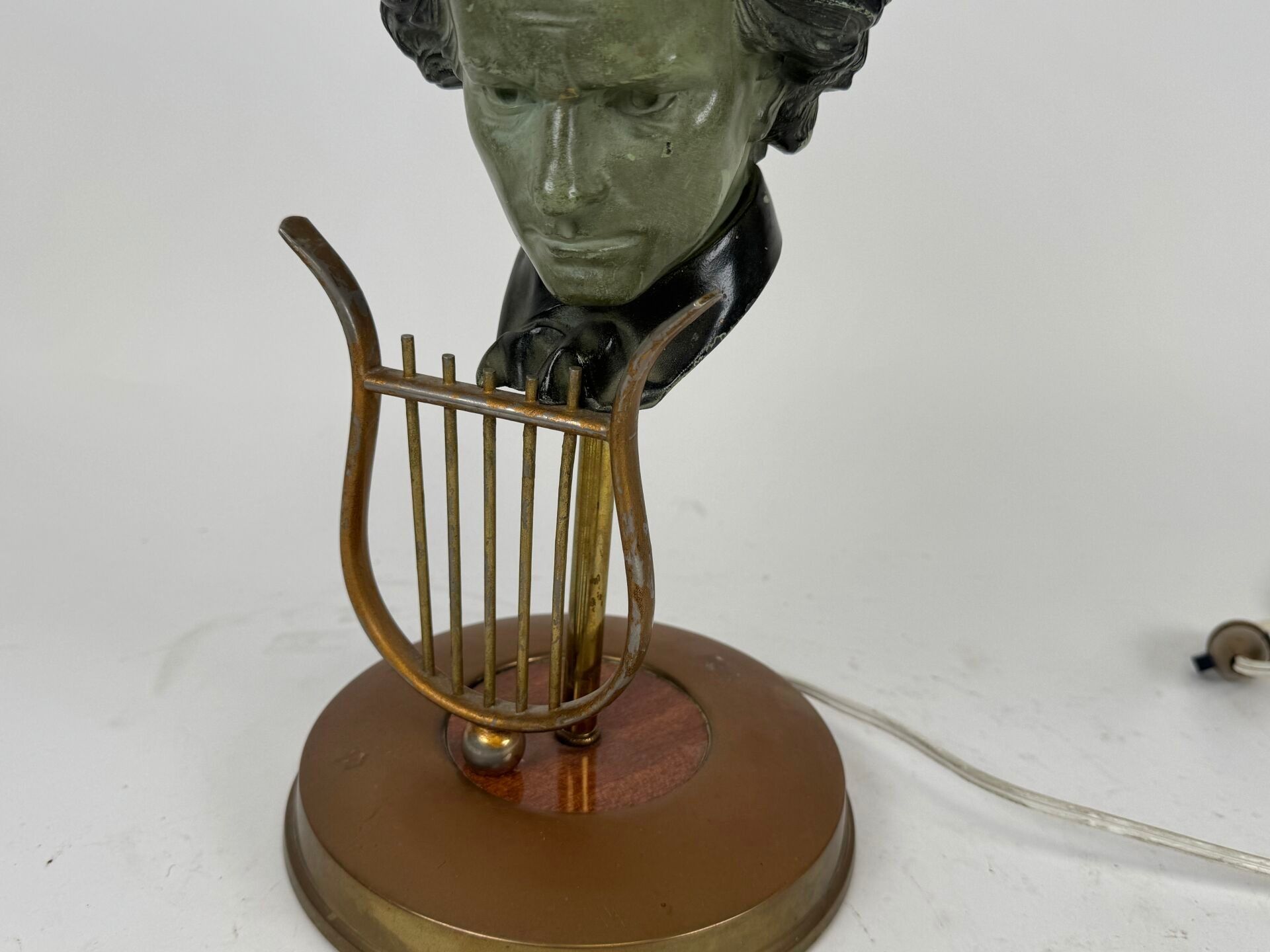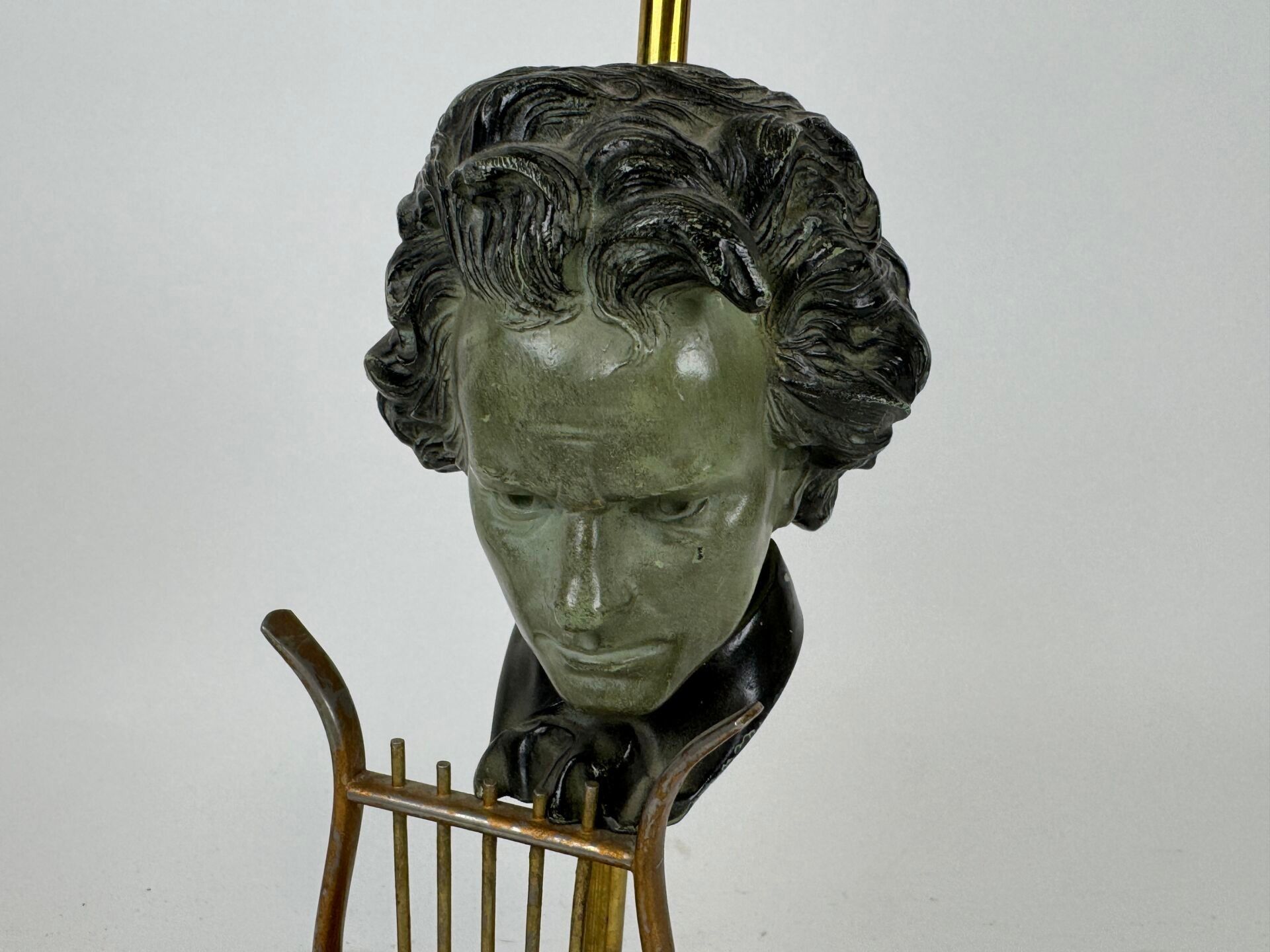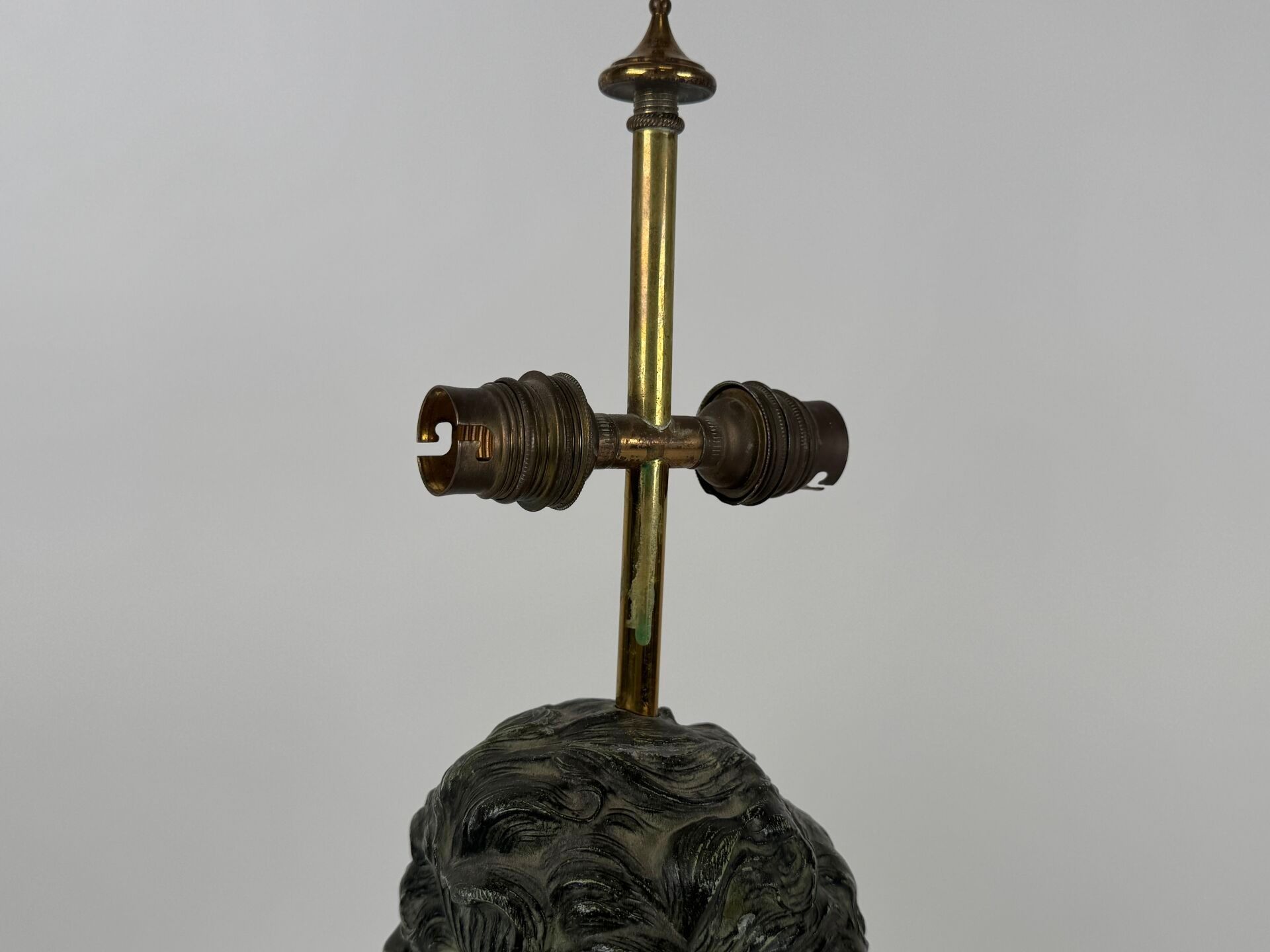 Desk lamp in gilt metal with green patina depicting a male bust.