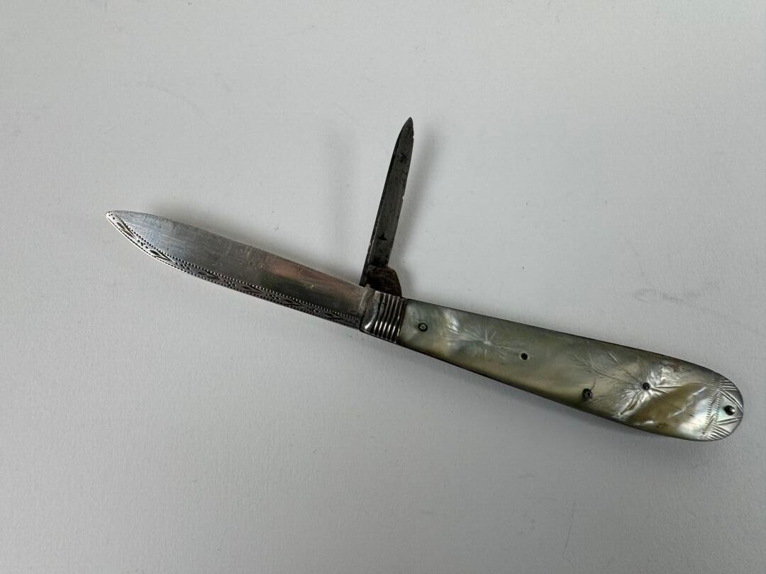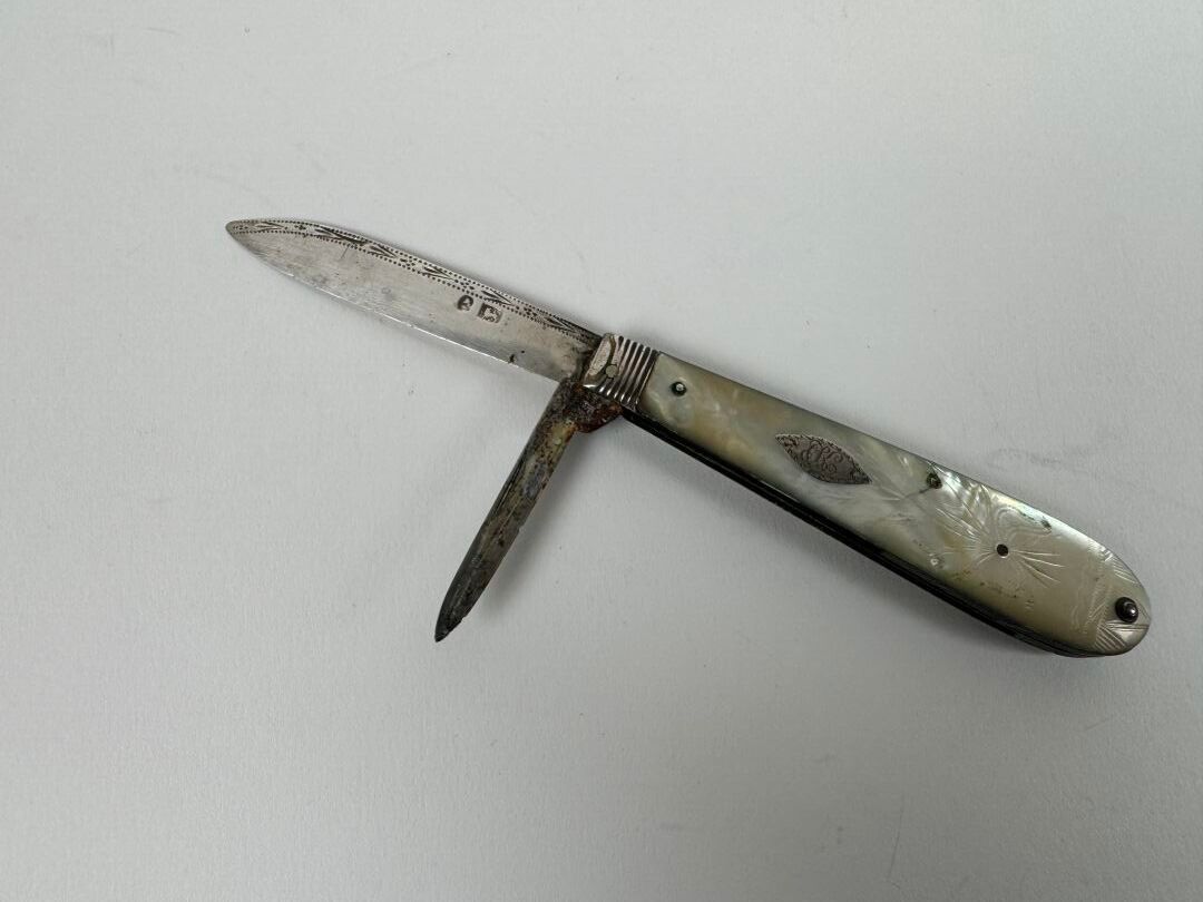 Small pocket knife with silver and metal blade, the mother-o…