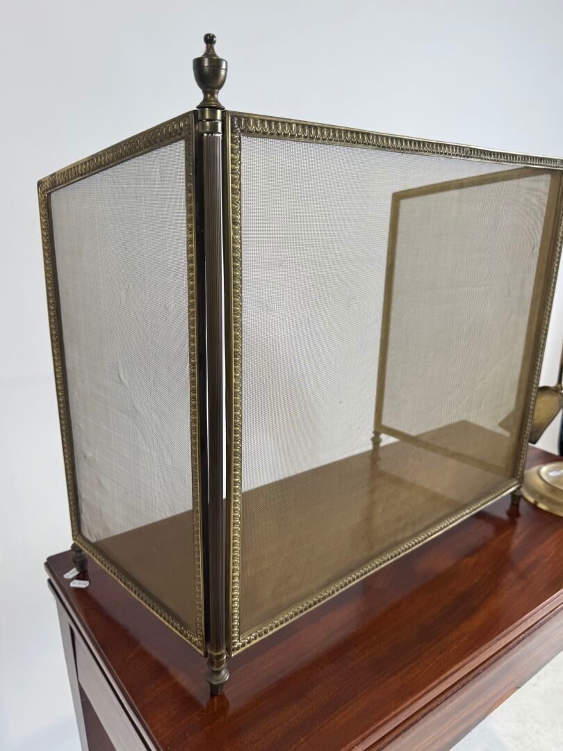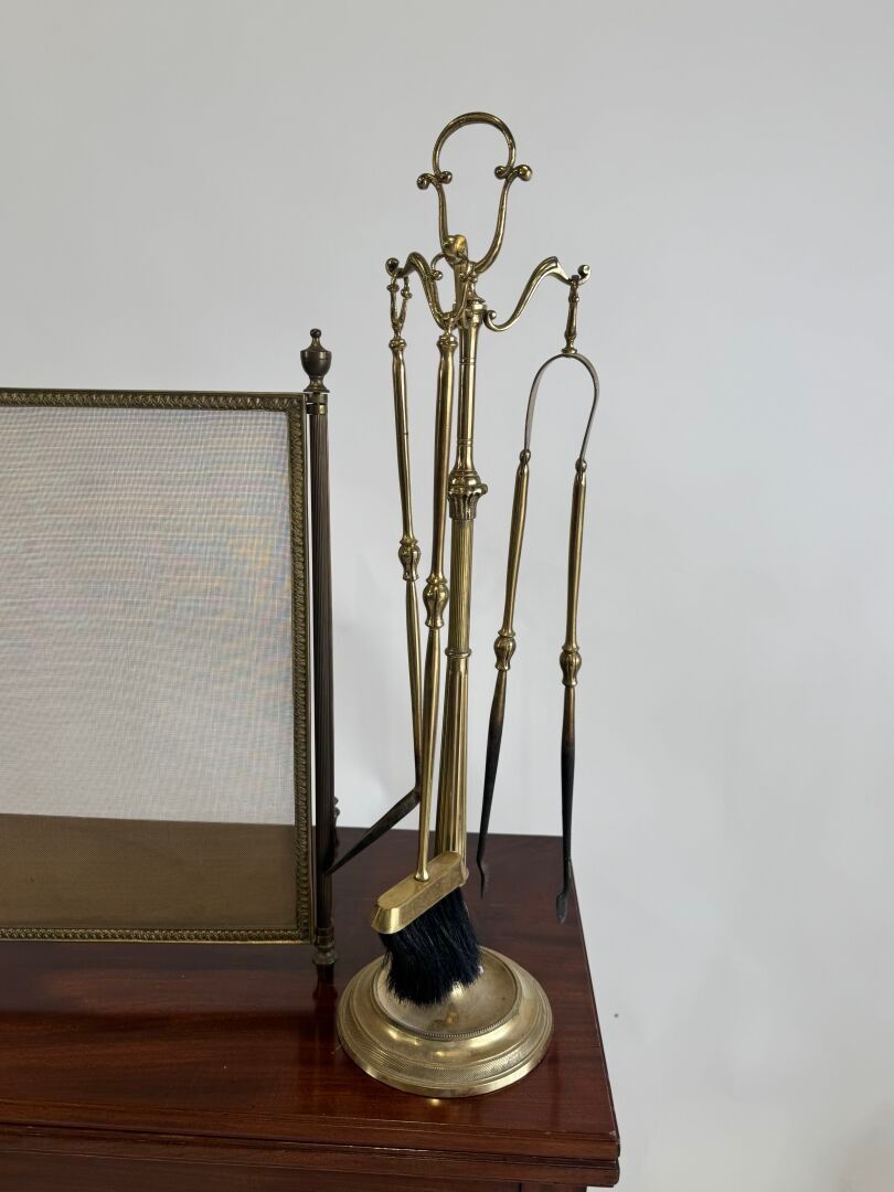 Brass fireplace set comprising a three-leaf fire screen and …