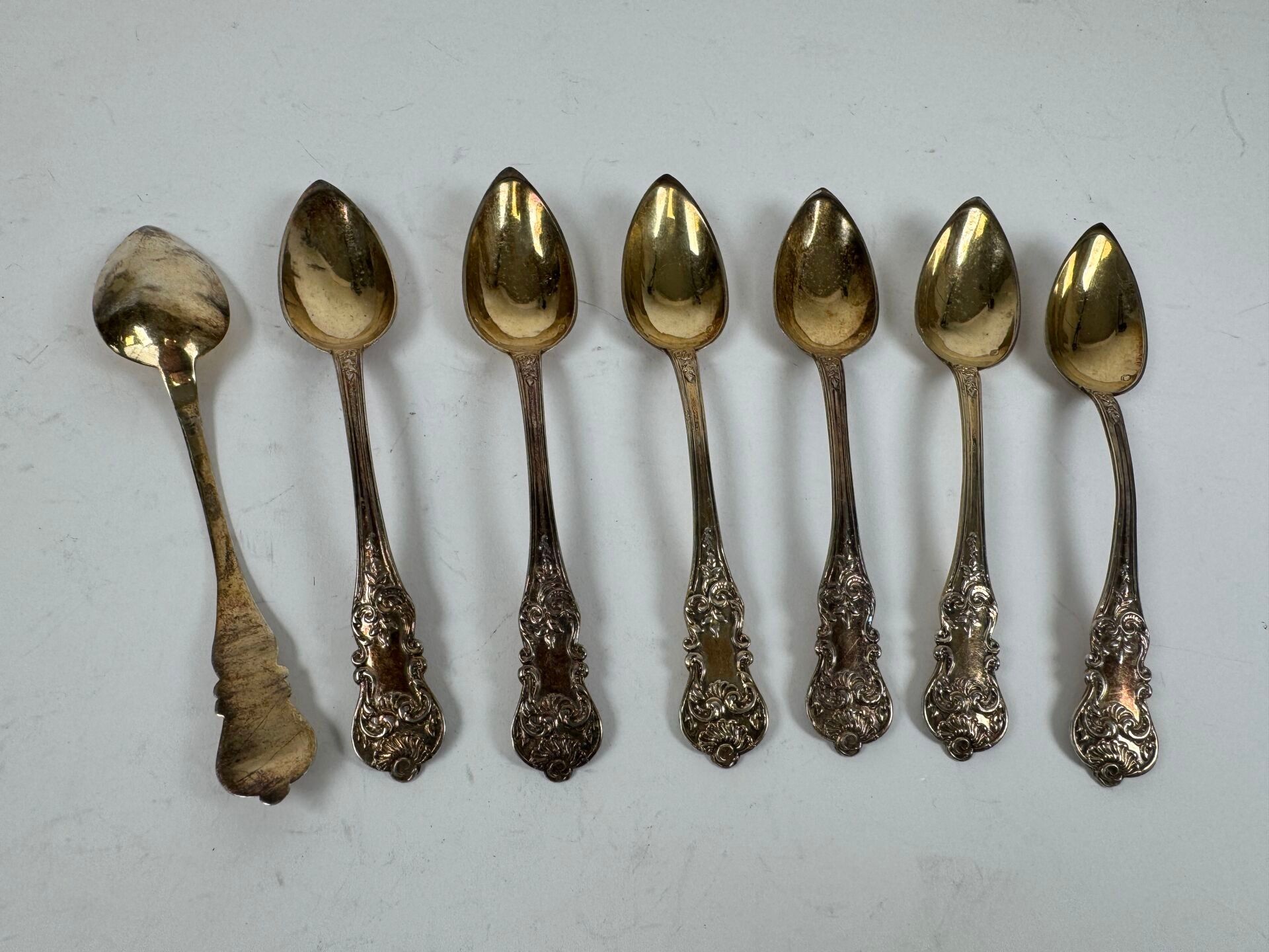 Set of 7 small spoons in 950/1000 silver, with Rocaille deco…