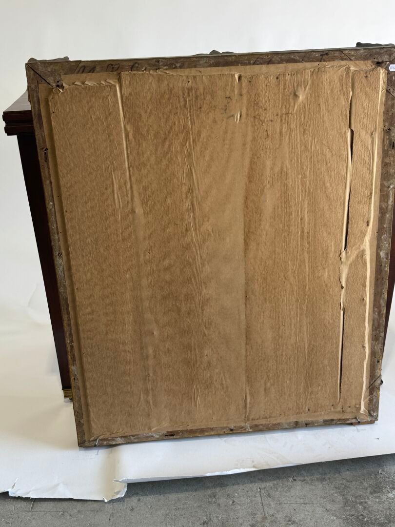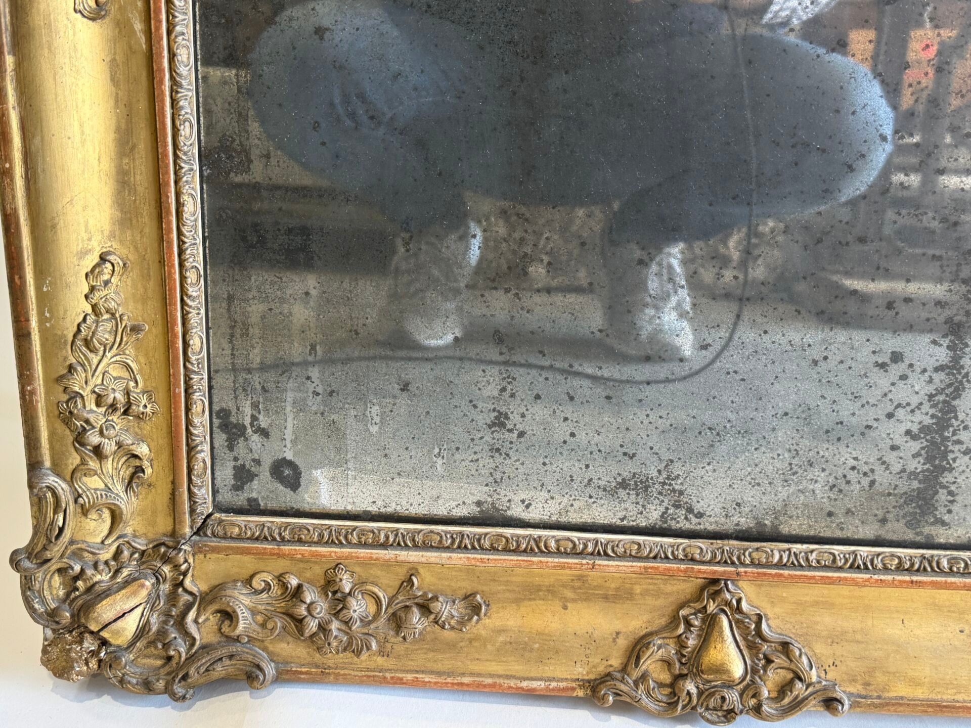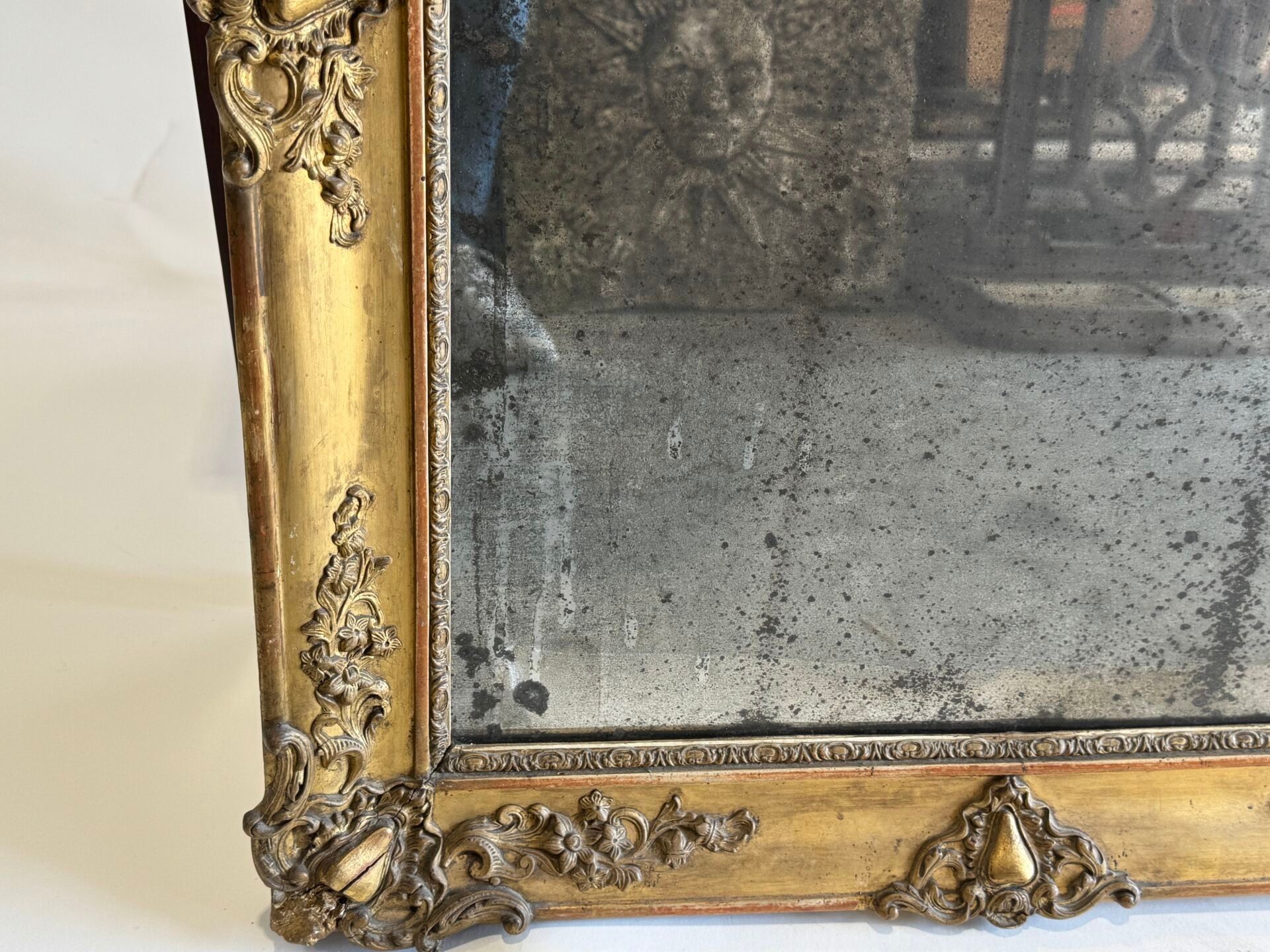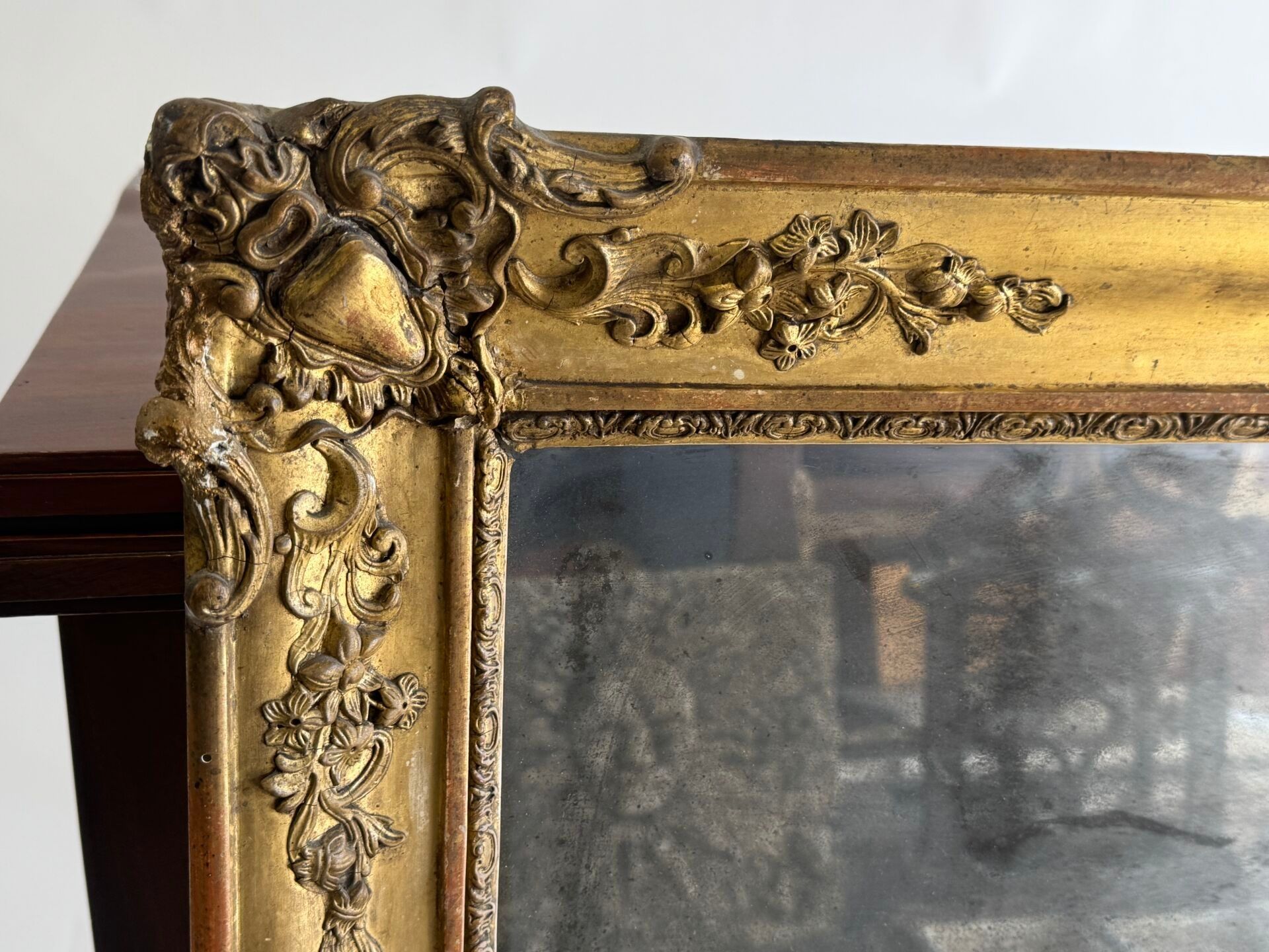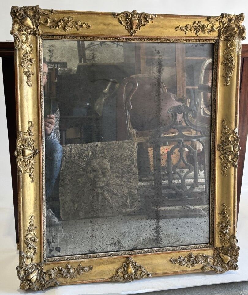 A giltwood and stuccoed rectangular mirror decorated with fo…