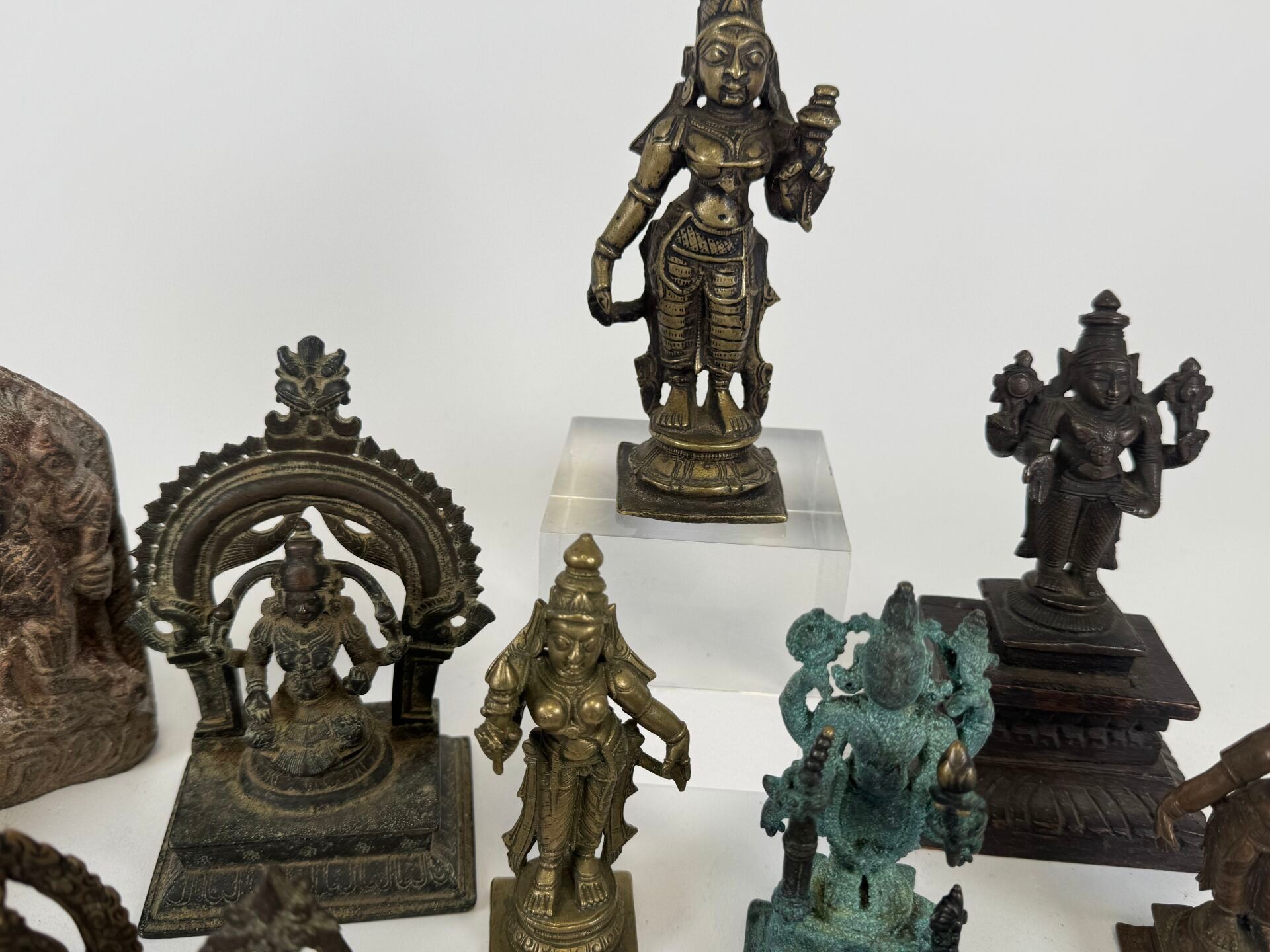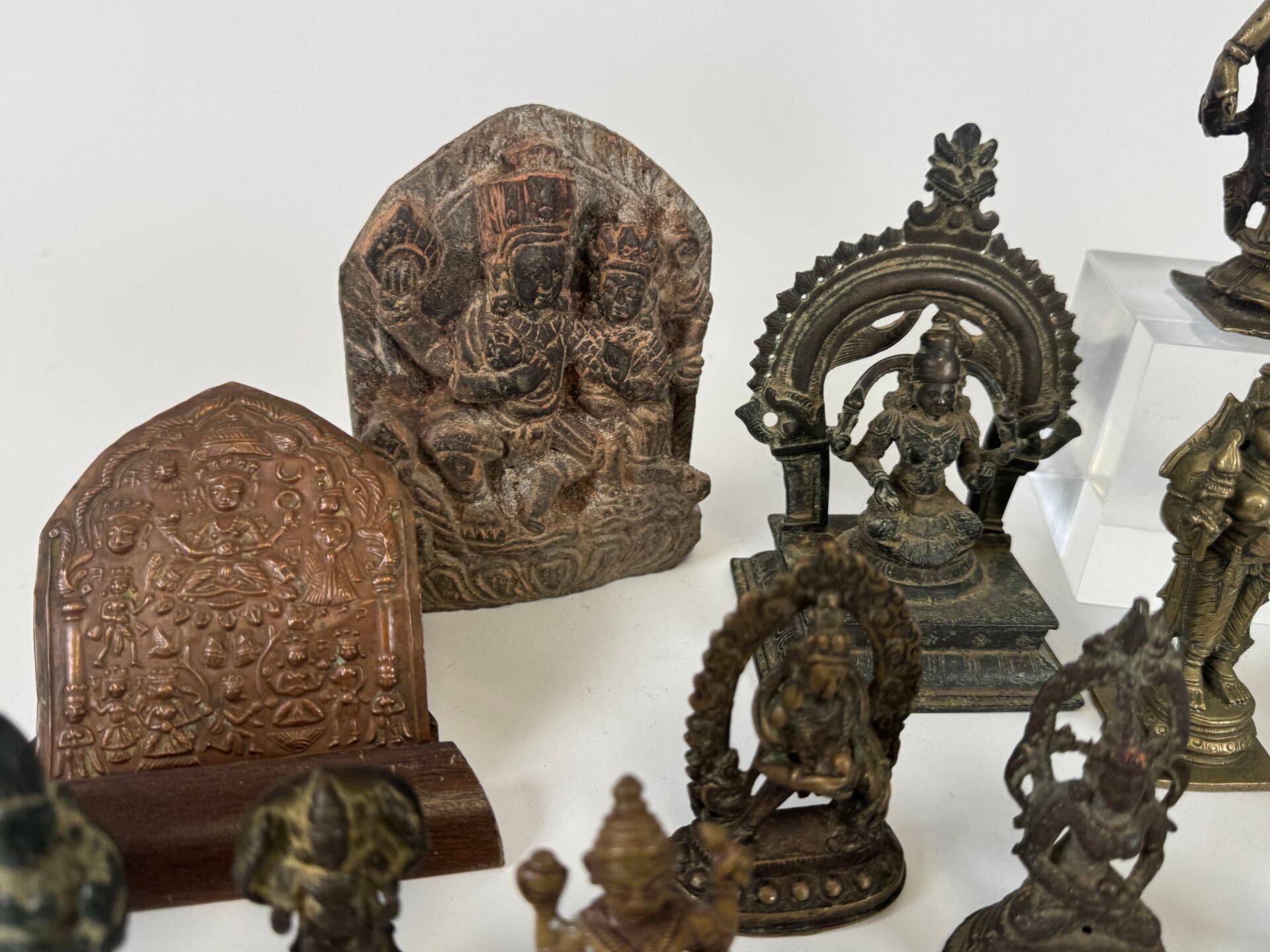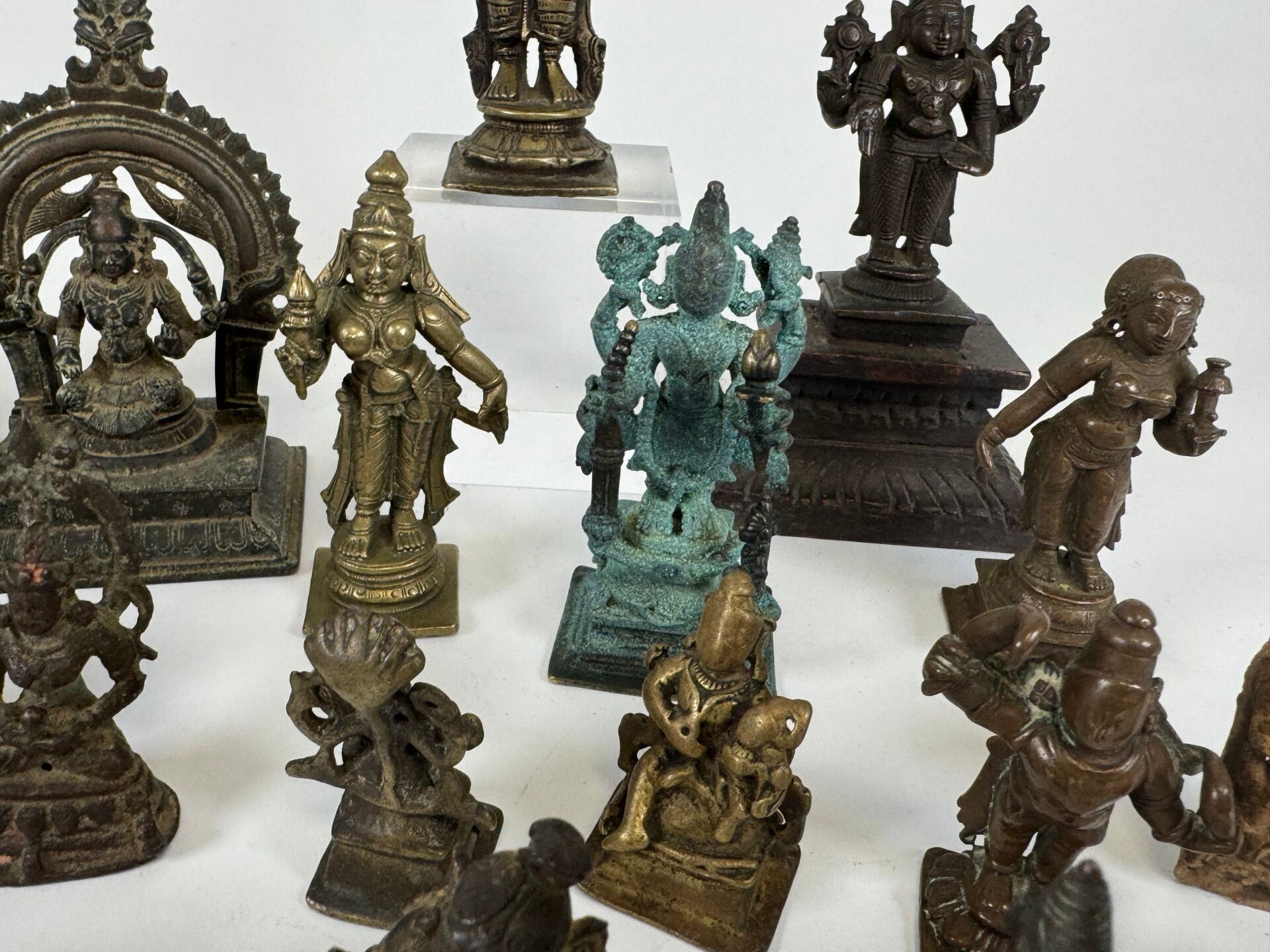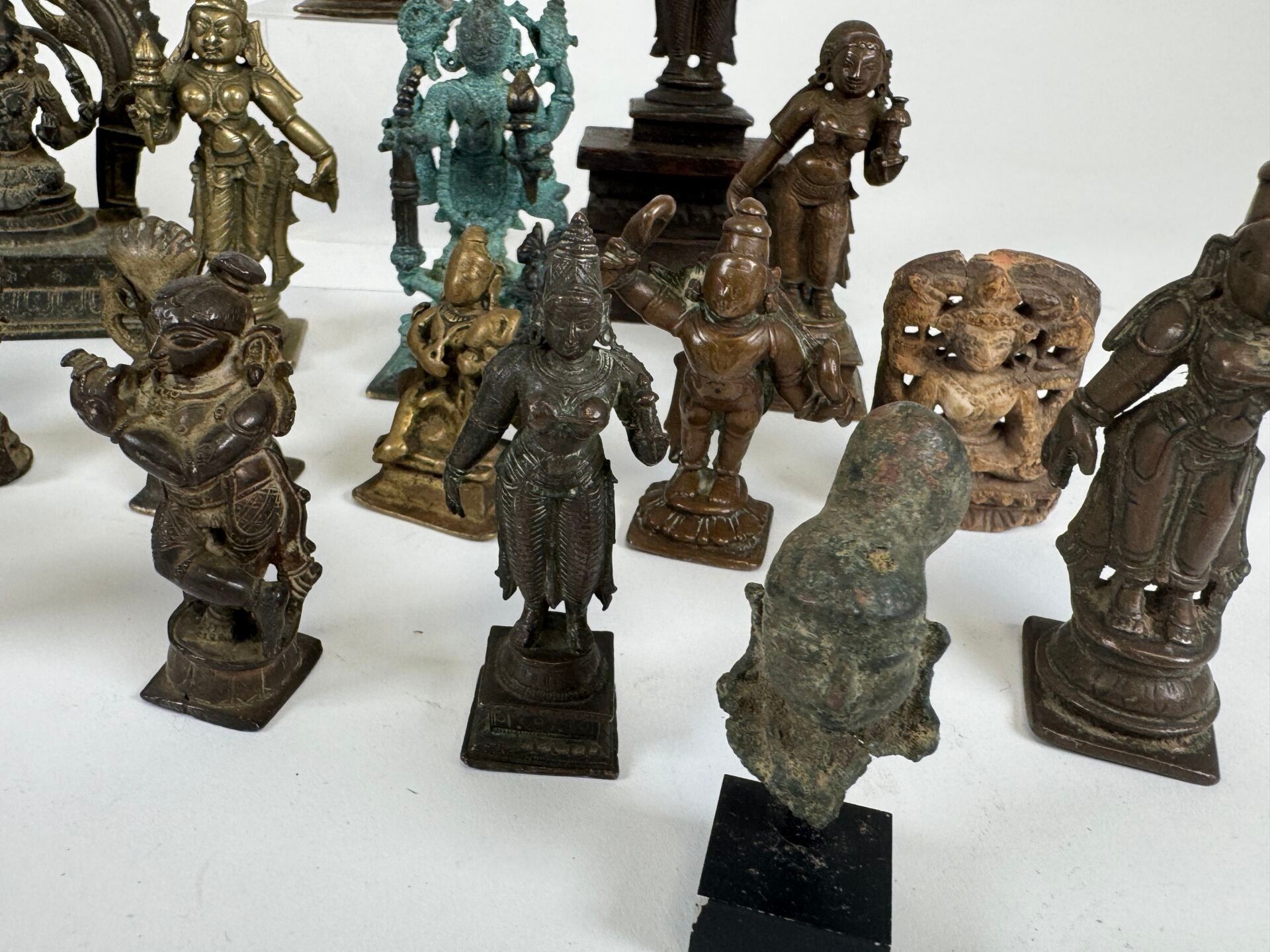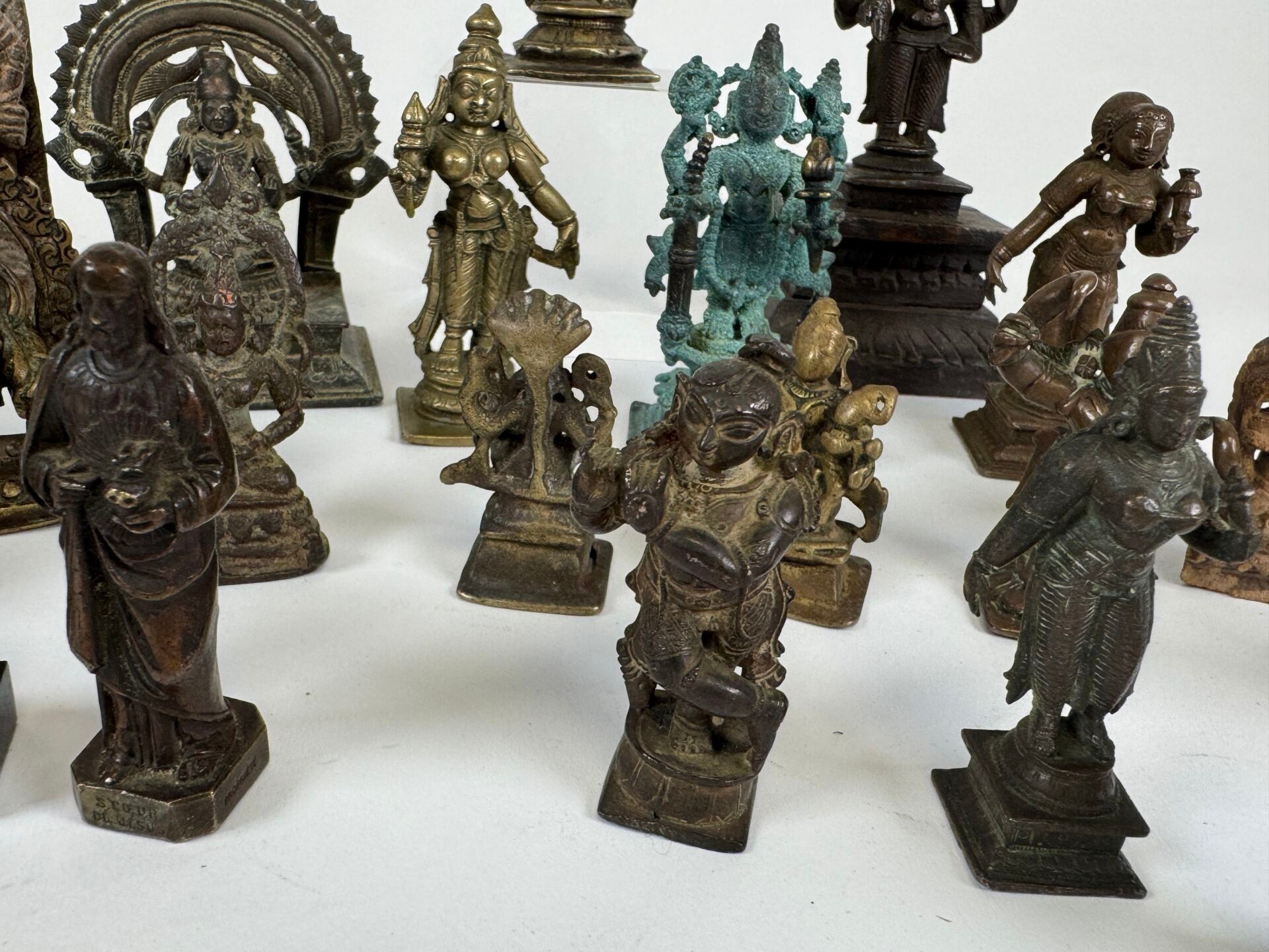 Collection of 26 statuettes or decorative travel items, various materials including bronze, copper alloy, etc...
