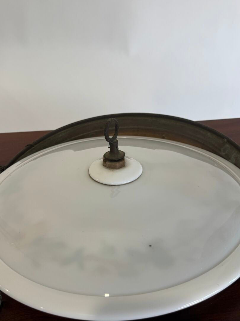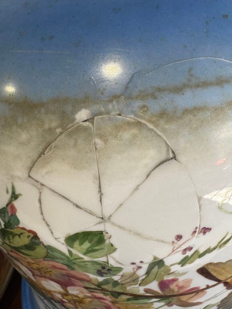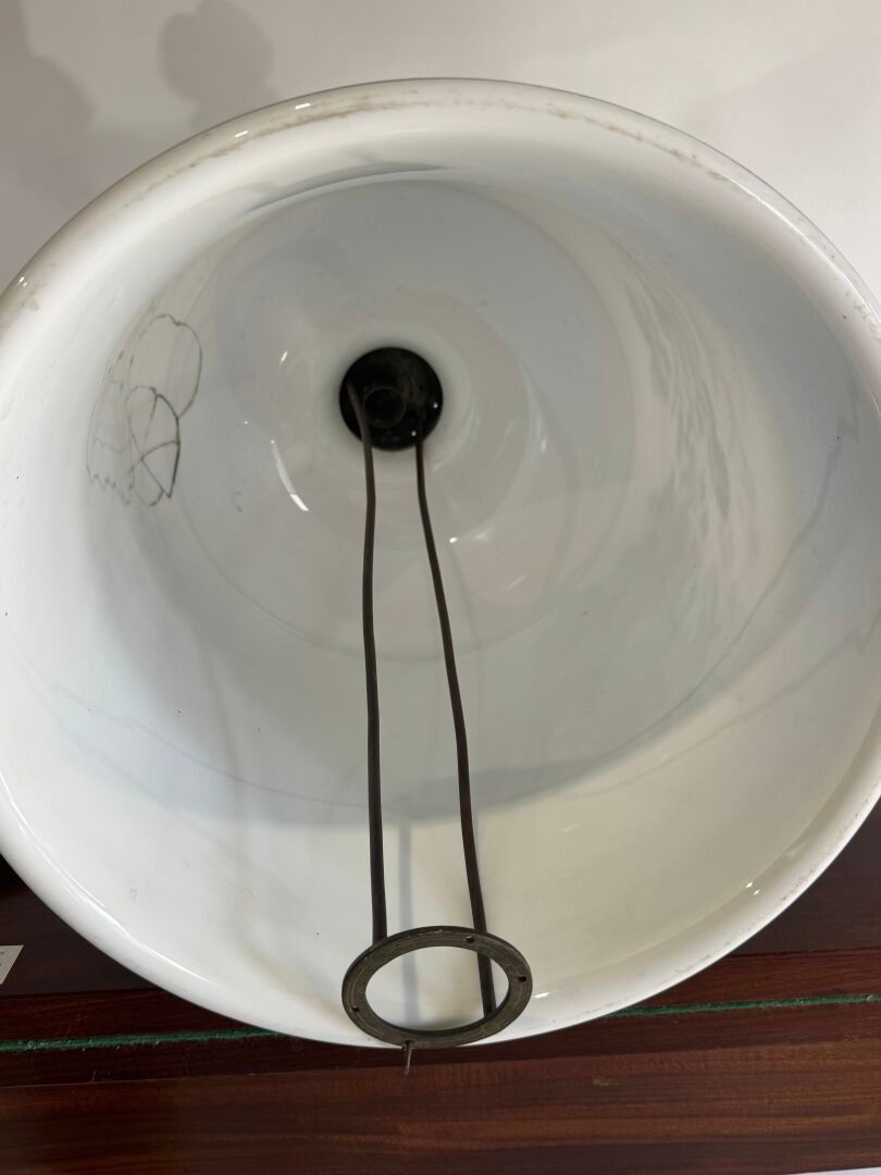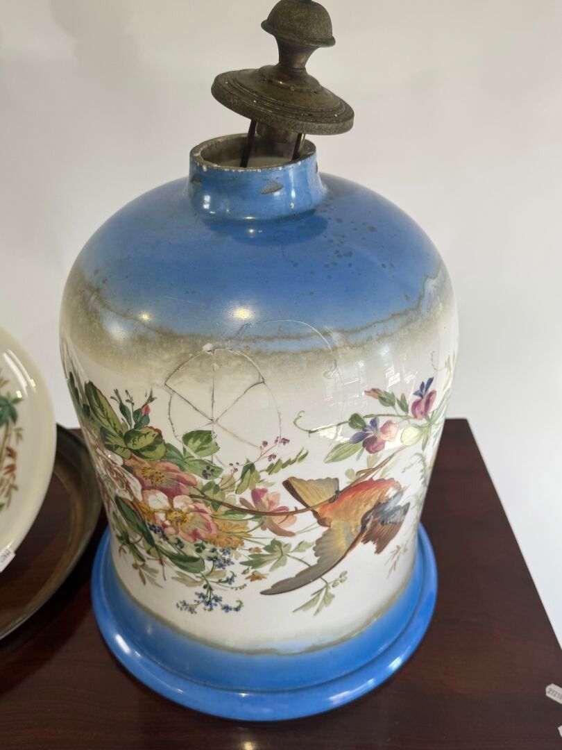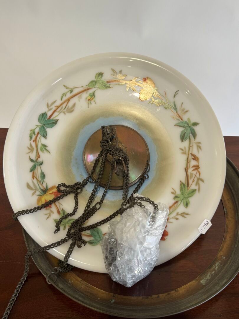 A large opaline glass pendant decorated with flowers and bir…