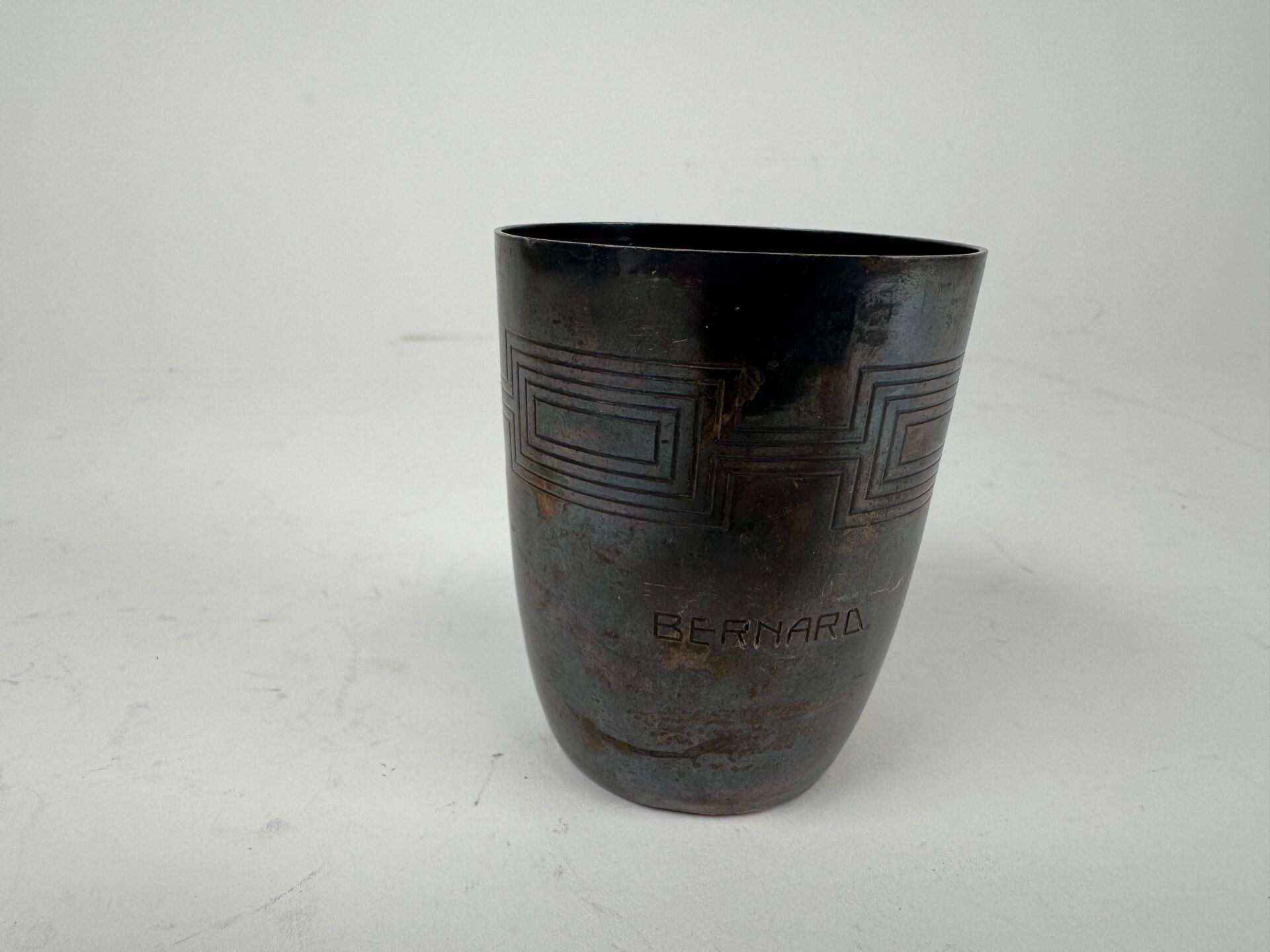 Pensioner's tumbler in 950/1000 silver, with Greek frieze decoration, marked Bernard.