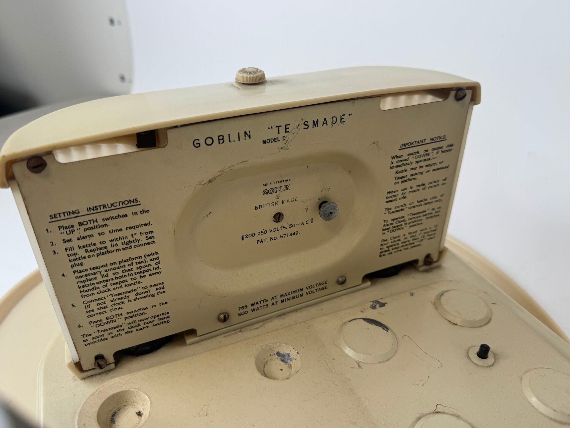 The machine starts at the time set for tea.