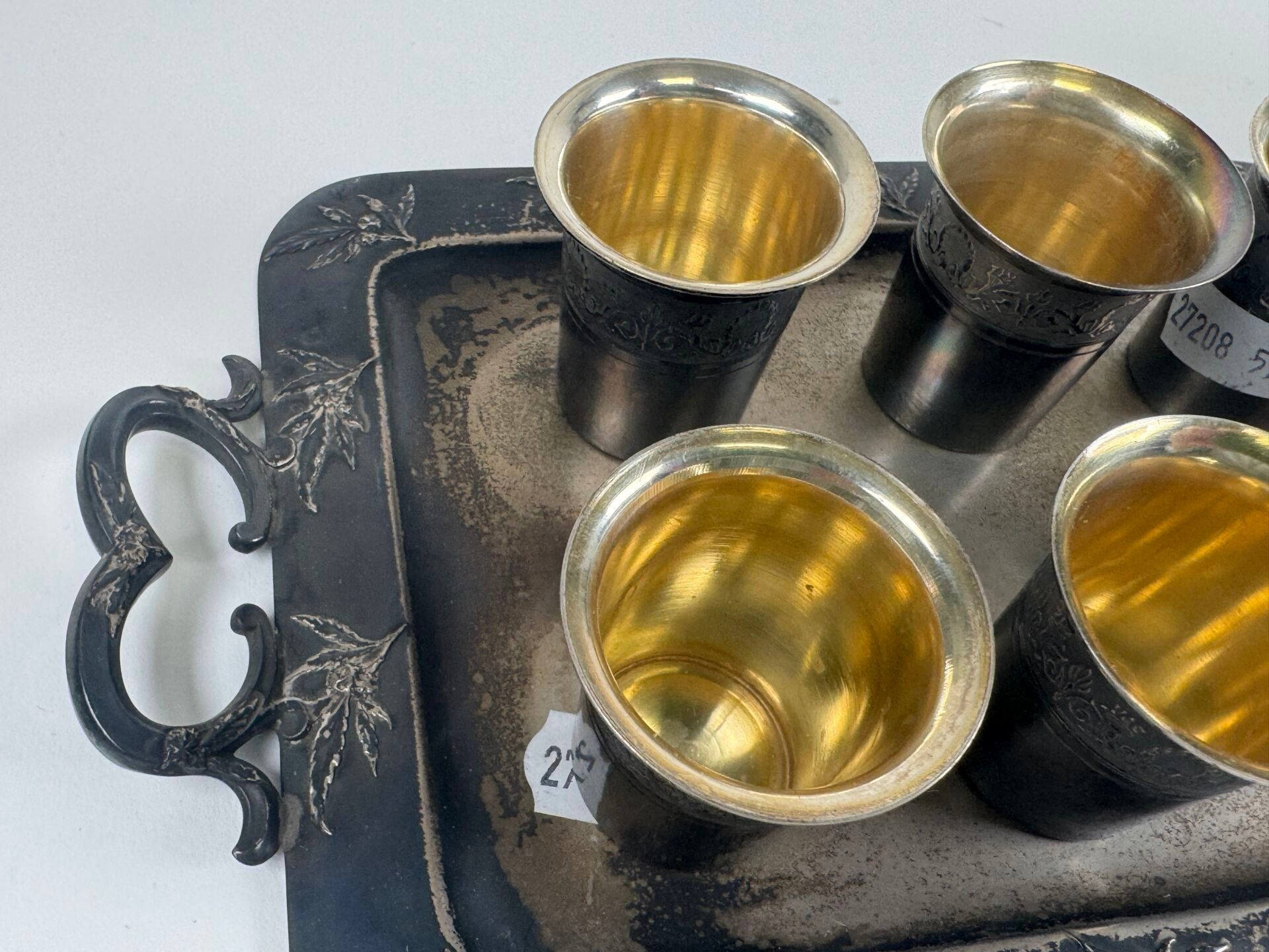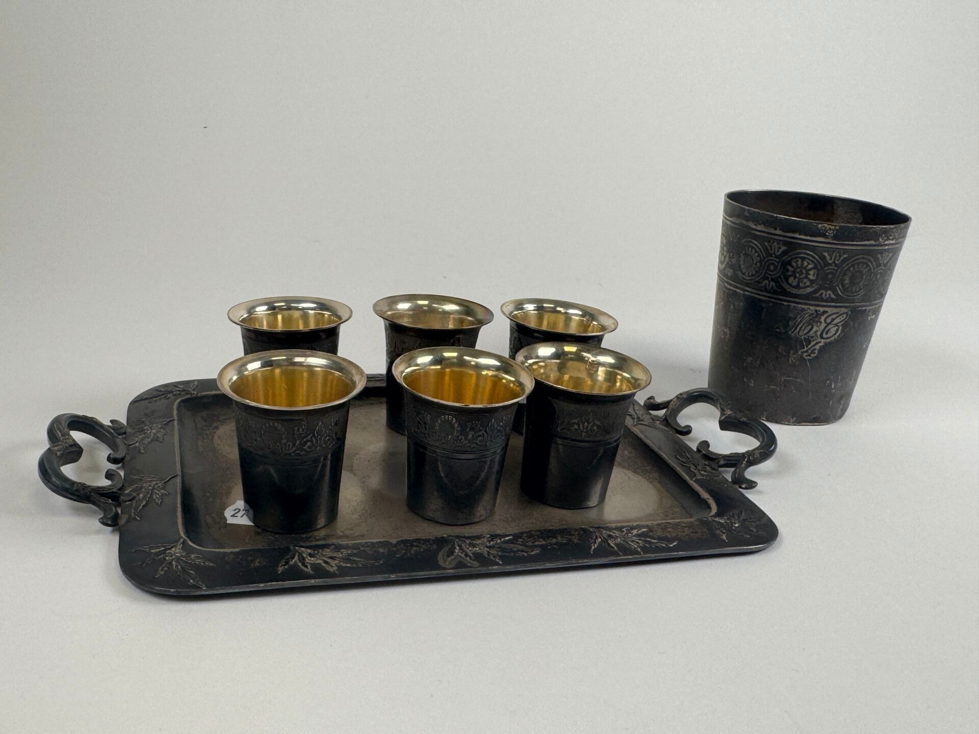 A 950/1000 silver liqueur service with foliate decoration comprising :