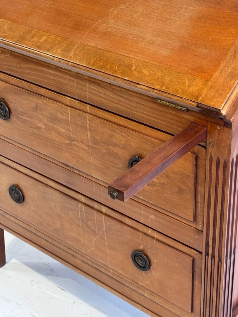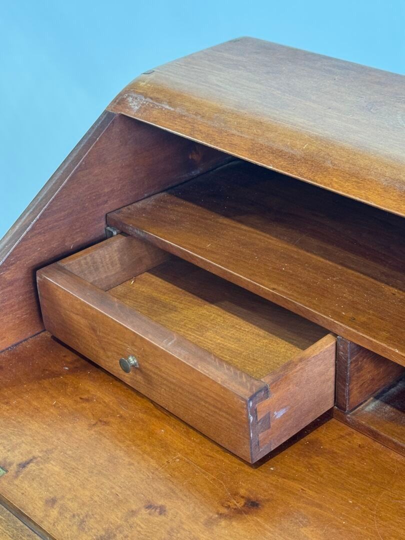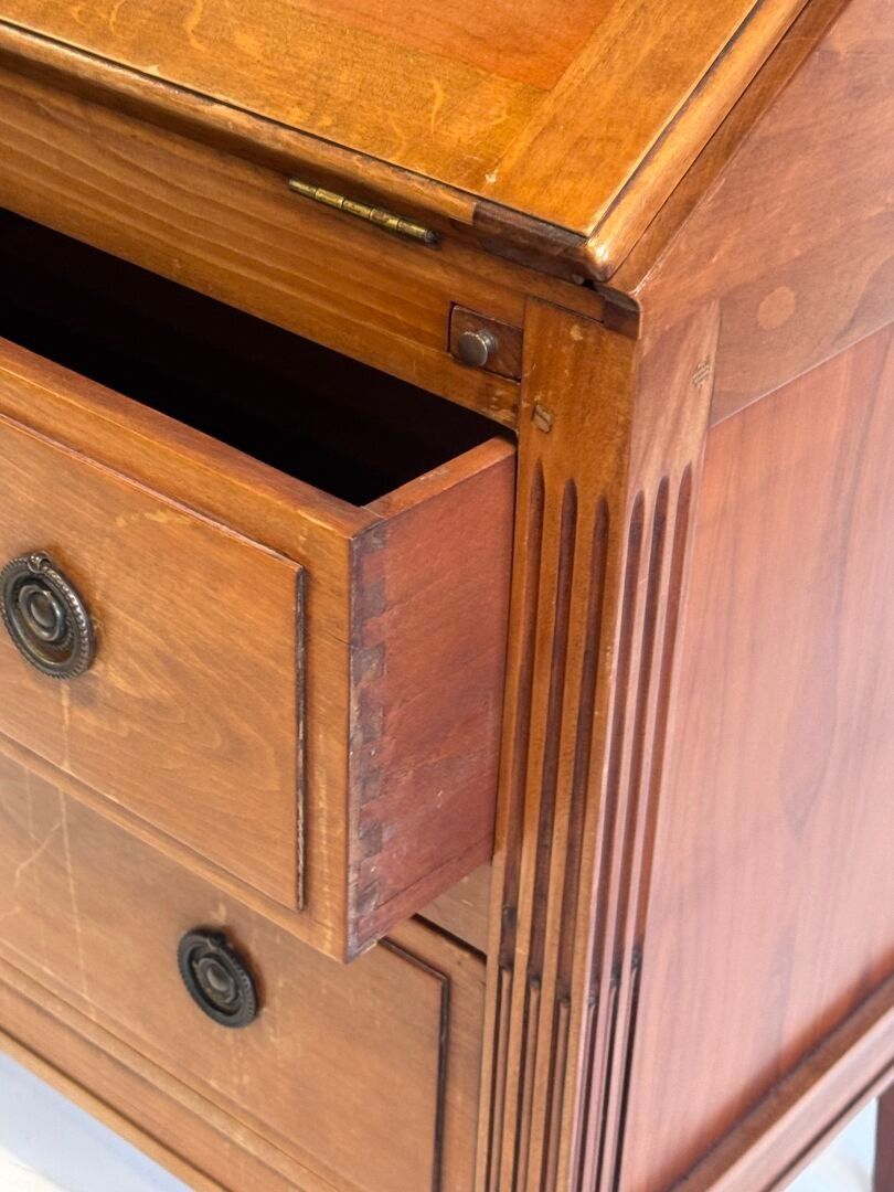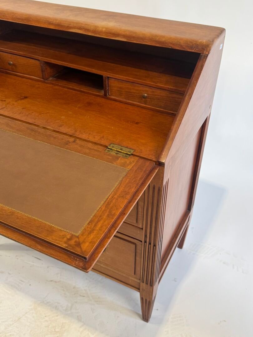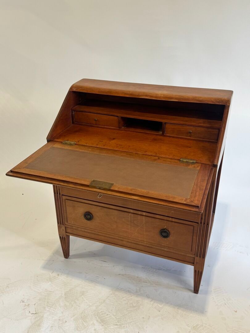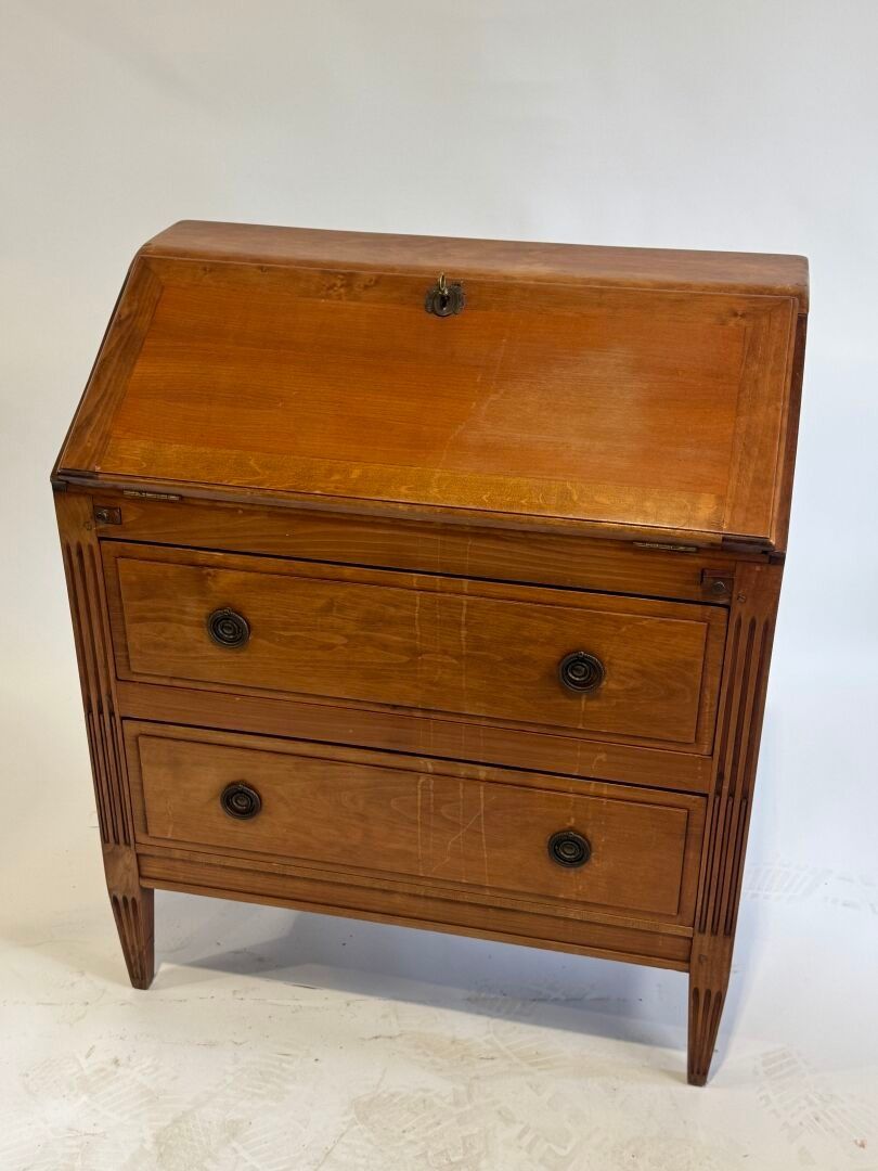 Moulded cherrywood sloping desk opening with a flap and two drawers in the lower section, the interior forming a writing desk revealing two drawers and niches.