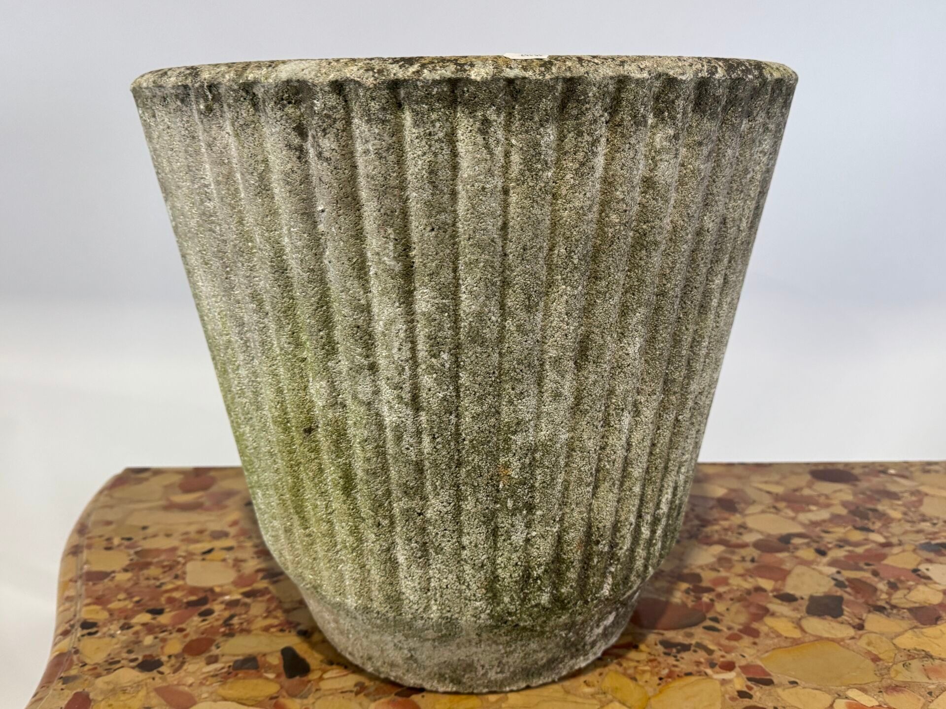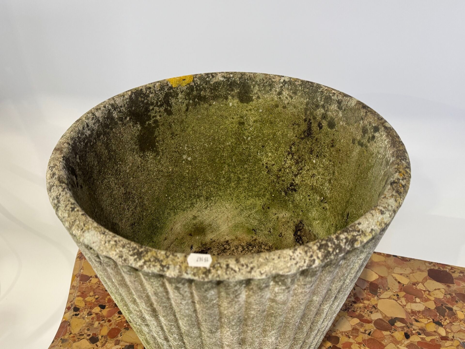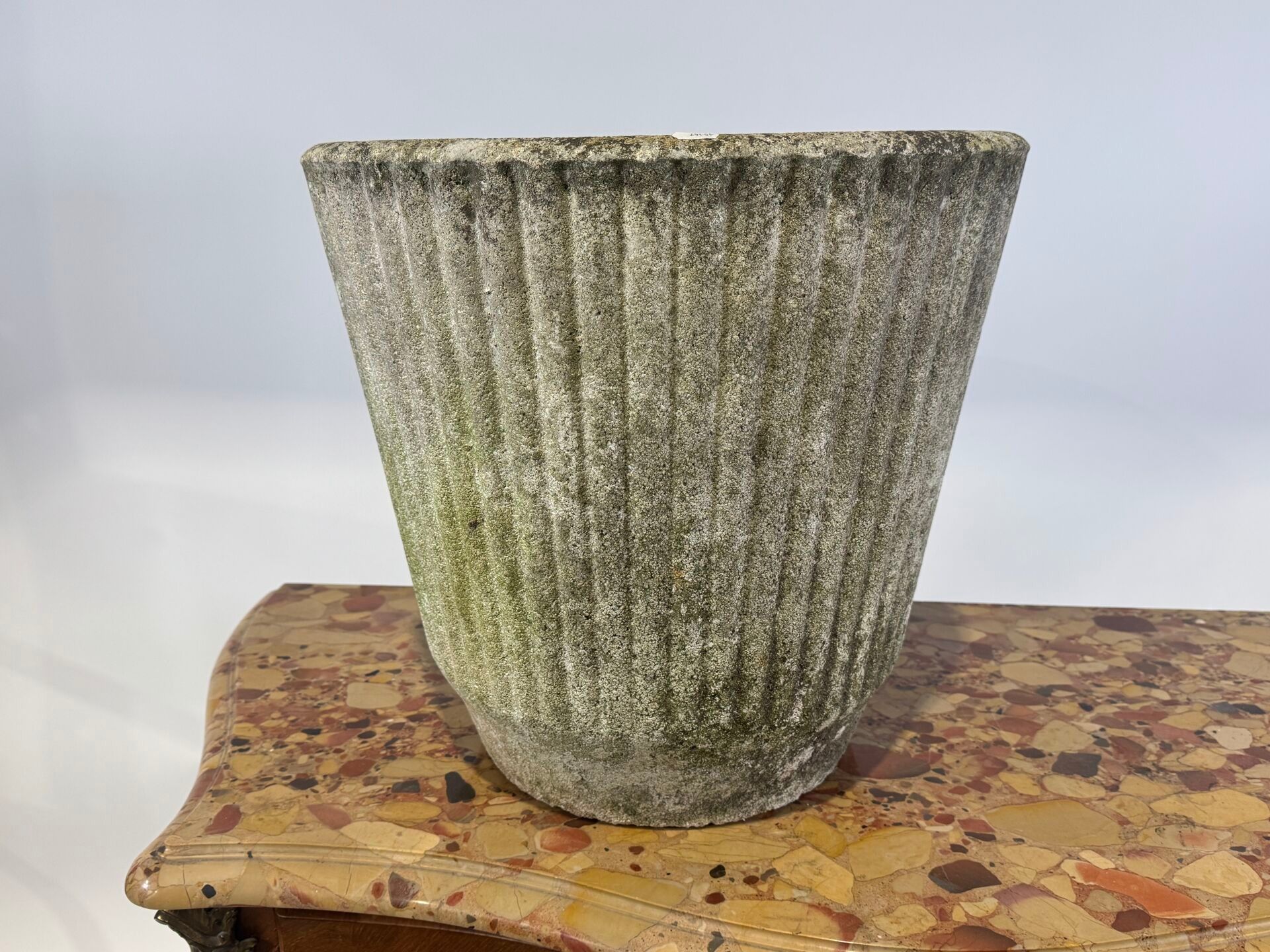 Large garden planter in reconstituted stone with fluted decoration. Pierced.