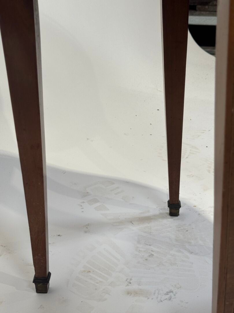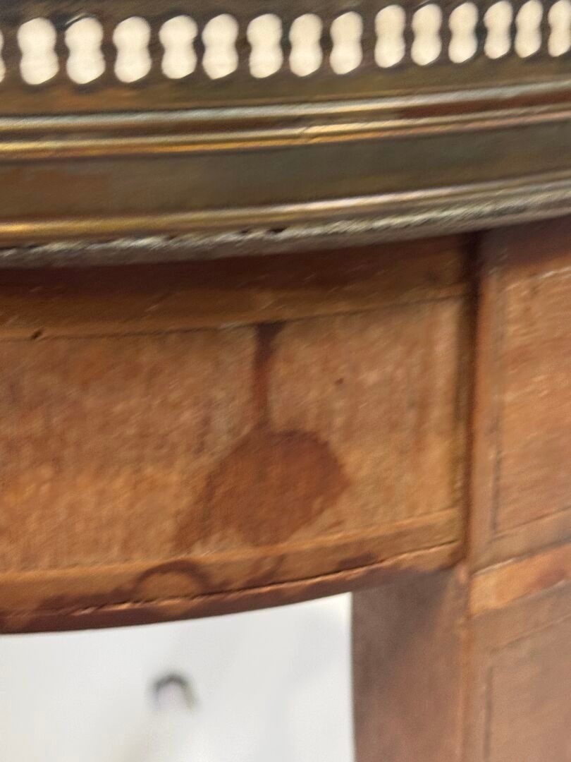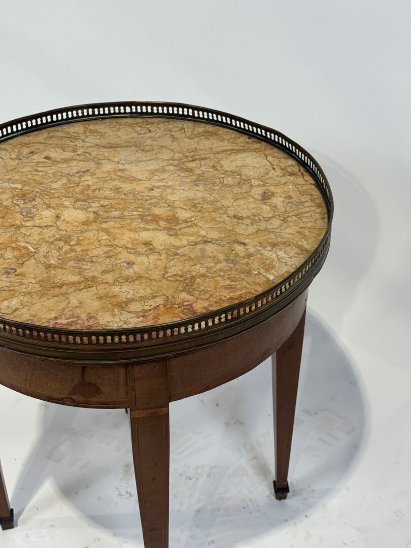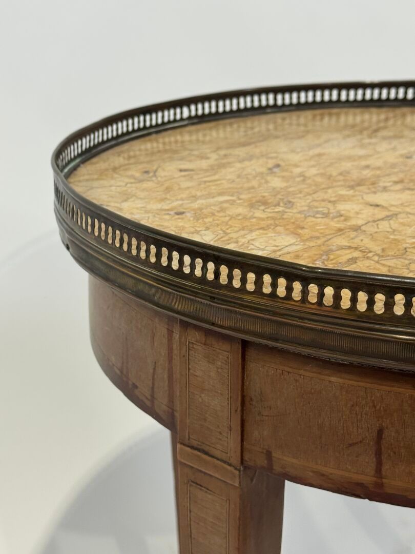 A small veneered "bouillotte" pedestal table with a yellow m…