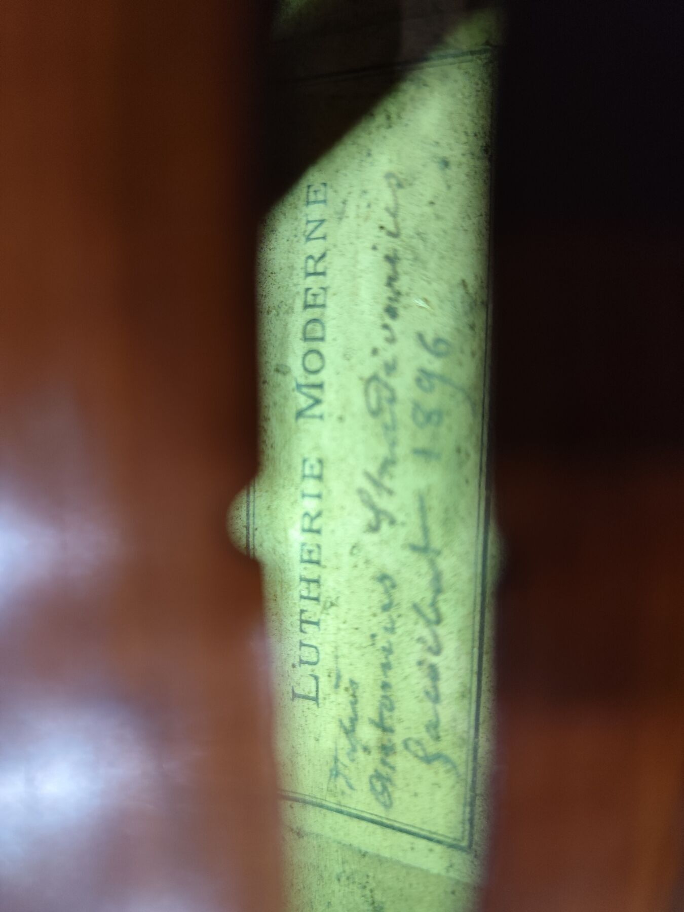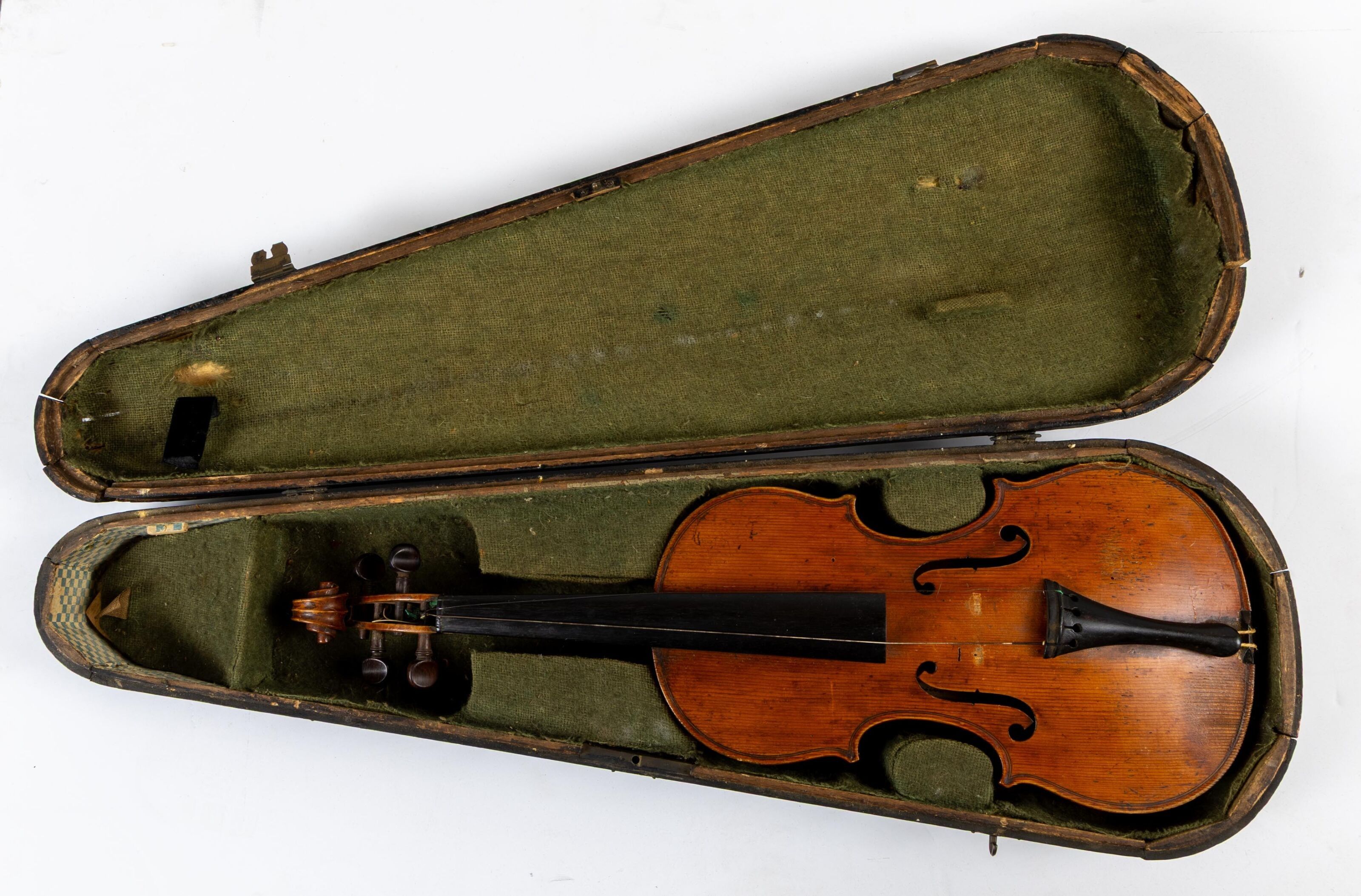 Violin, presented in a case. Bears a modern violin maker's label, handwritten after Stradivarius, 1896. H_36 cm (top) H_60 cm total