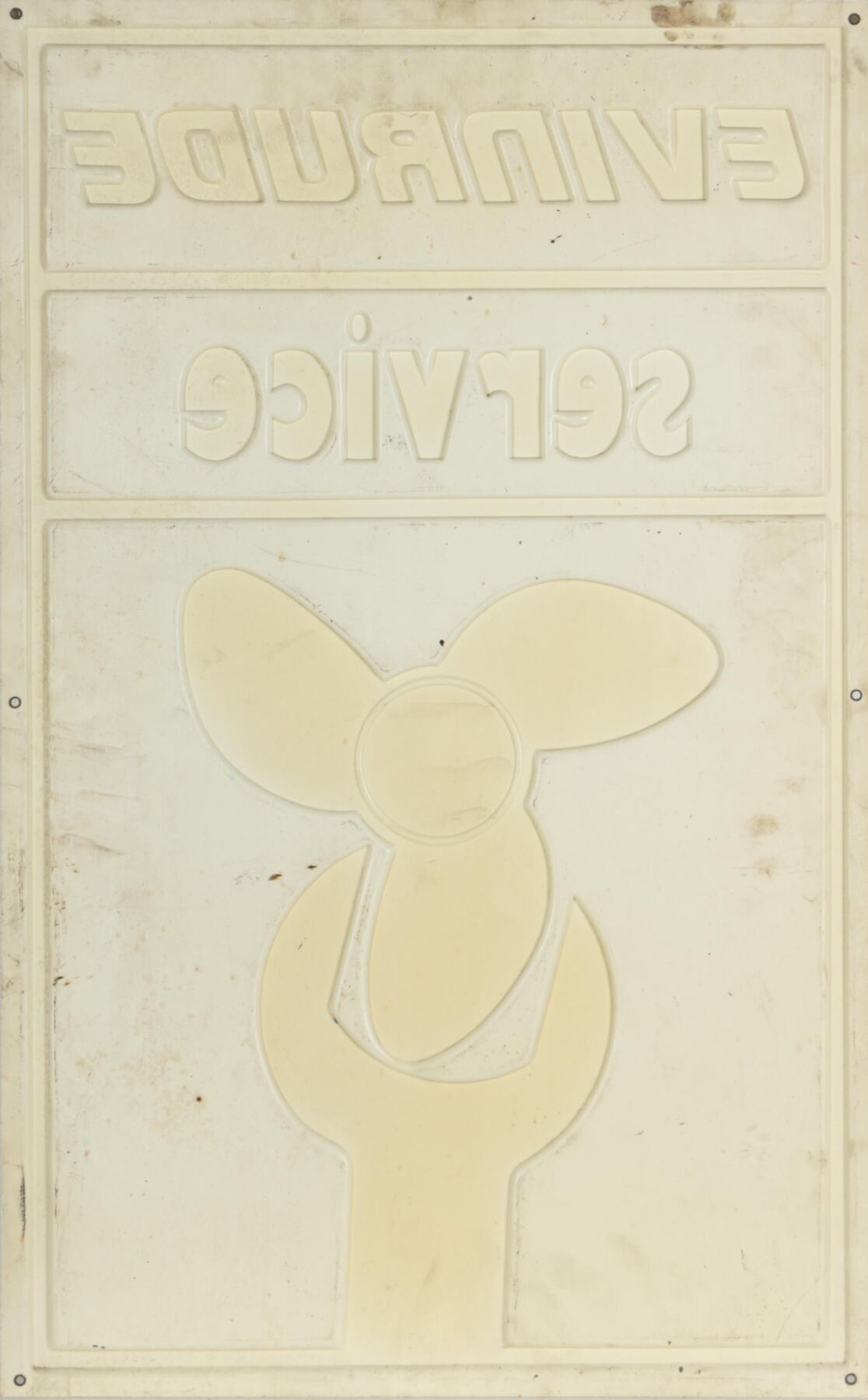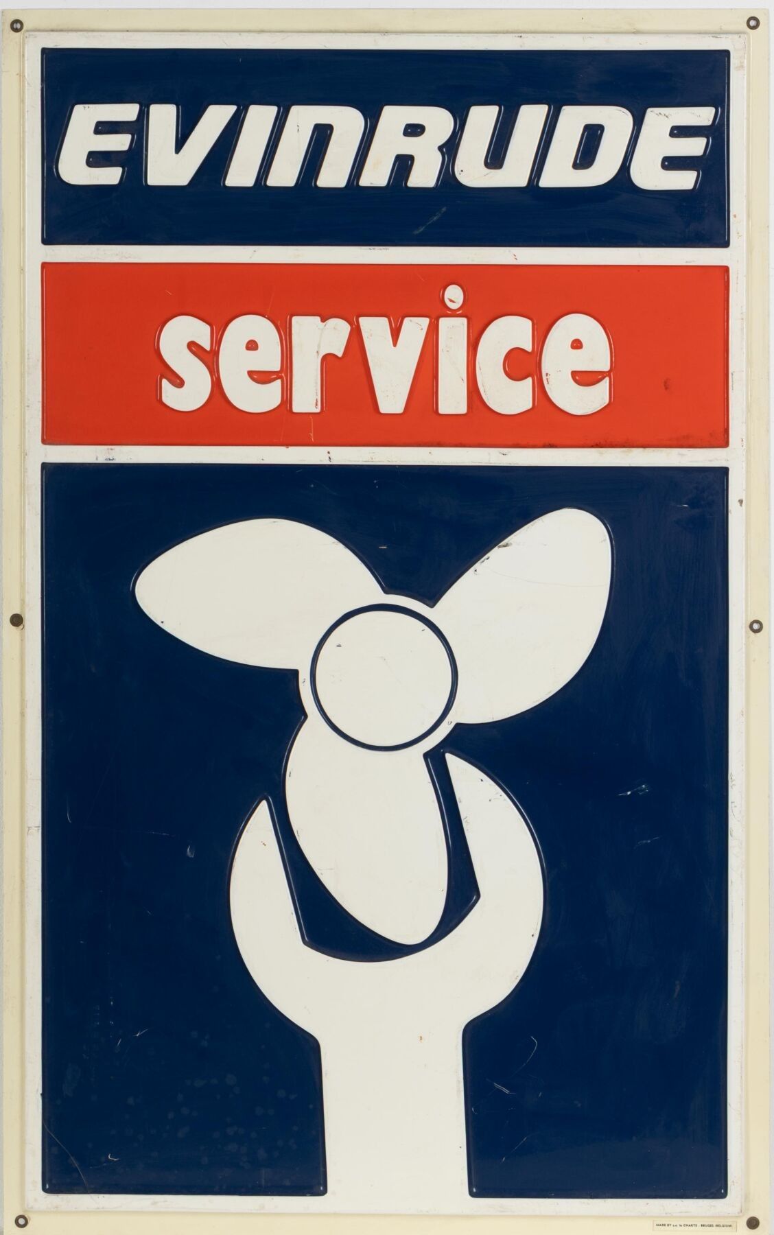 EVINRUDE. Advertising plate in moulded plastic.