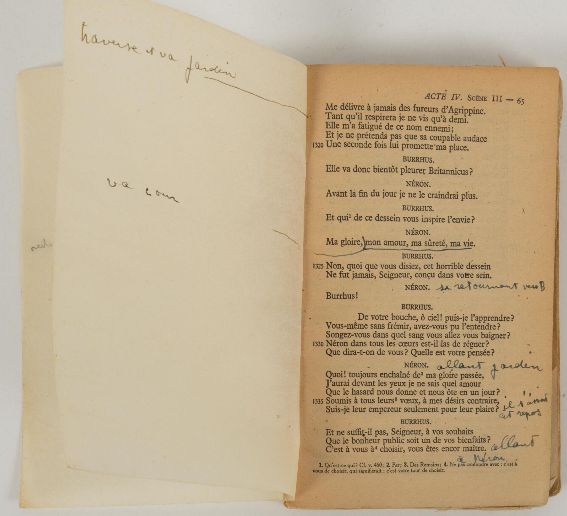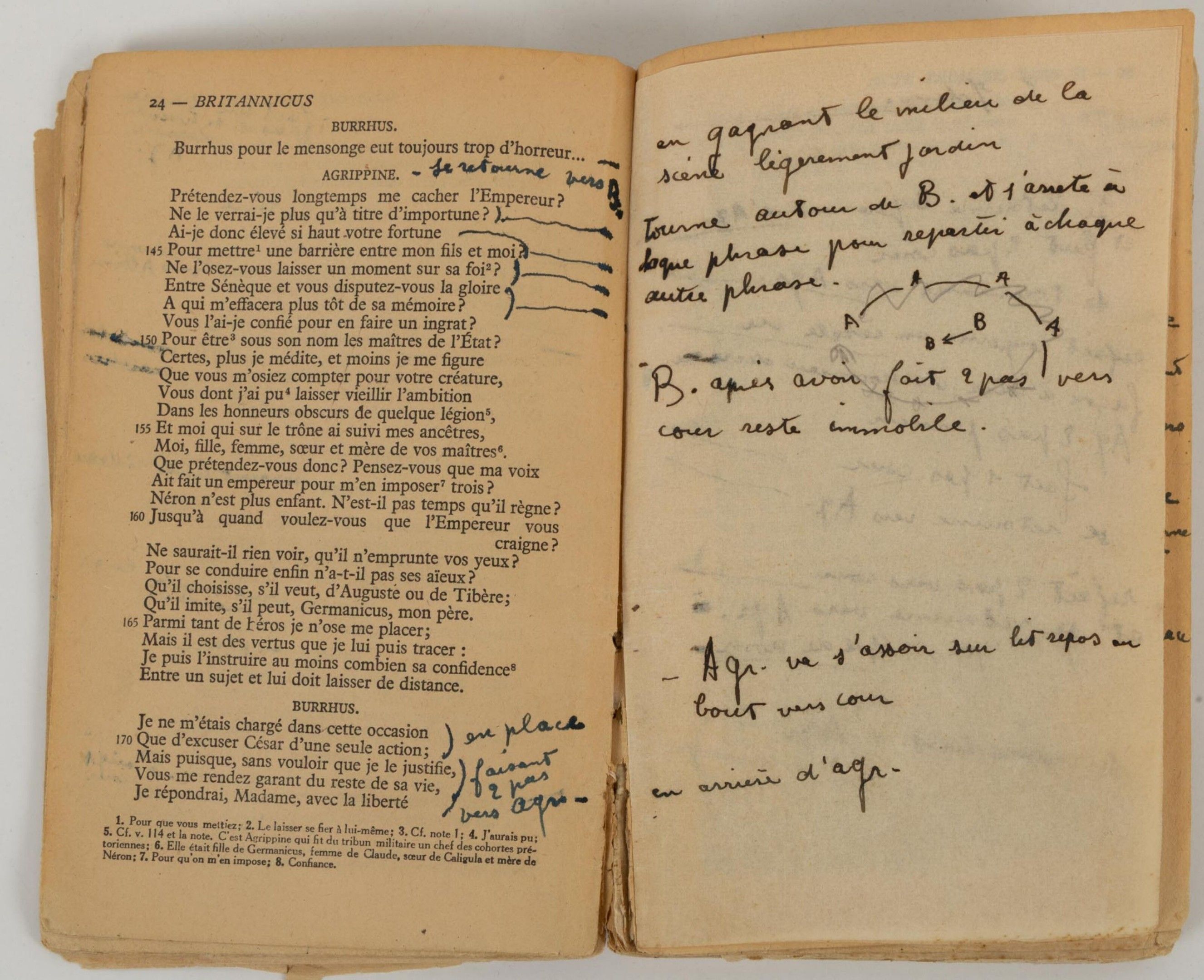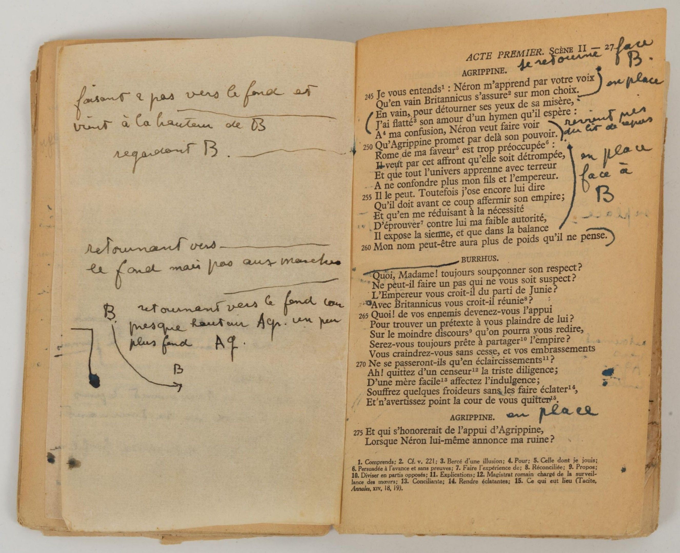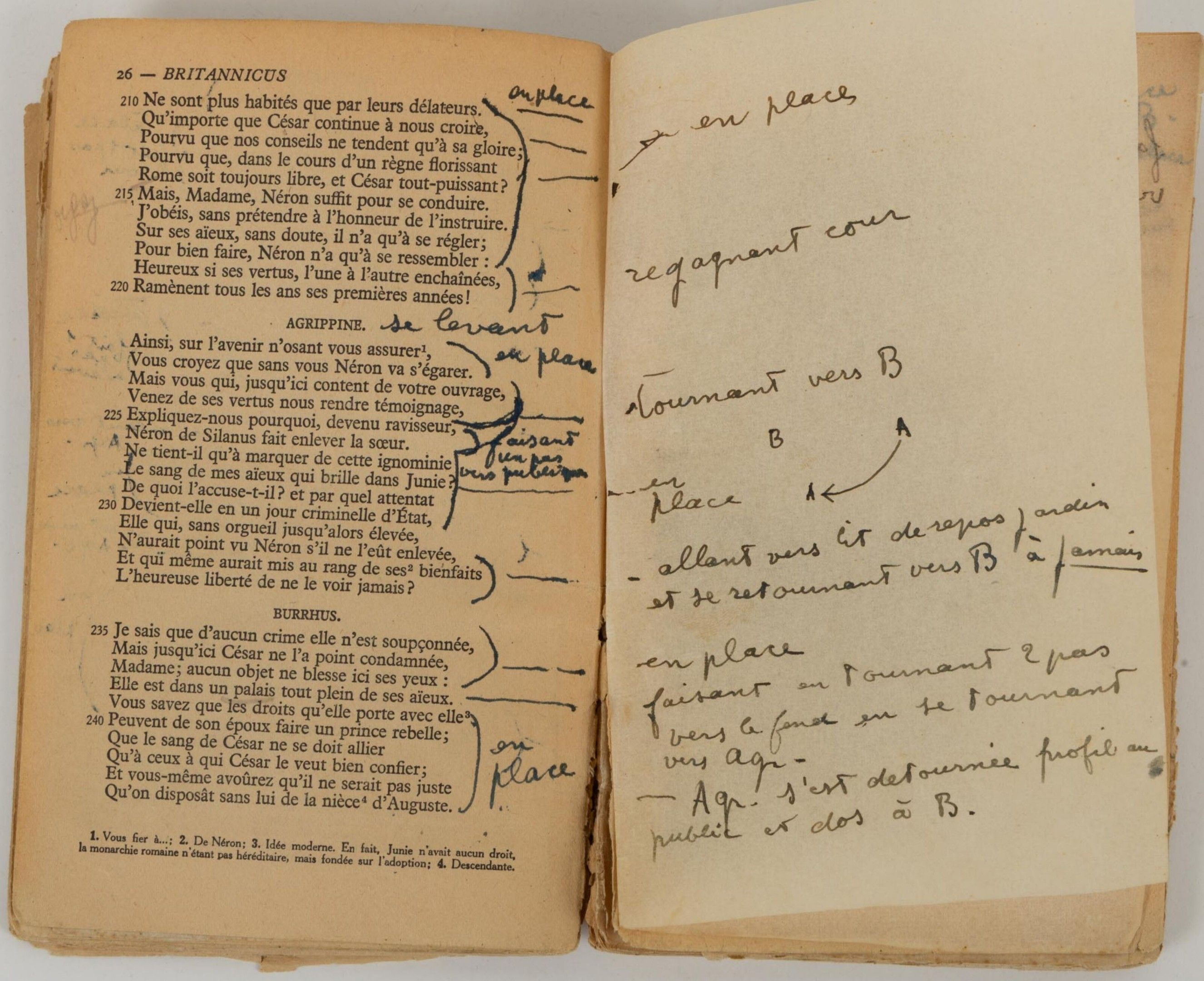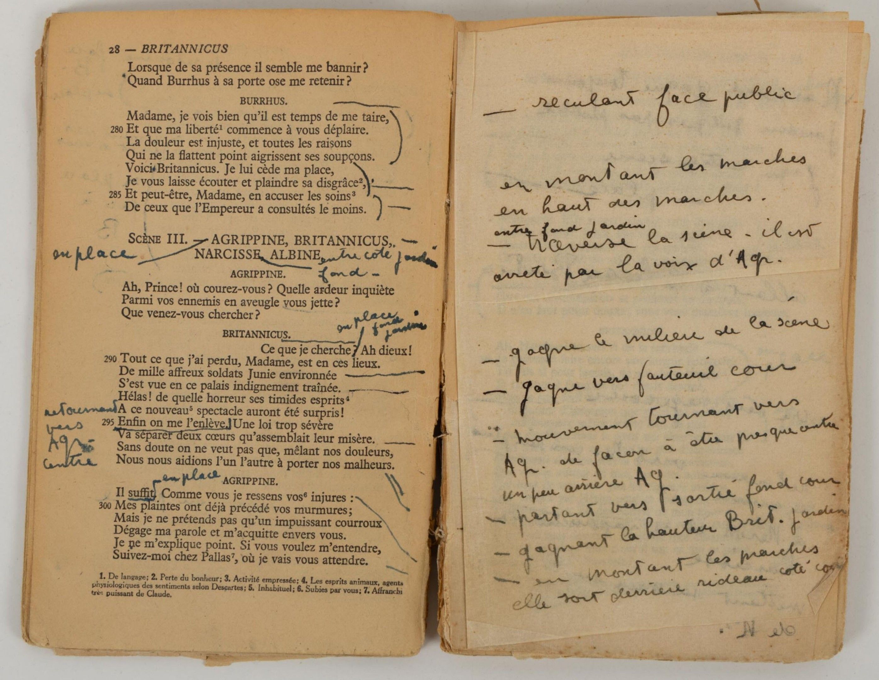 RACINE Jean - Britannicus - rare working copy by Jean MARAIS entirely annotated and stuffed in his own hand.