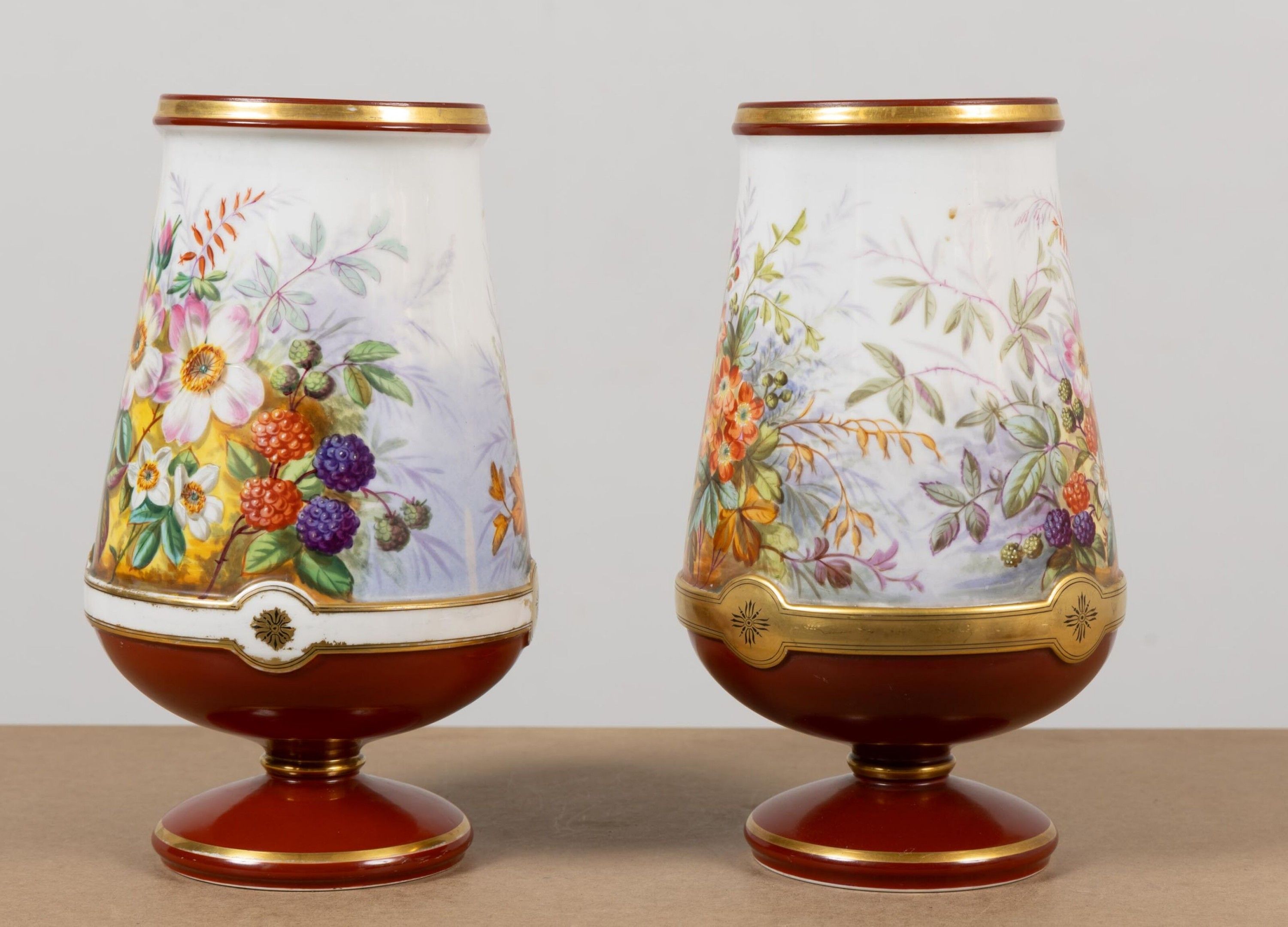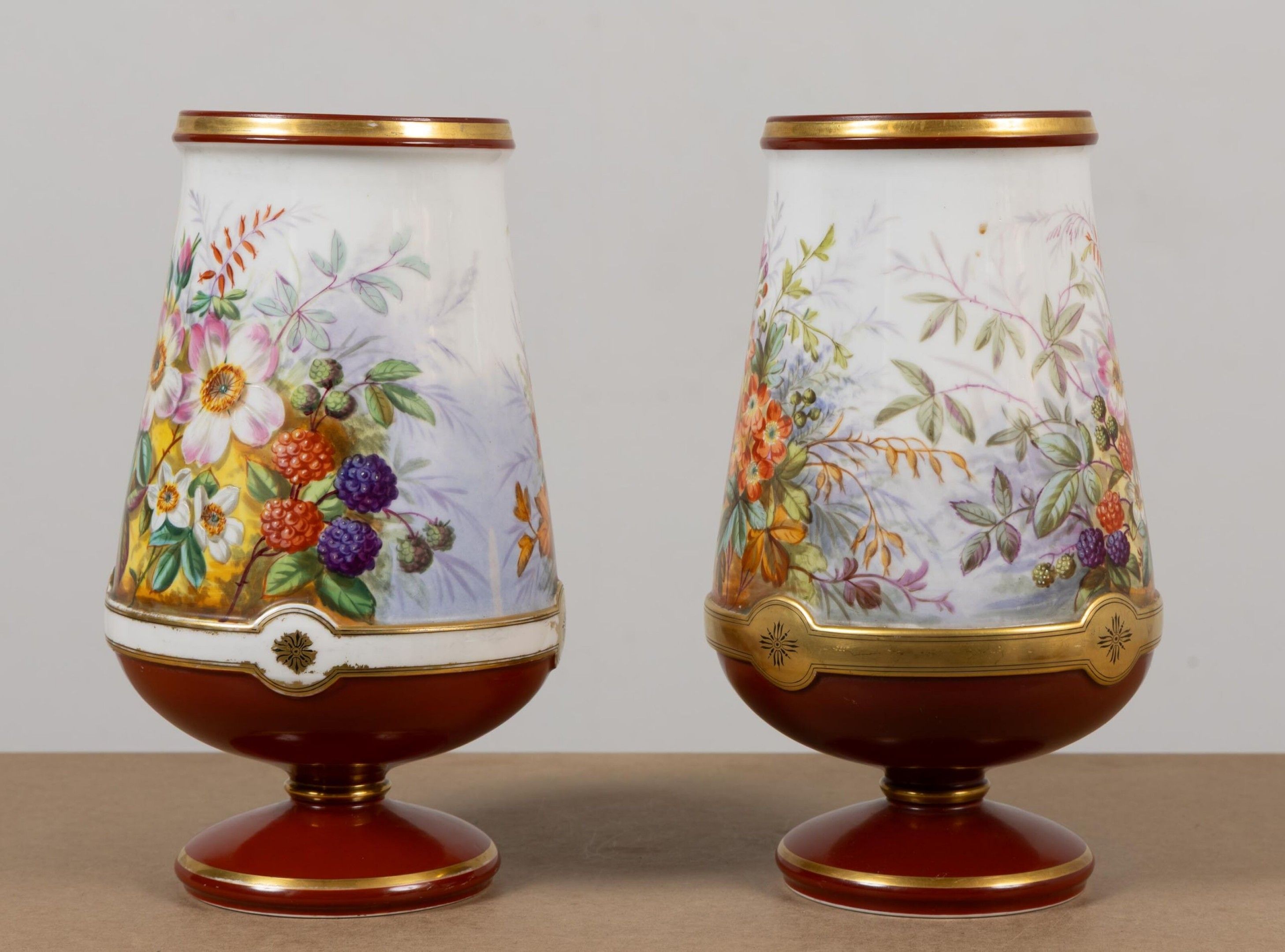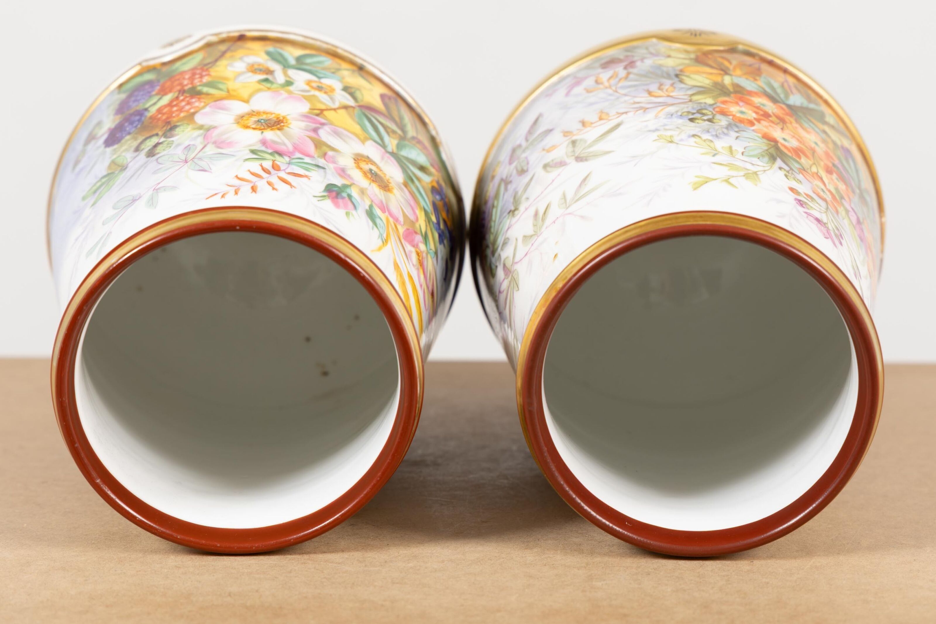 Pair of porcelain vases with polychrome floral decoration.