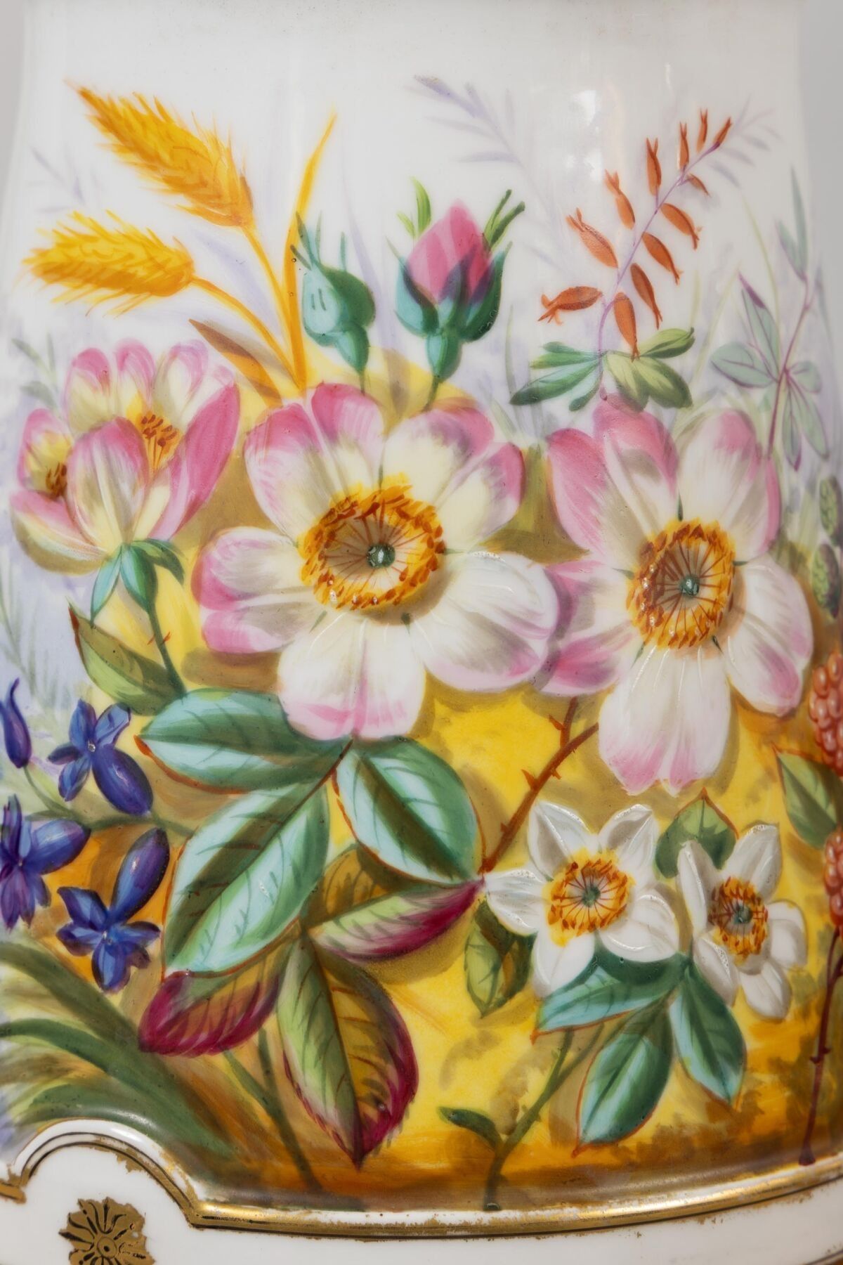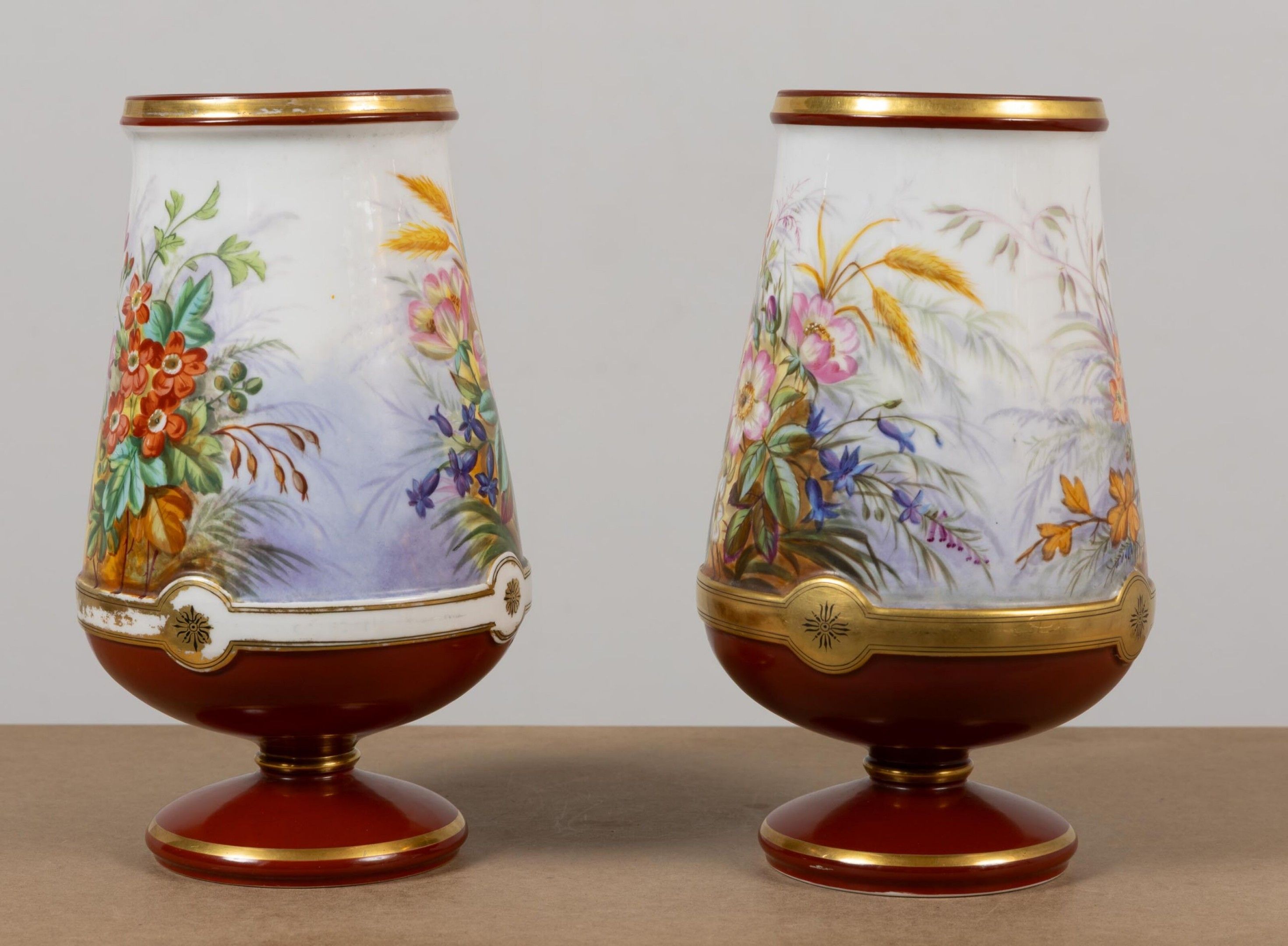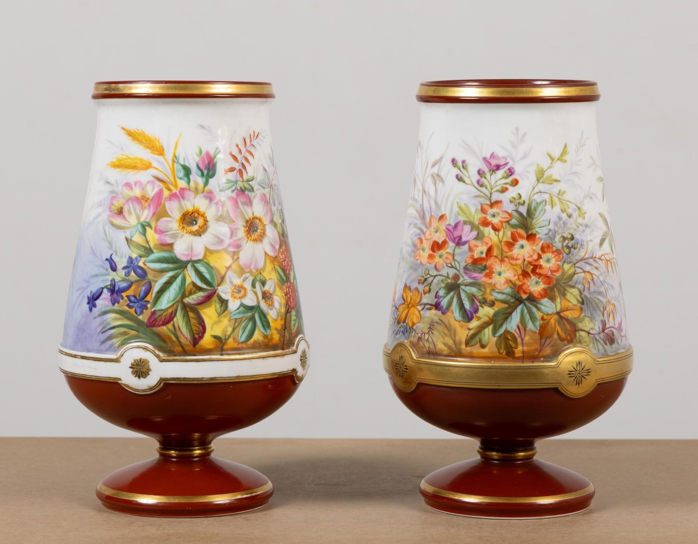 Pair of porcelain vases with polychrome floral decoration.