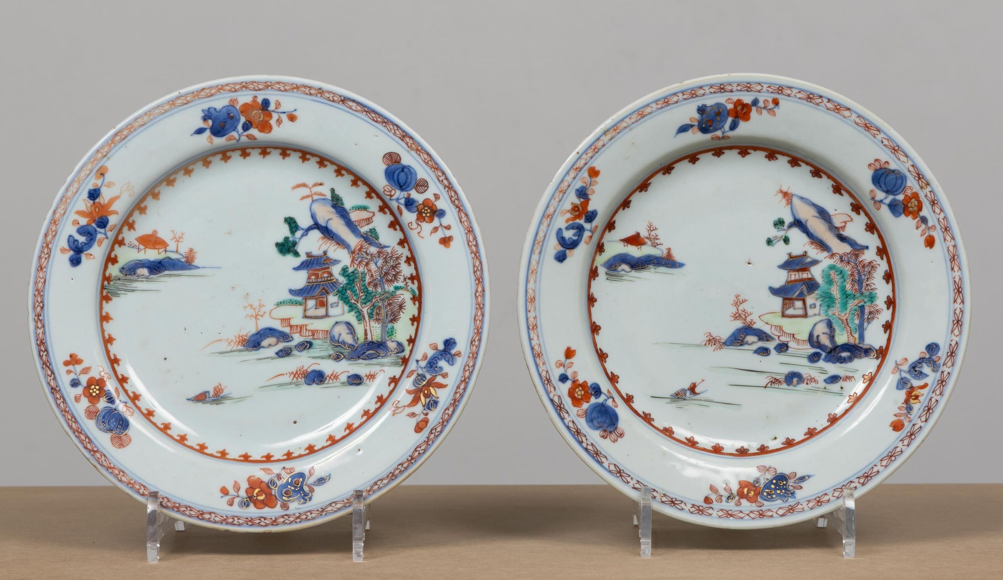 CHINA. A pair of porcelain plates decorated with a lake land…
