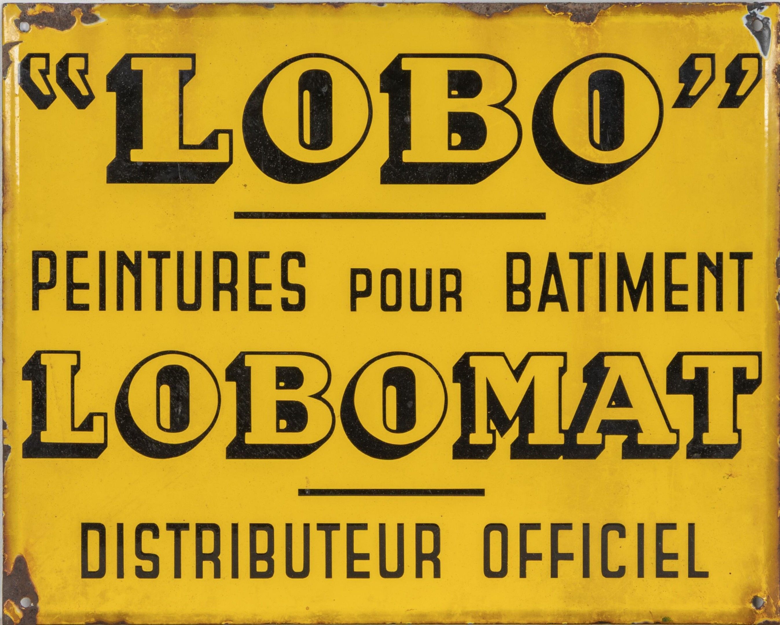 LOBO. Enamelled advertising plate for "LOBOMAT" building pai…