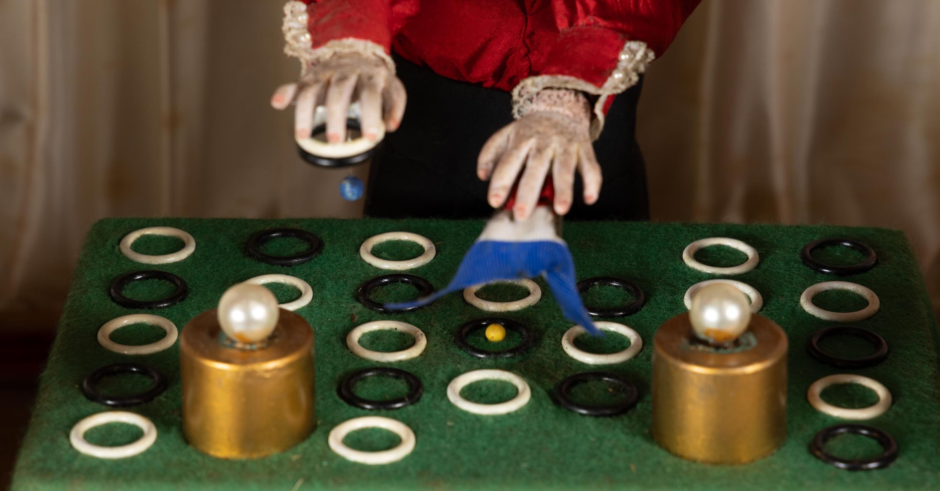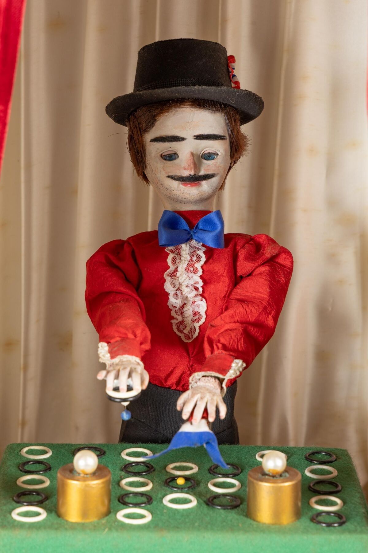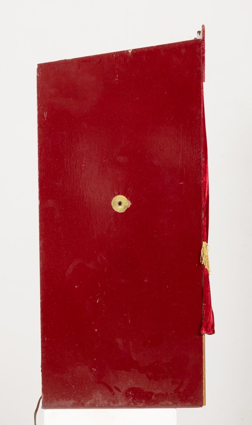 Guy DUPUY (1922-2017). France magisure dit le républicain, 1989. Automaton in composition and metal elements in a painted wood and cardboard structure, with titled and dated brass cartouche. To be revised, not functional in its current state. H_85 cm W_51 cm D_38 cm. Bibliography: the automata of Guy Dupuy, master clockmaker, automaton maker. Catalogue of the exhibition at the Fernand-Chalandre Gallery at the Palais Ducal in Nevers from 29 April to 21 May 2000.