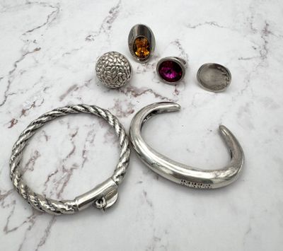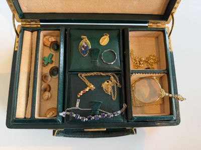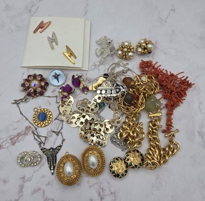 Jewelry includes gold rings, platinum necklaces, antique bracelets, art deco brooches or set earrings, sometimes signed Van Cleef & Arpels, Boucheron, Chaumet, Mauboussin or Tiffany & Co. Some lots combine precious stones, diamonds, sapphires or emeralds, with refined jewelry work.