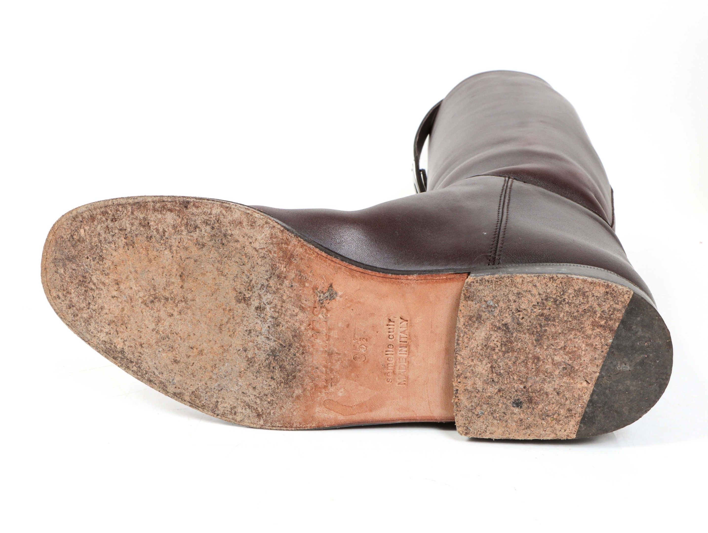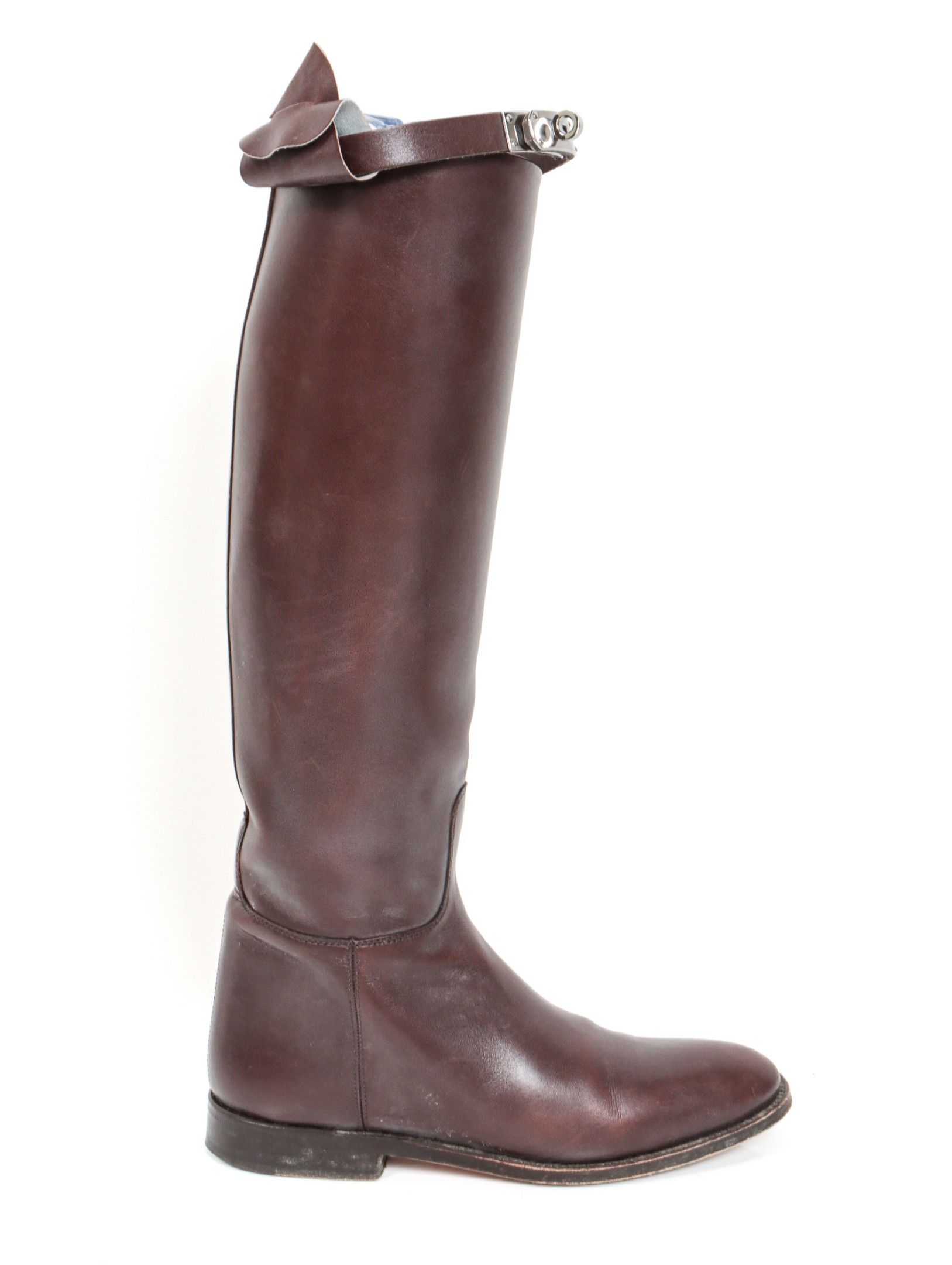 HERMES. Pair of "Jumping" boots in chocolate box. Kelly buckle in ruthenium. T. 35