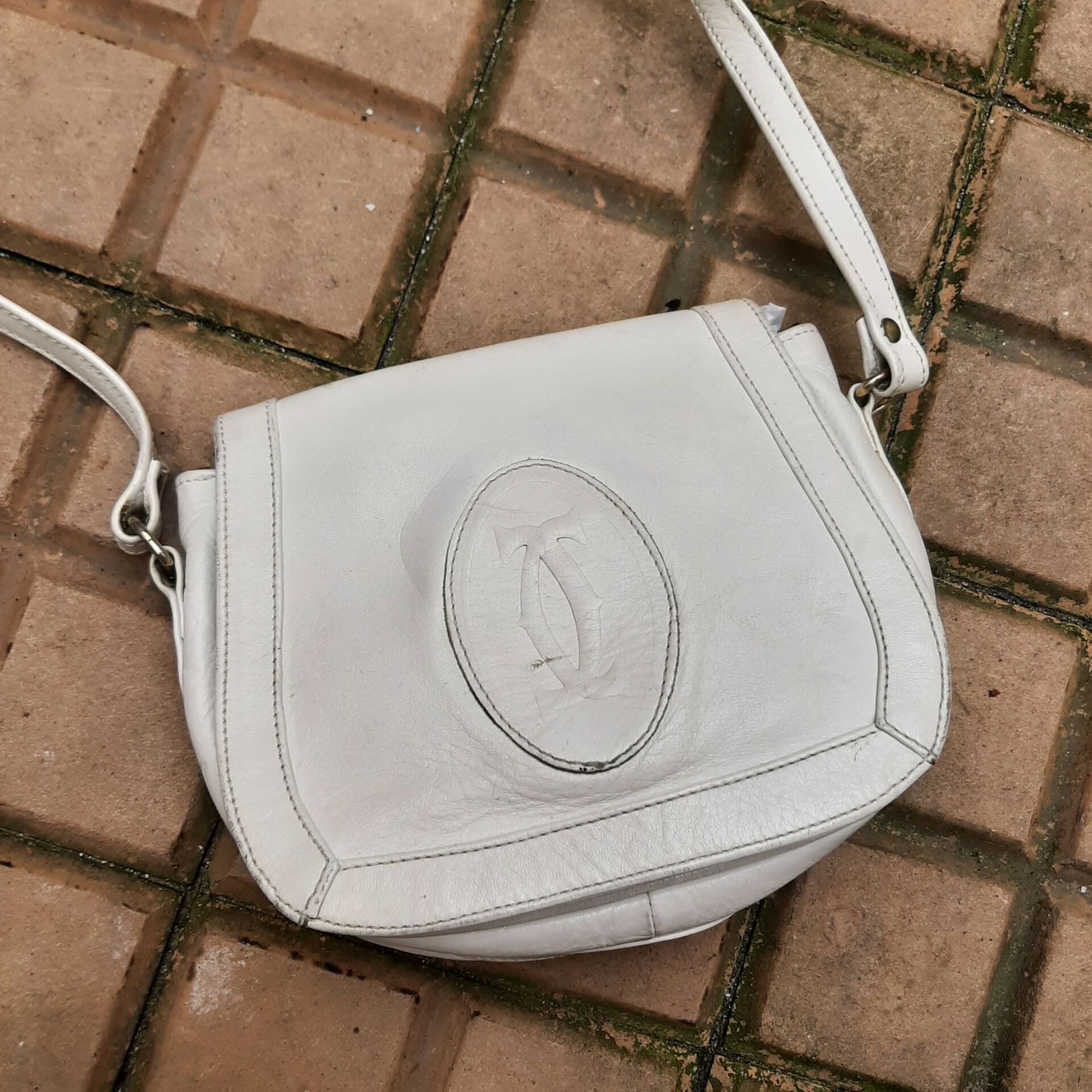 - A small brown shoulder bag from YVES SAINT LAURENT