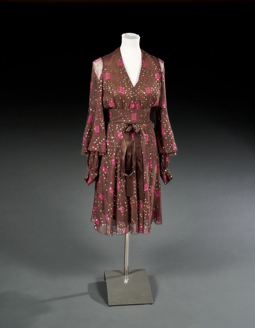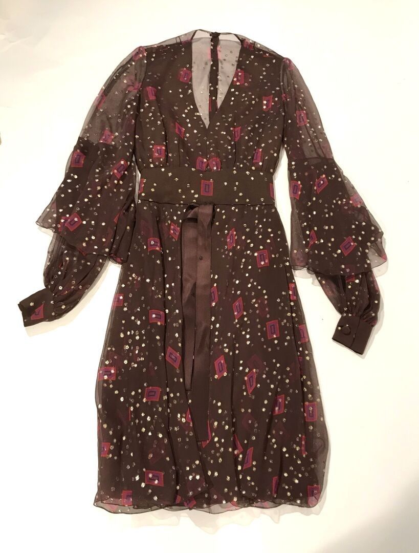 Christian Dior Brown muslin dress with gold lamé dots and sm…