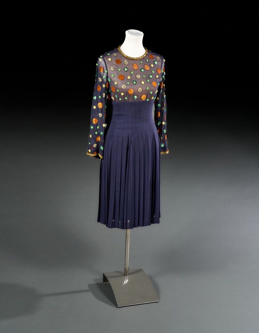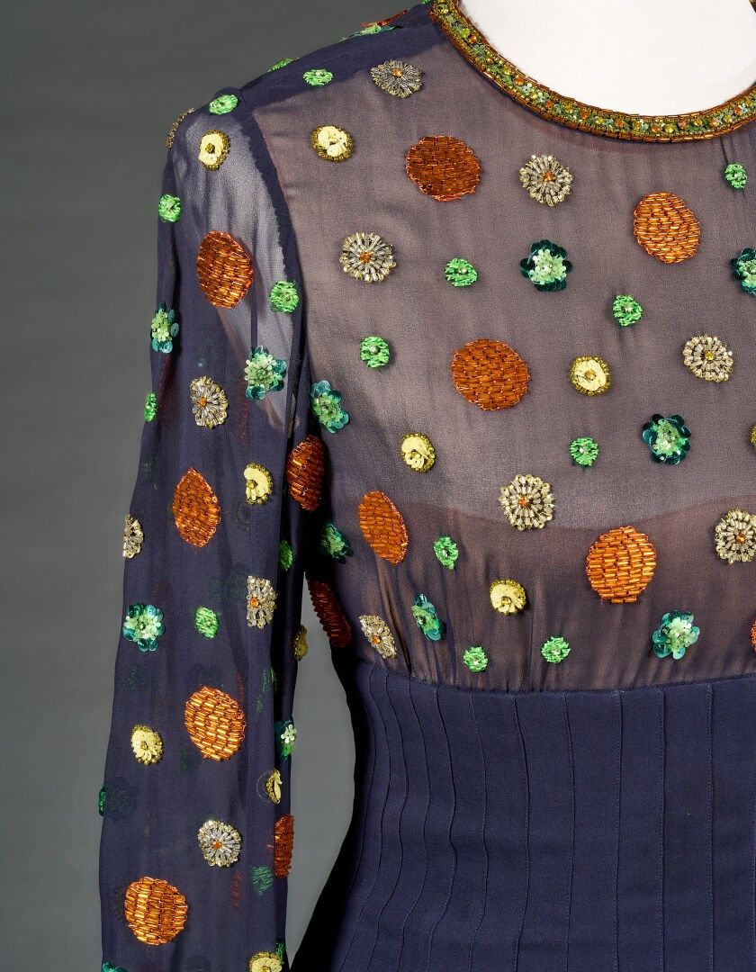 Christian Dior Plum crepe dress embroidered with pearls and …