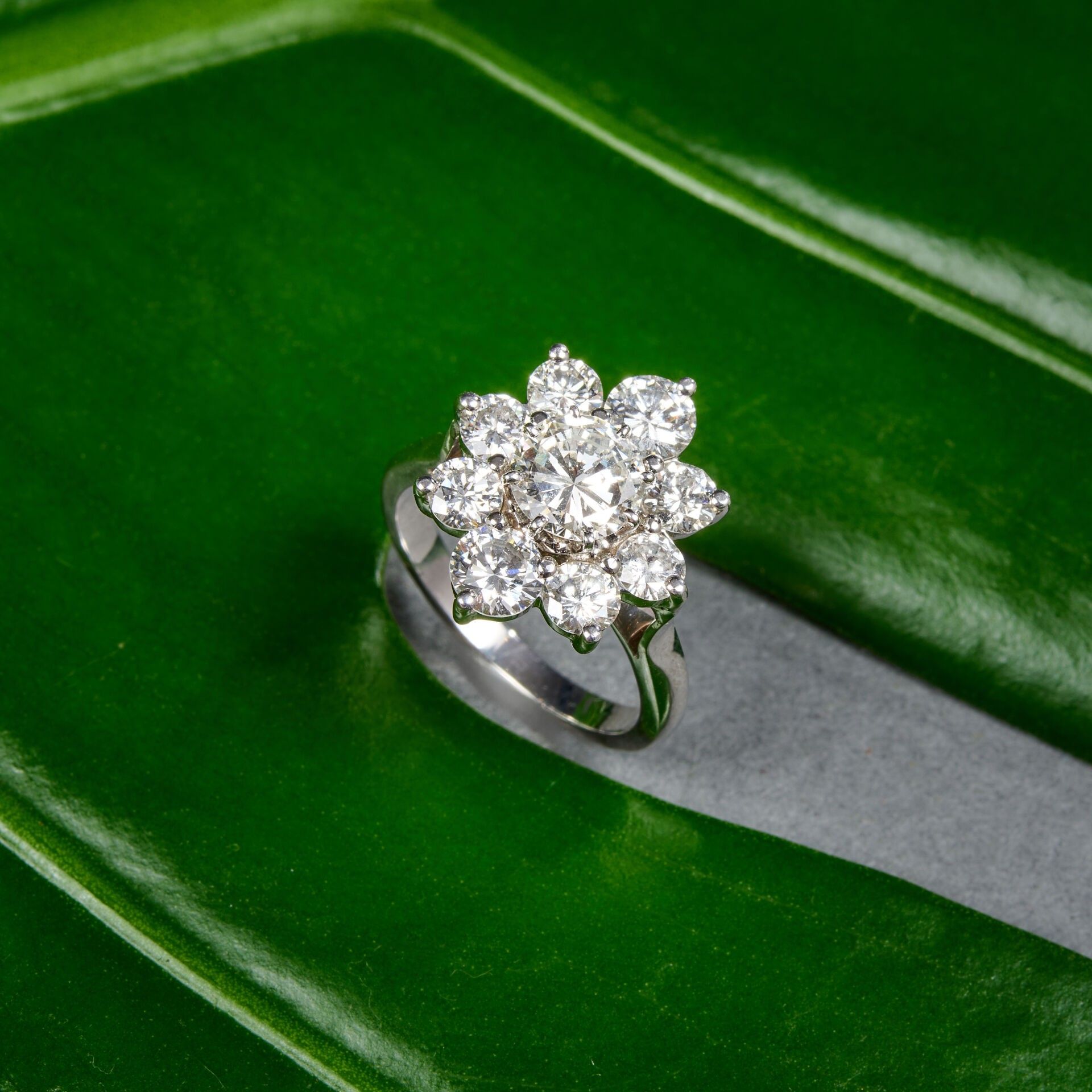 Ring in 18K white gold 750‰, set with a brilliant-cut diamond in a surround of brilliant-cut diamonds.