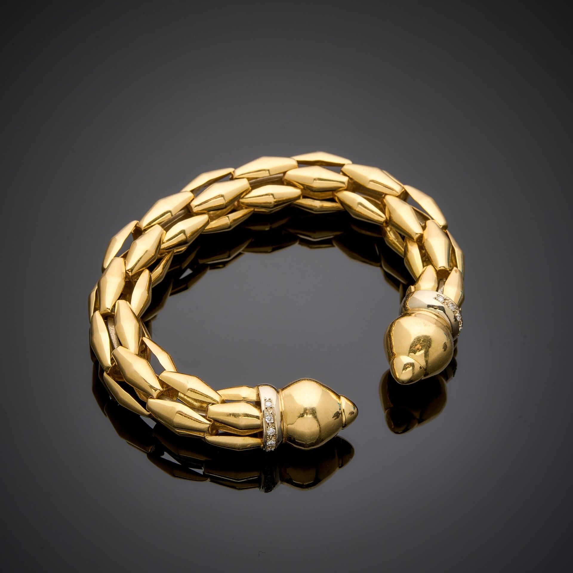 Premium Two-tone 18K gold 750‰ open link bracelet, the ends set with…