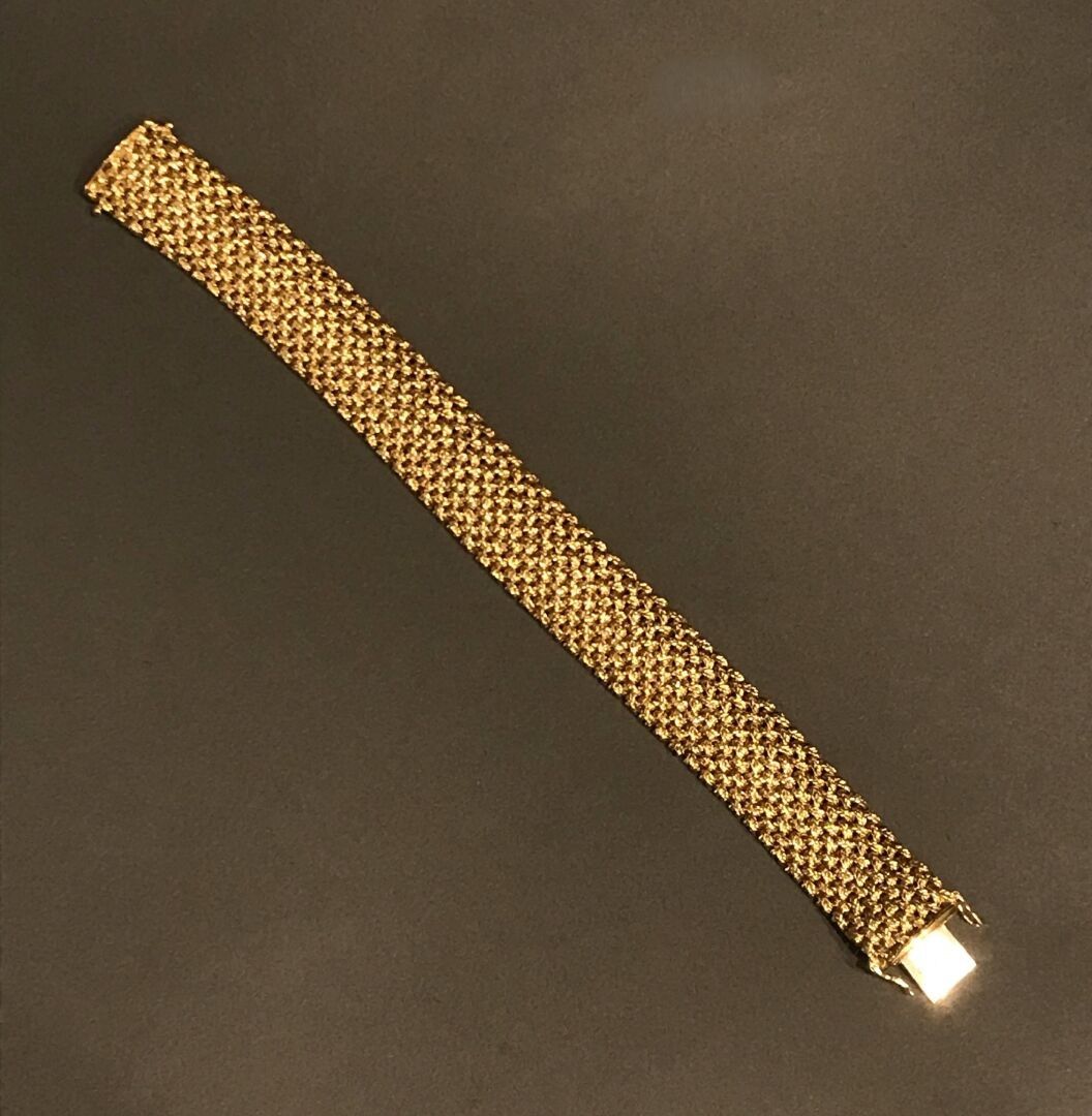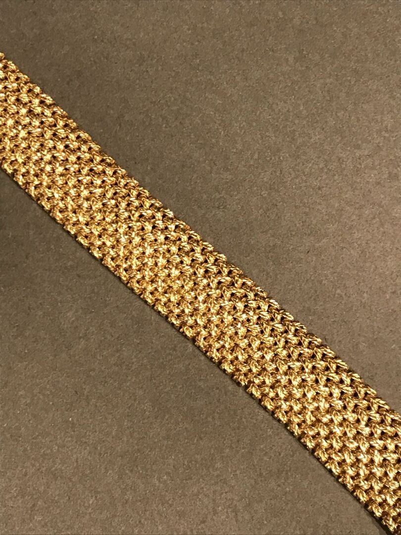 Bracelet in 18K yellow gold 750‰, with supple, crossed and textured links. Ratchet clasp with two safety eights.