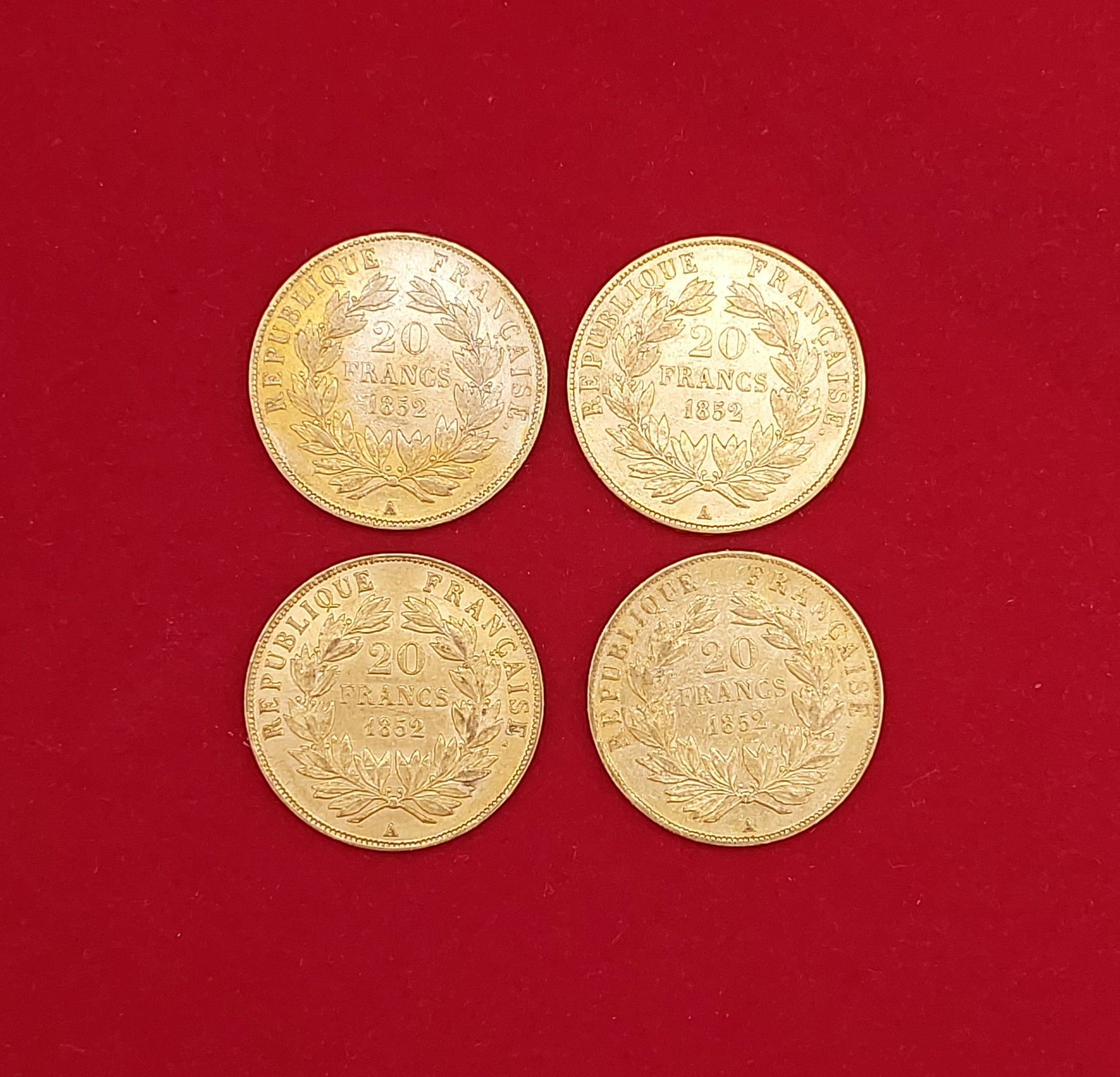 IIème REPUBLIQUE 1848/1852 : Lot of 4x20 Francs Or Louis-Napoléon 1852 A Paris. G 1060. TTB+.