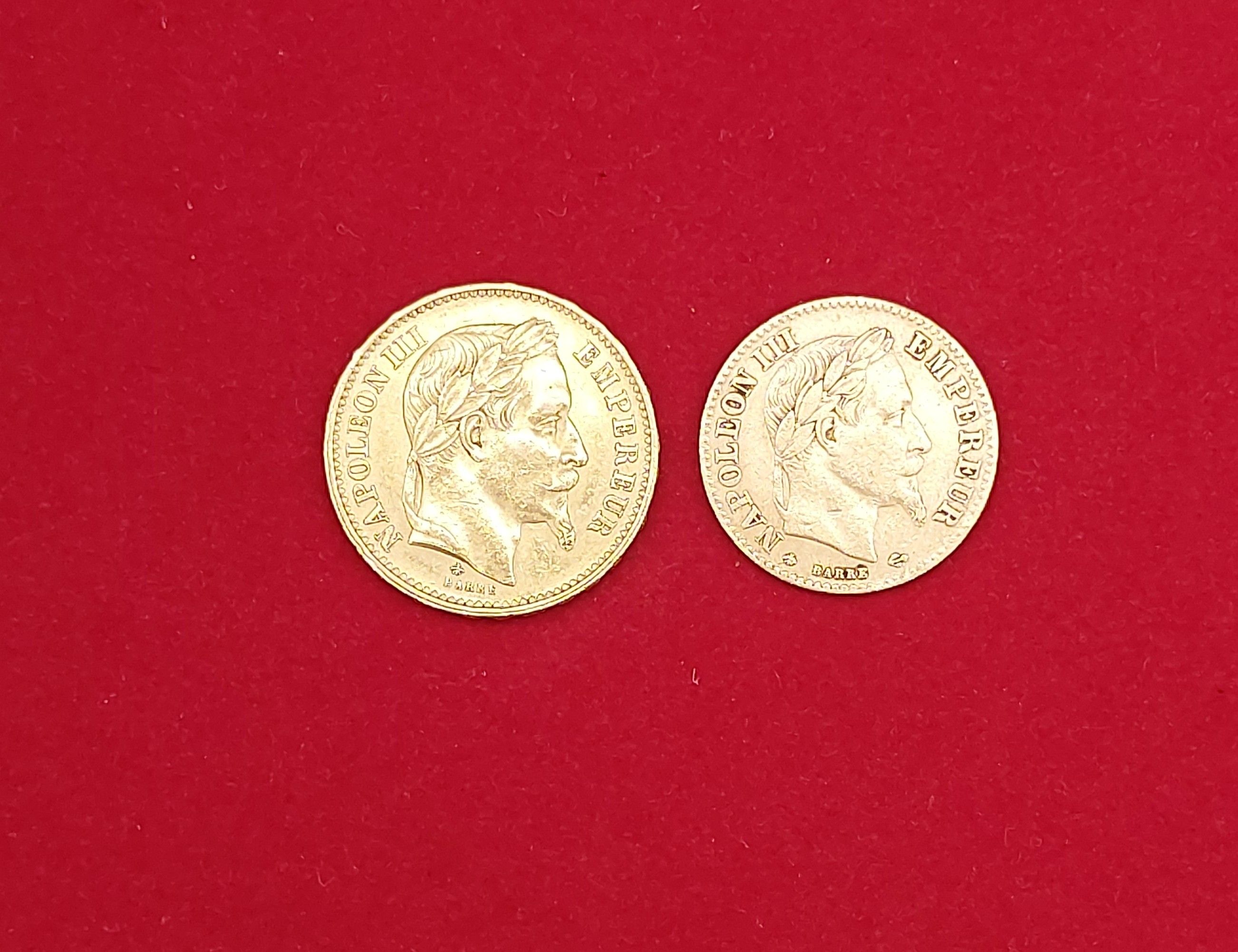 NAPOLEON III (1852/187) : Lot of 2 Gold Coins: 20 Francs 186…
