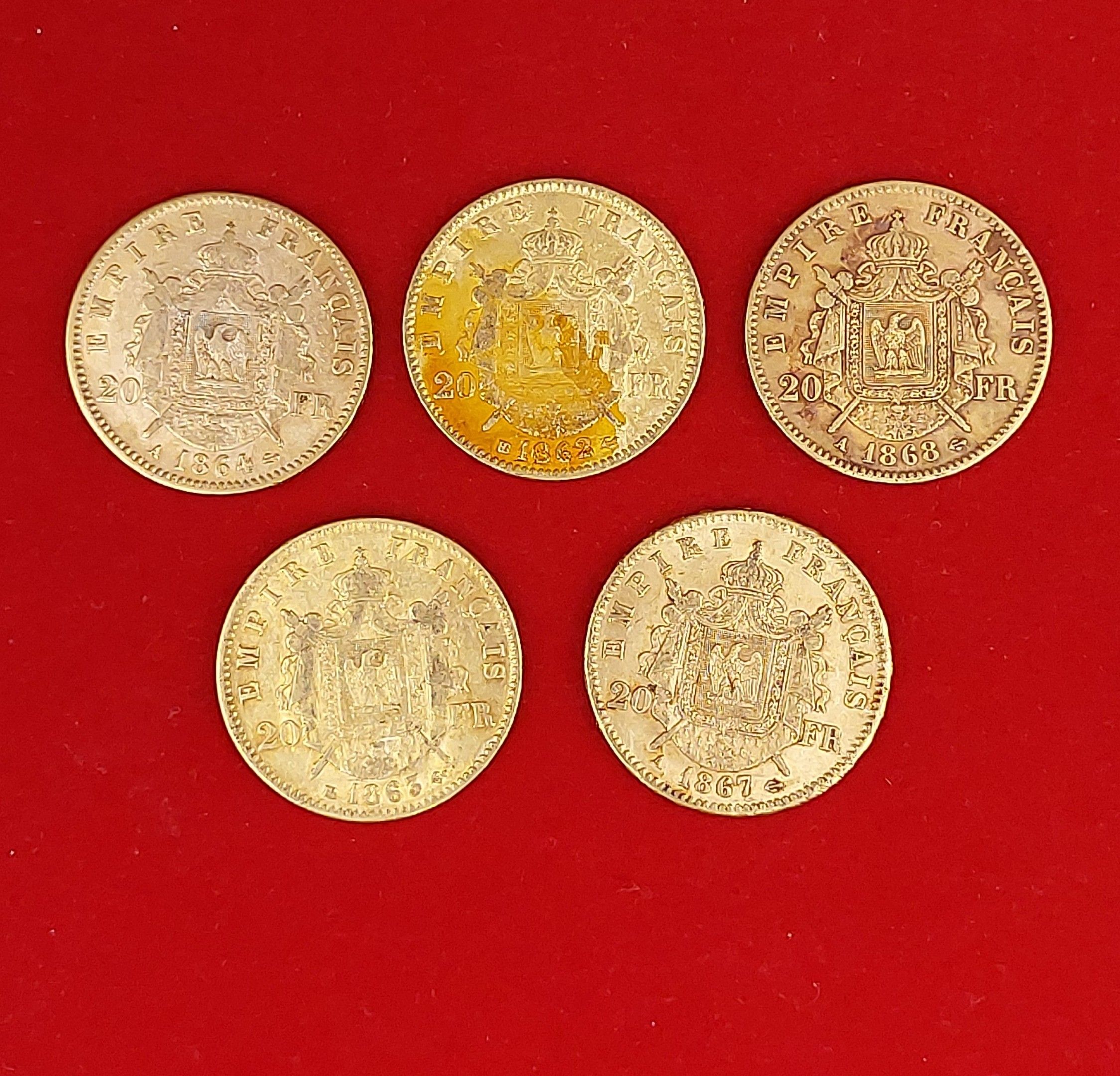 NAPOLEON III (1852/187) : Lot of 5x20 Gold Francs "Tête laur…