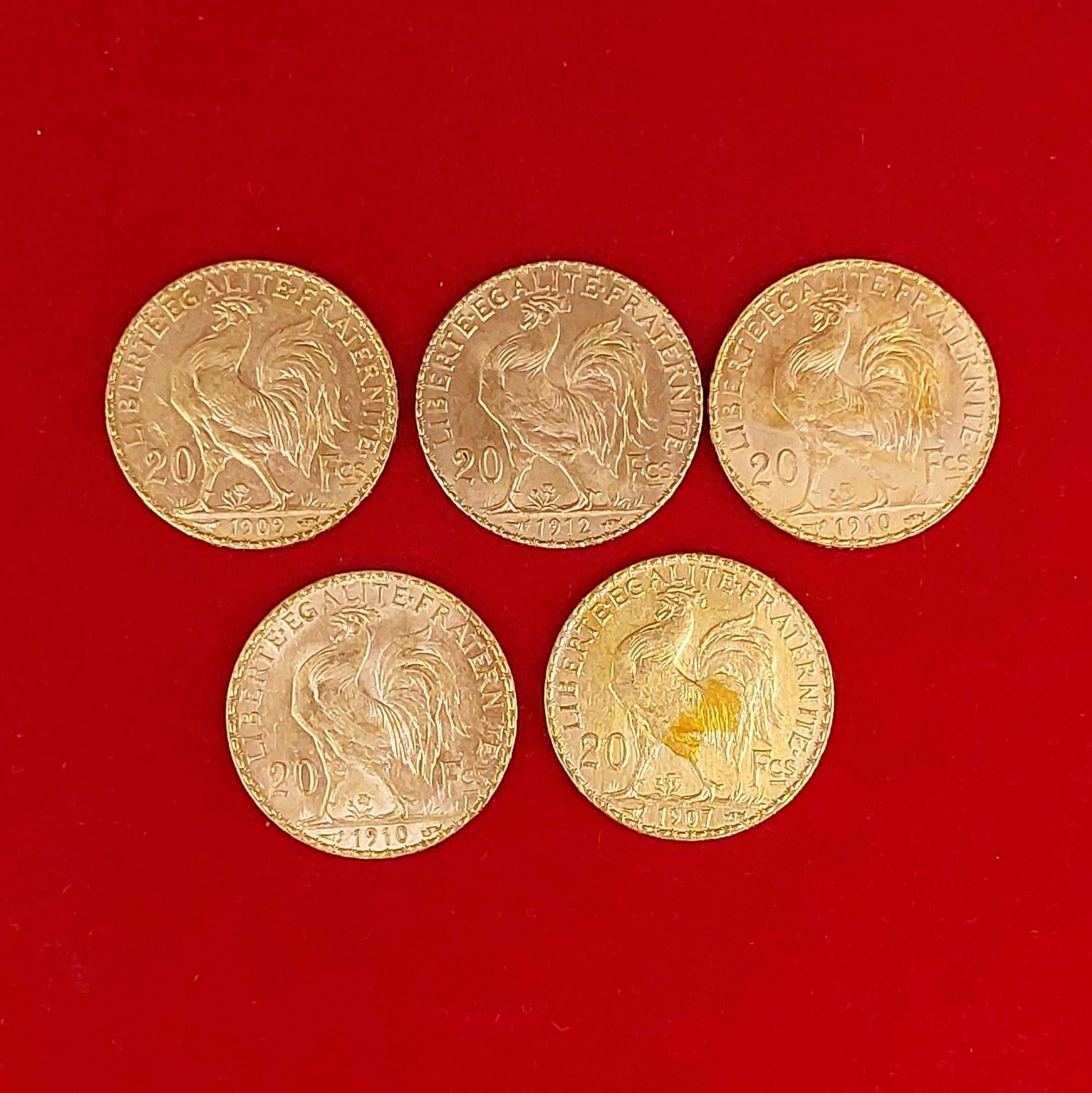 Premium IIIrd REPUBLIC 1871/1940 : Lot of 5x20 Gold Francs "Marianne…